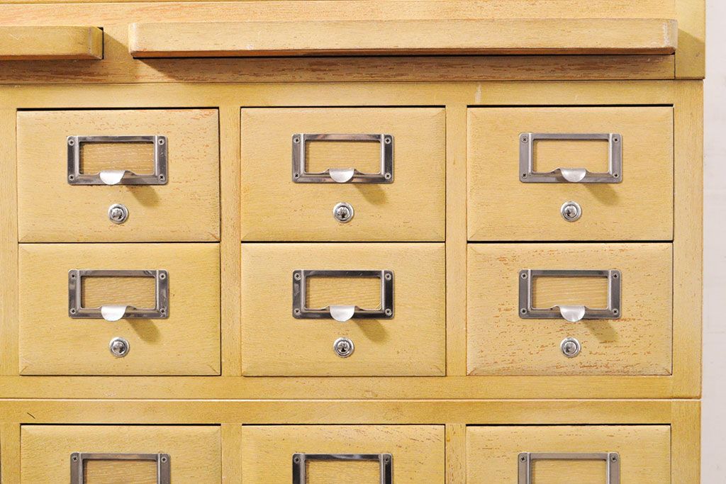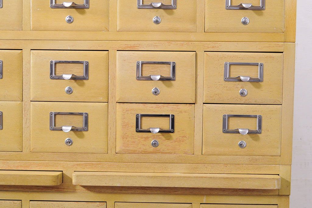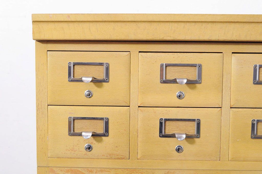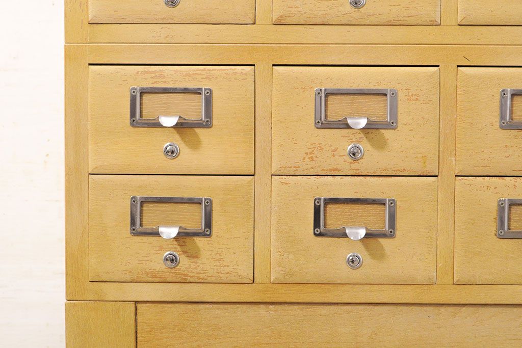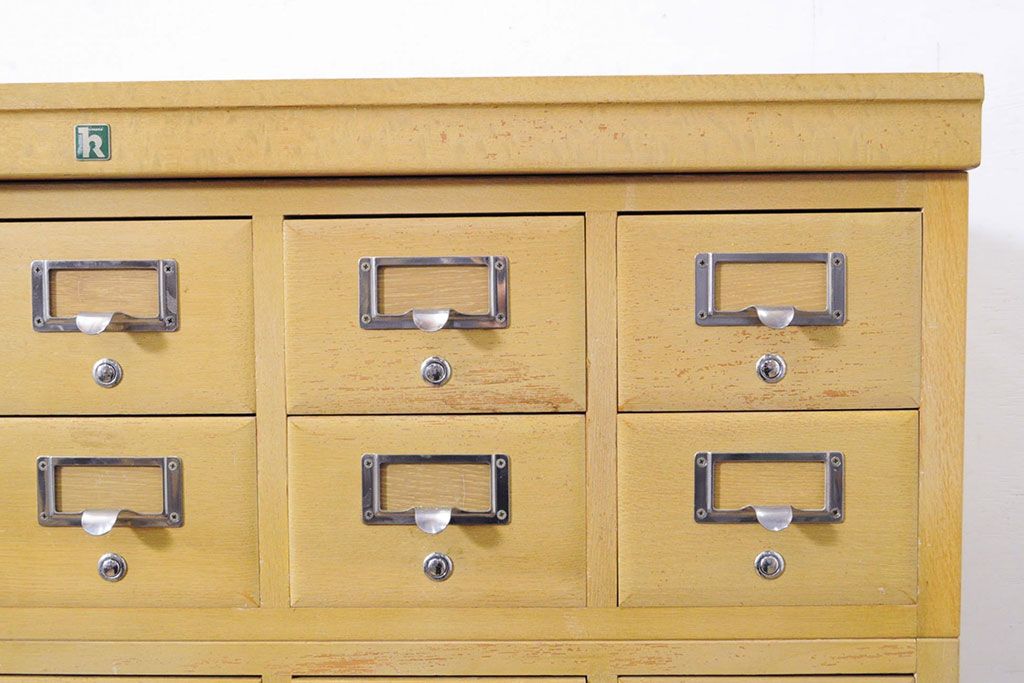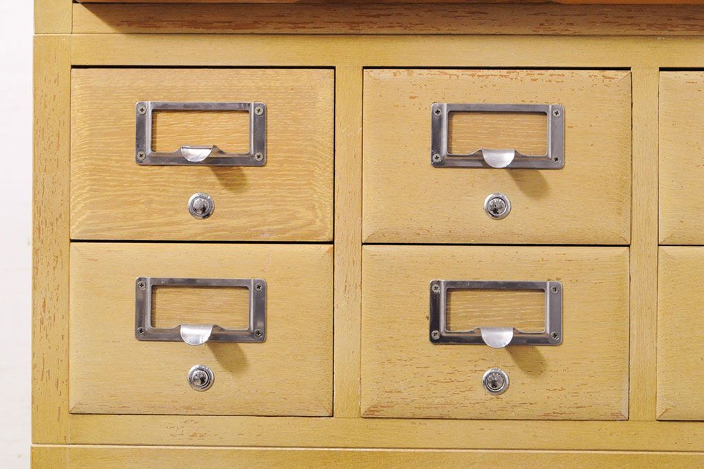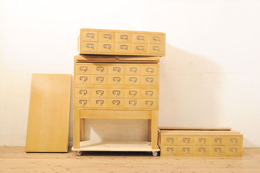チェスト・引き出し > 【簡易リペア限定品】レトロ家具 昭和レトロ KIHARA 引き出し40杯!店舗什器におすすめのナラ材製ネームプレート付きカードケース(引き出し、チェスト、図書館、図書室)(R-050288)