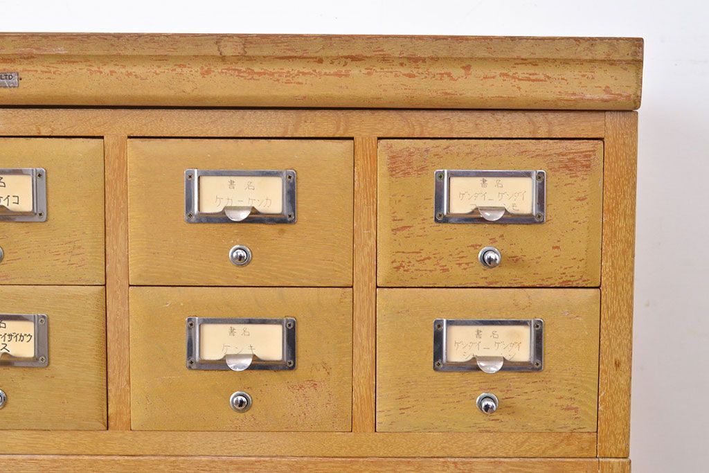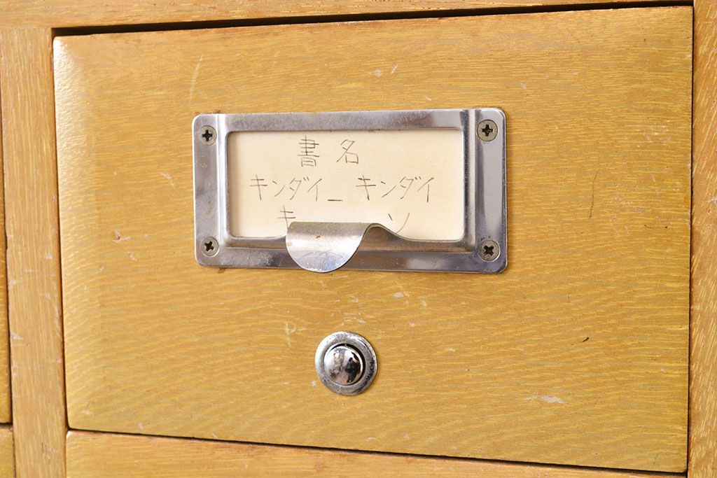 レトロ家具 昭和レトロ MARUZEN お洒落に小物を収納できるネームプレート付きカードケース(引き出し、チェスト、図書館、図書室)(R-050332)