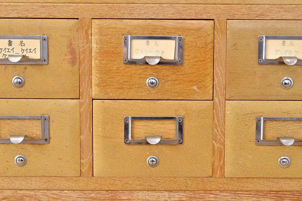 チェスト・引き出し > レトロ家具 昭和レトロ MARUZEN お洒落に小物を収納できるネームプレート付きカードケース(引き出し、チェスト、図書館、図書室)(R-050332)