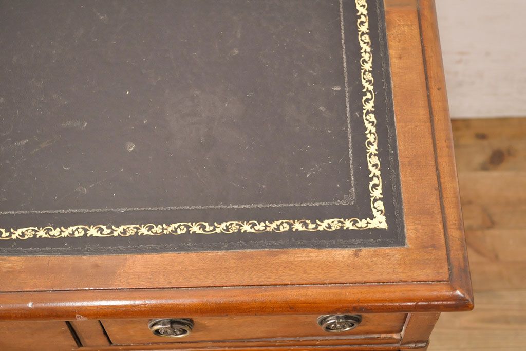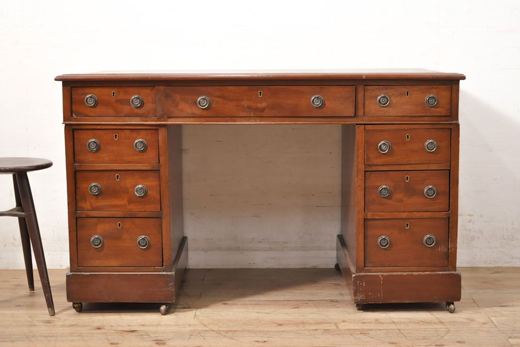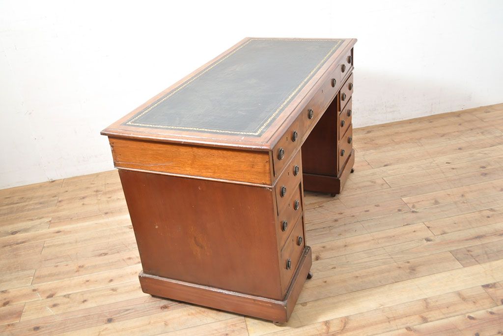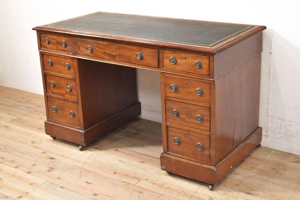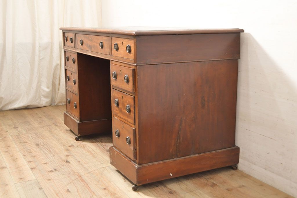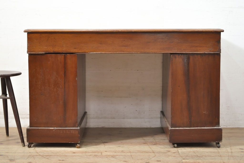 ラフジュ工房> デスク> 片袖机・両袖机 > イギリスアンティーク ペイント仕上げ マホガニー材 キャスター付き 天板のレザーが格好いい!組み立て式の両袖机(プレジデントデスク、ワークデスク、在宅ワーク、在宅用)(R-050237)