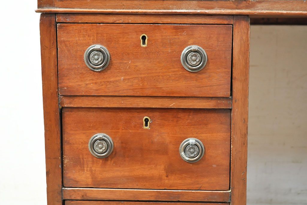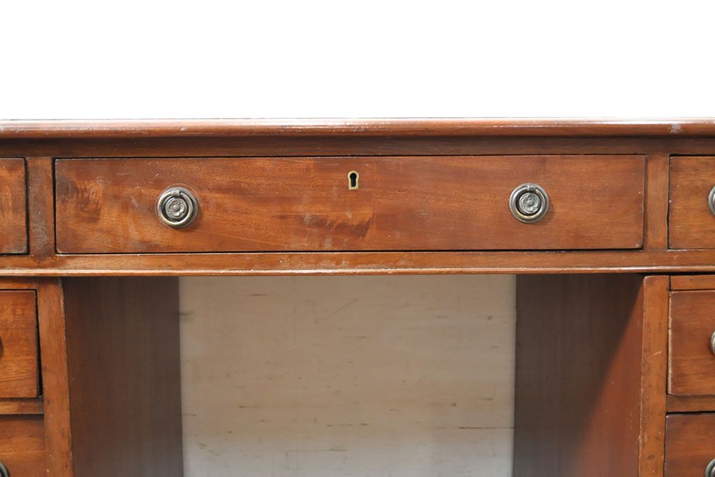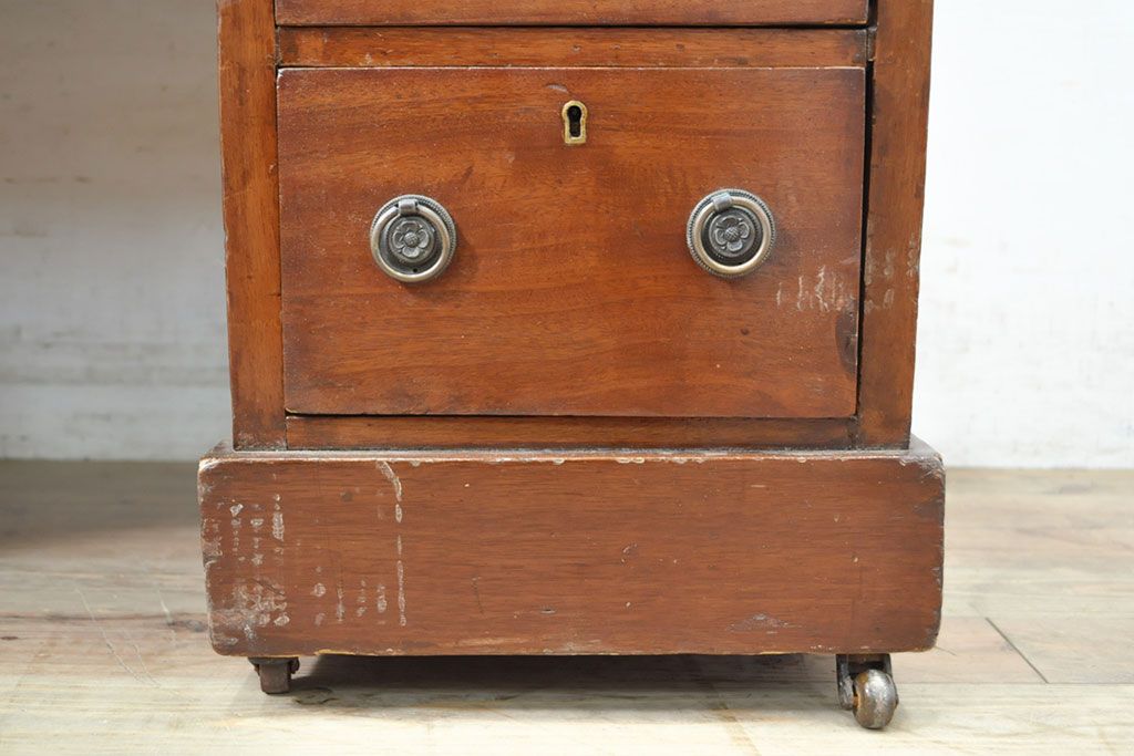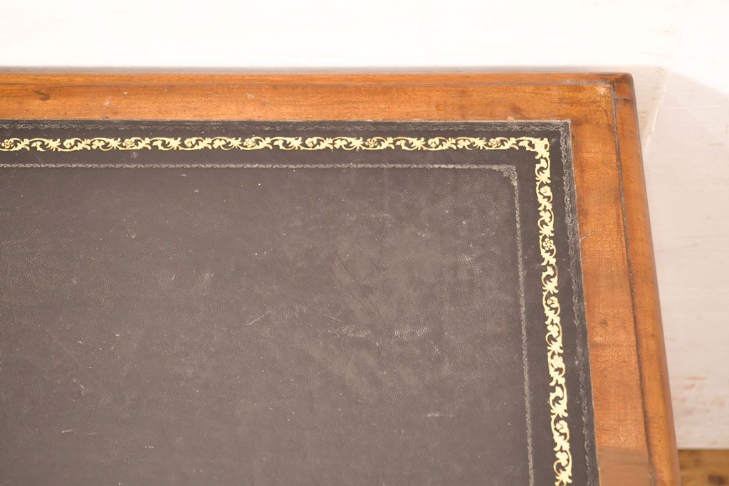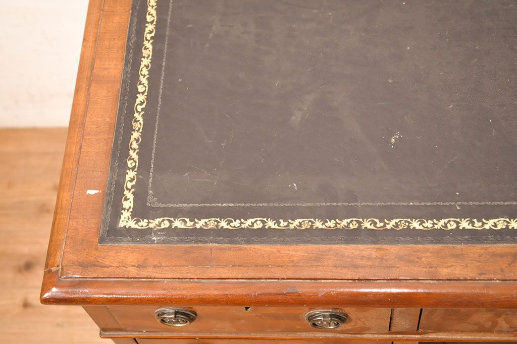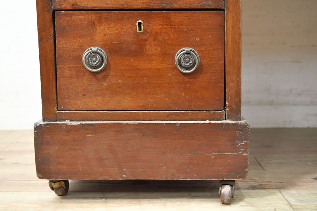 ラフジュ工房> デスク> 片袖机・両袖机 > イギリスアンティーク ペイント仕上げ マホガニー材 キャスター付き 天板のレザーが格好いい!組み立て式の両袖机(プレジデントデスク、ワークデスク、在宅ワーク、在宅用)(R-050237)