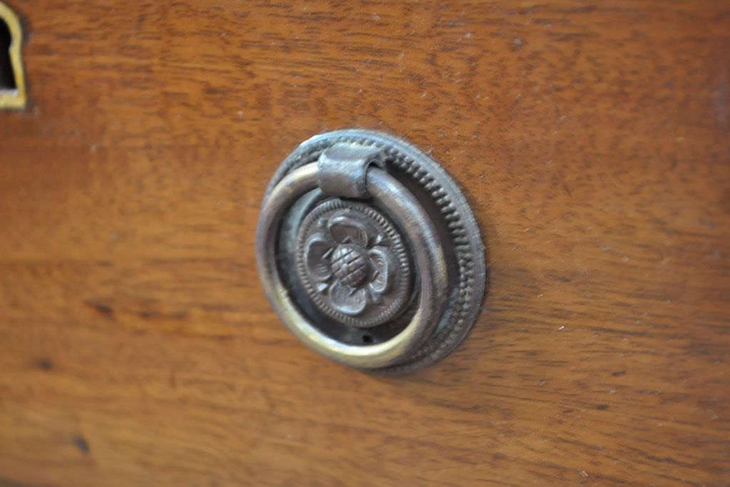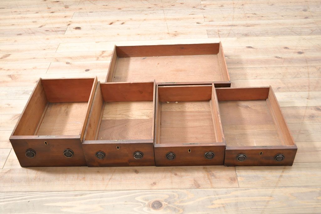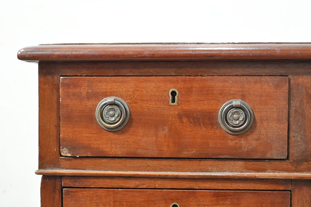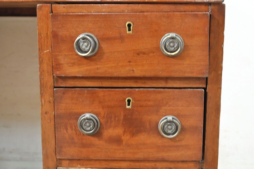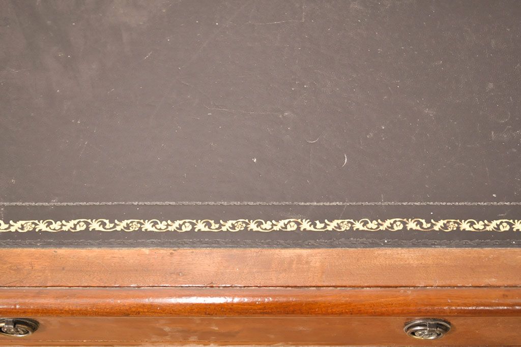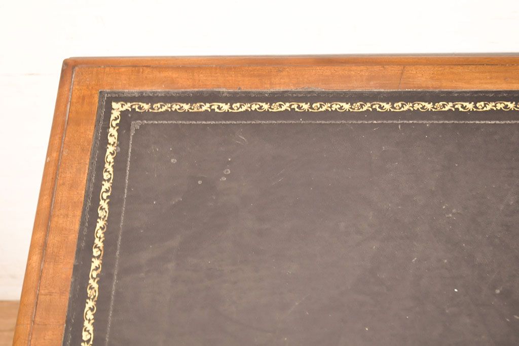 ラフジュ工房> デスク> 片袖机・両袖机 > イギリスアンティーク ペイント仕上げ マホガニー材 キャスター付き 天板のレザーが格好いい!組み立て式の両袖机(プレジデントデスク、ワークデスク、在宅ワーク、在宅用)(R-050237)