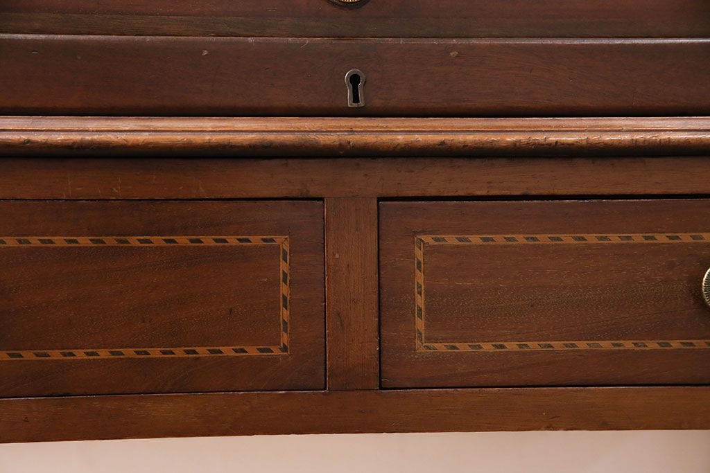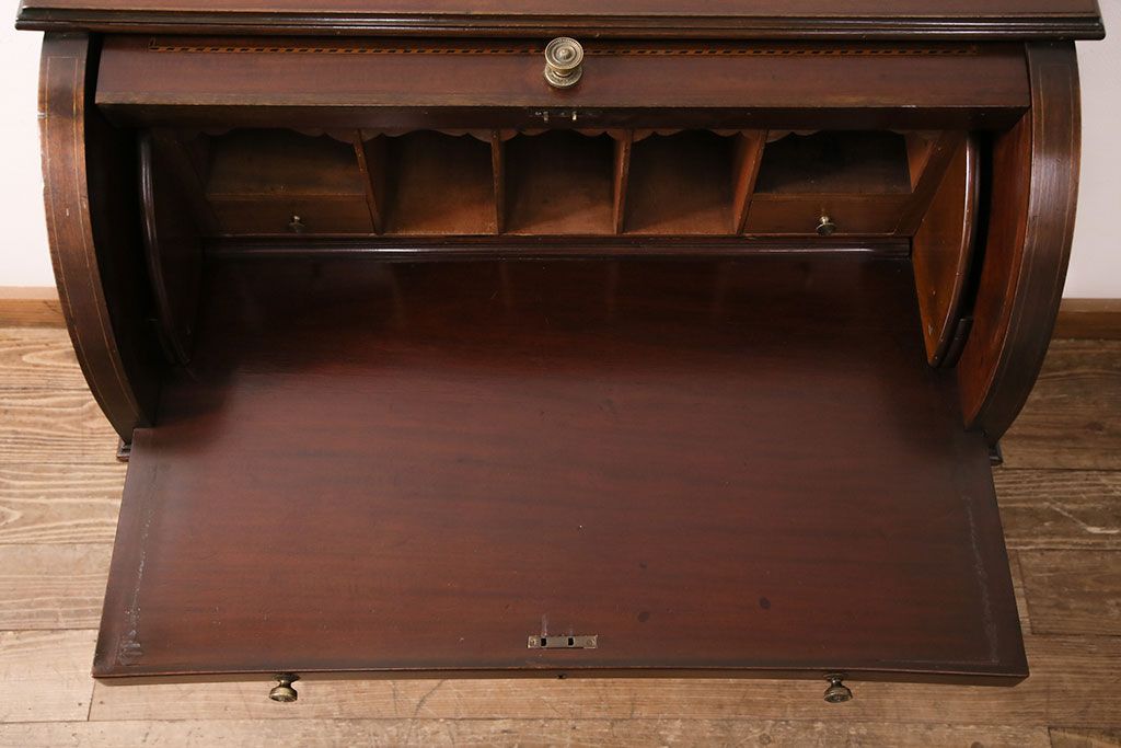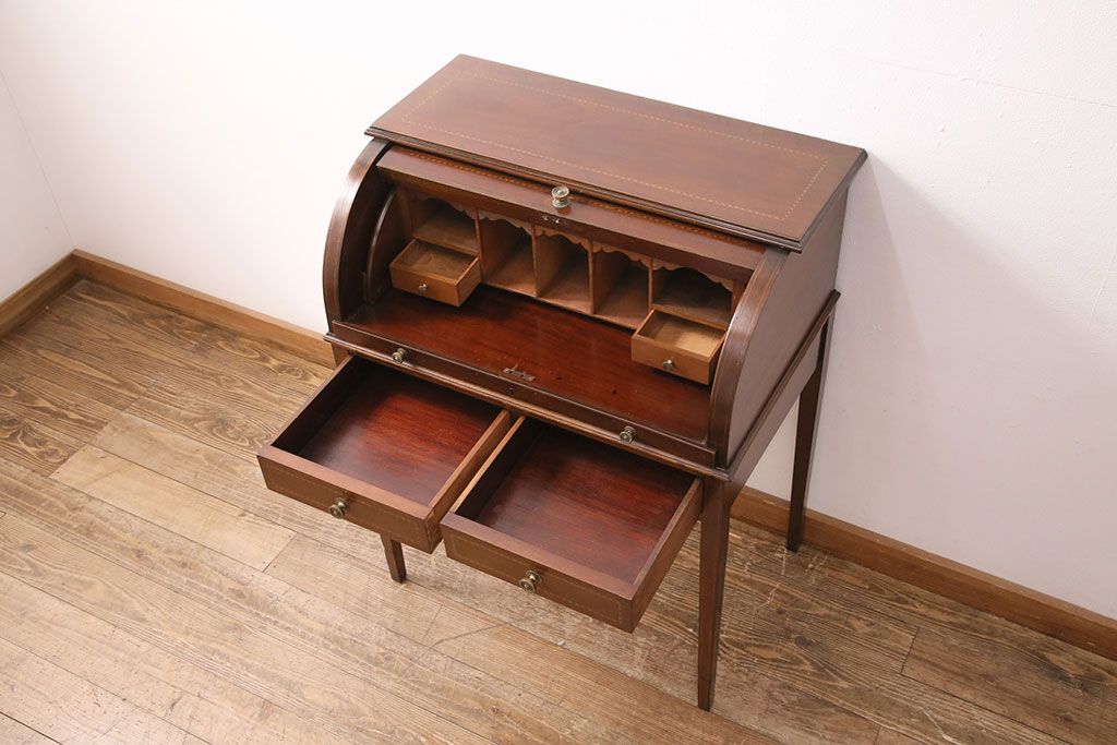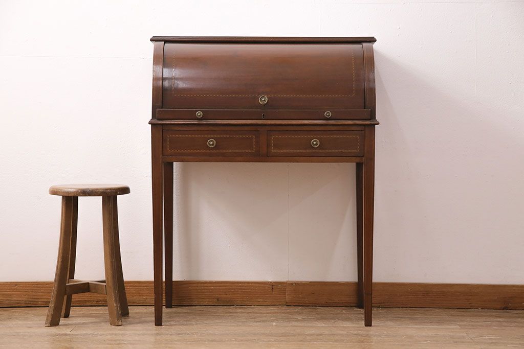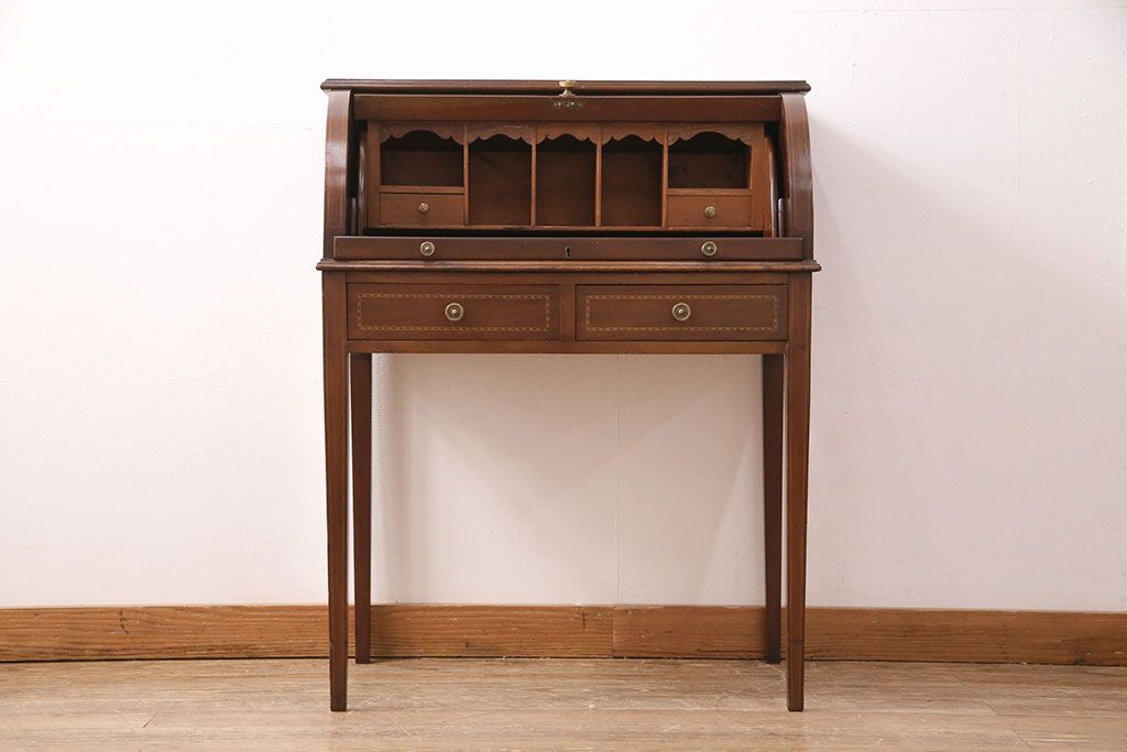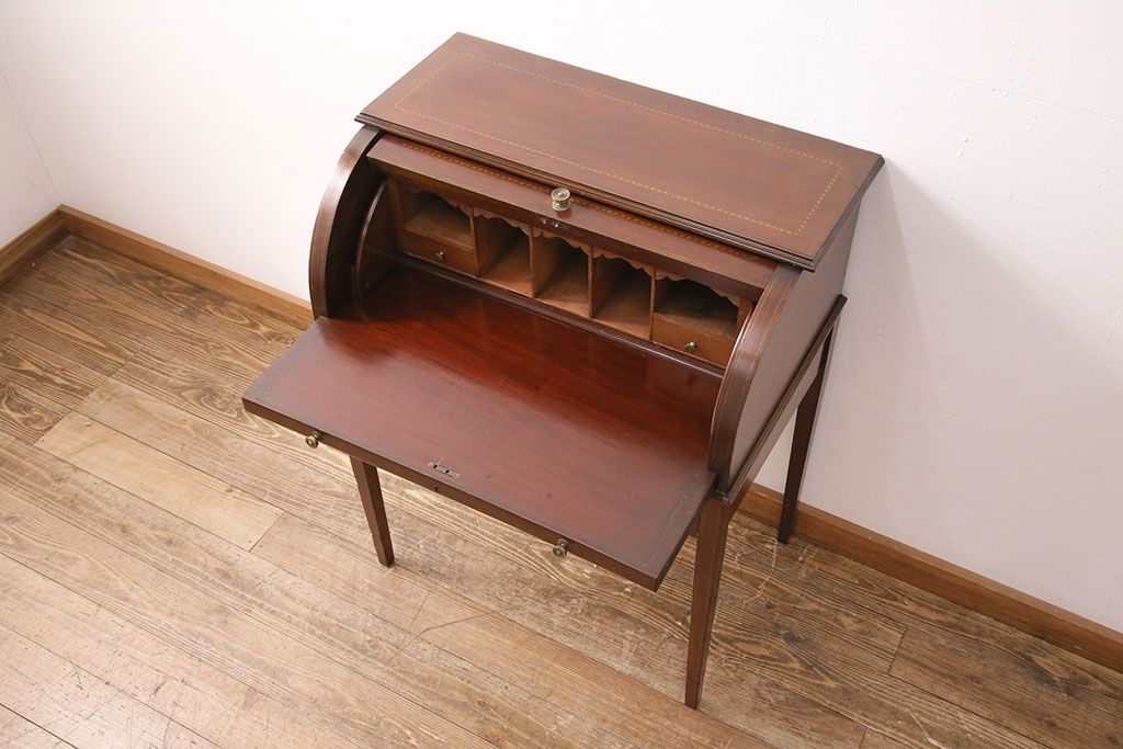イギリスアンティーク マホガニー材 象嵌入り 上品なデザインが魅力のライティングビューロー(簿記机、在宅ワーク、在宅用デスク)(R-050590)