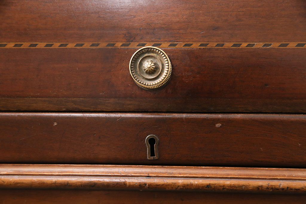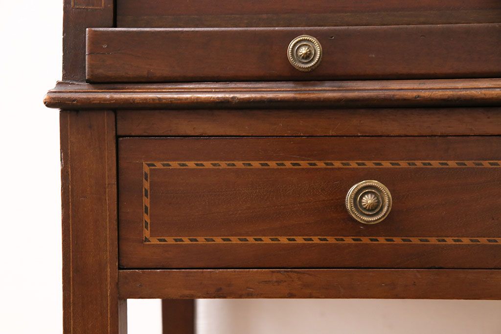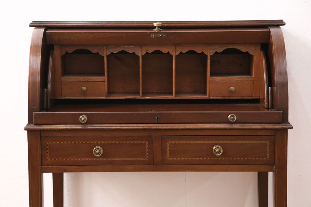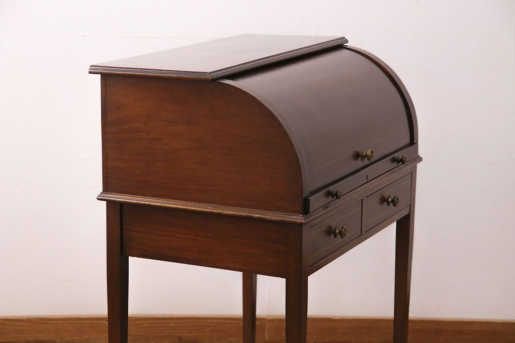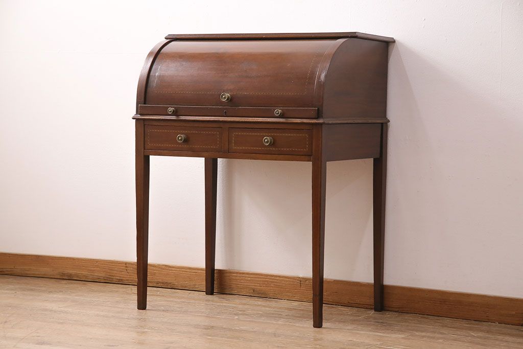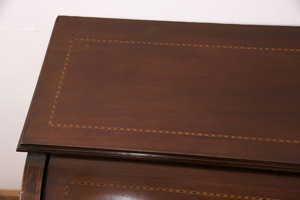 イギリスアンティーク マホガニー材 象嵌入り 上品なデザインが魅力のライティングビューロー(簿記机、在宅ワーク、在宅用デスク)(R-050590)