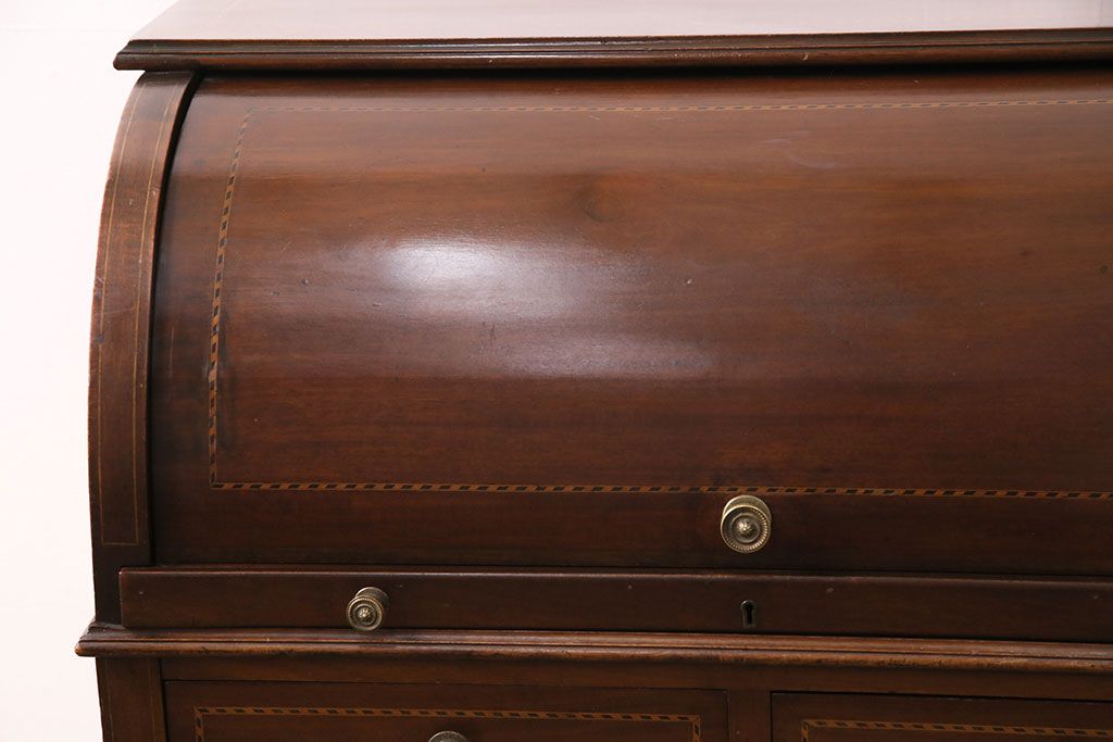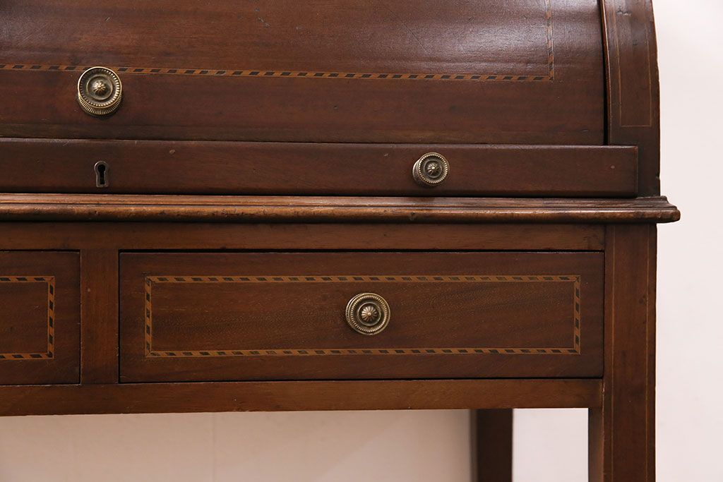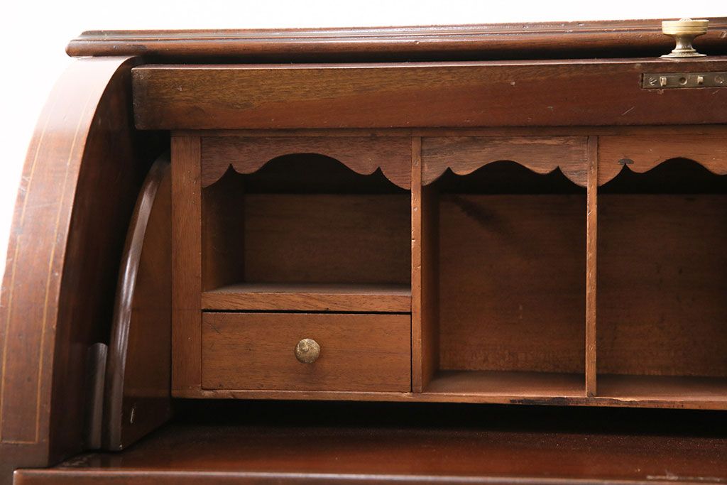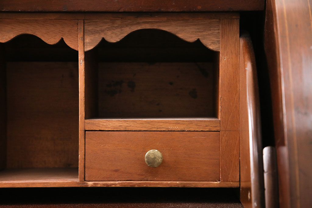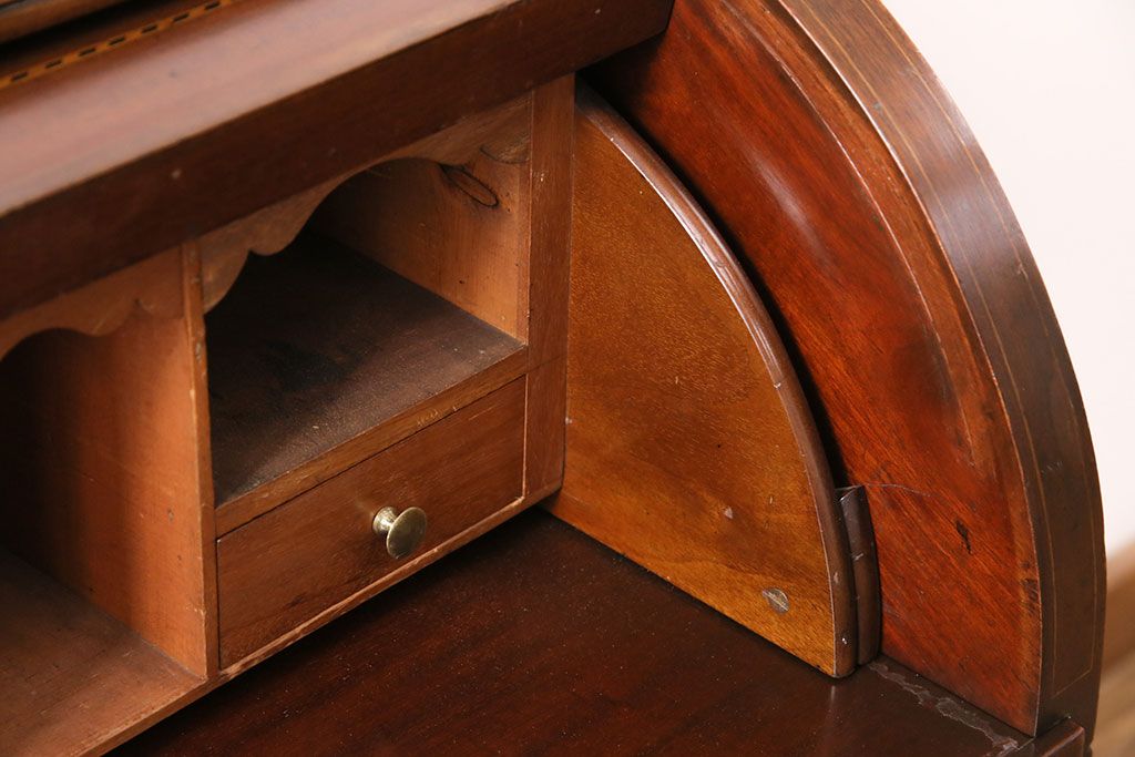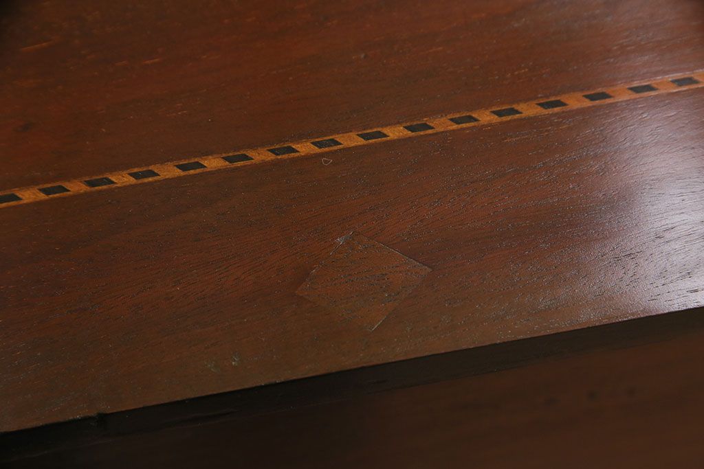 イギリスアンティーク マホガニー材 象嵌入り 上品なデザインが魅力のライティングビューロー(簿記机、在宅ワーク、在宅用デスク)(R-050590)