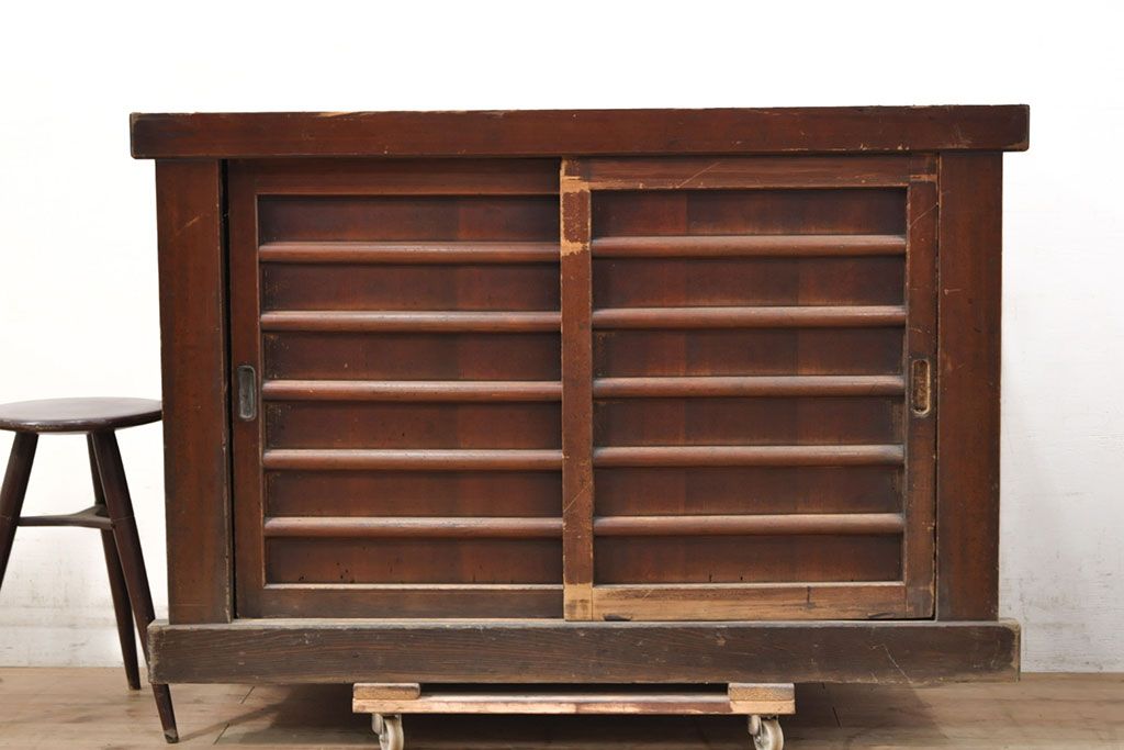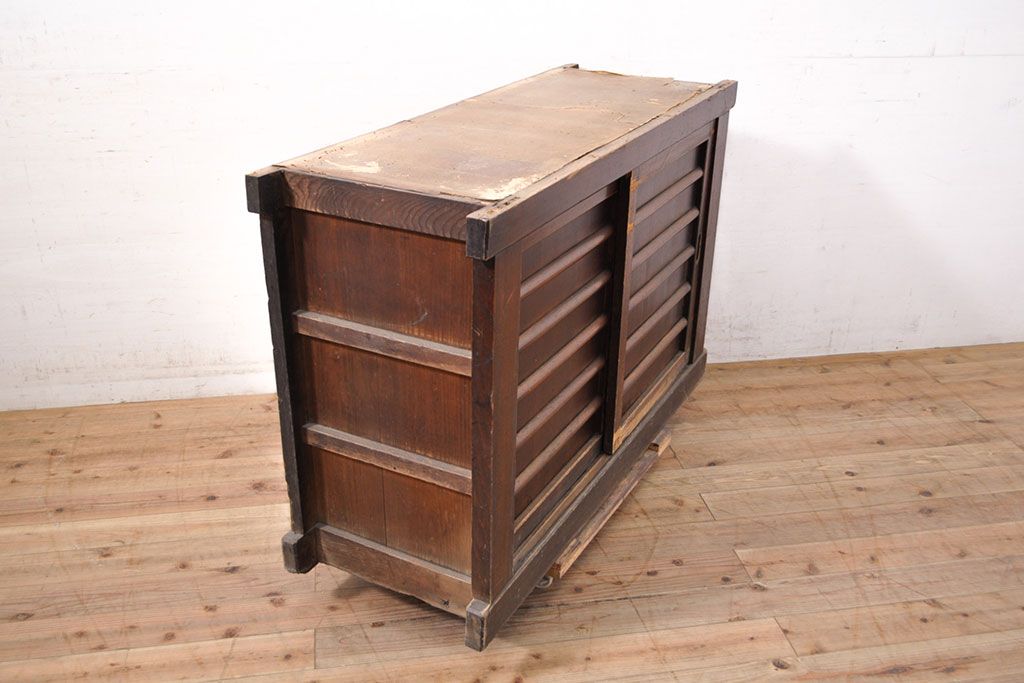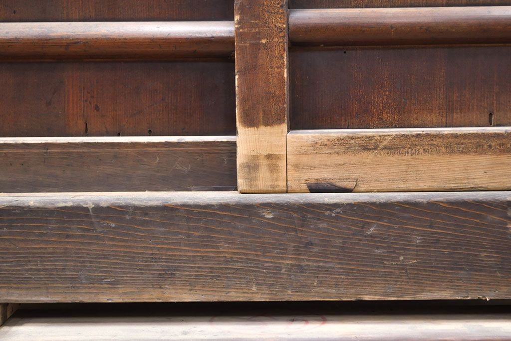 キャビネット・戸棚> 食器棚・カップボード > 【簡易リペア限定品】和製アンティーク 前面ヒノキ材・一部ケヤキ材 丁寧な作り込みが魅力的な水屋箪笥・下段(収納棚、戸棚、食器棚)(R-050540)