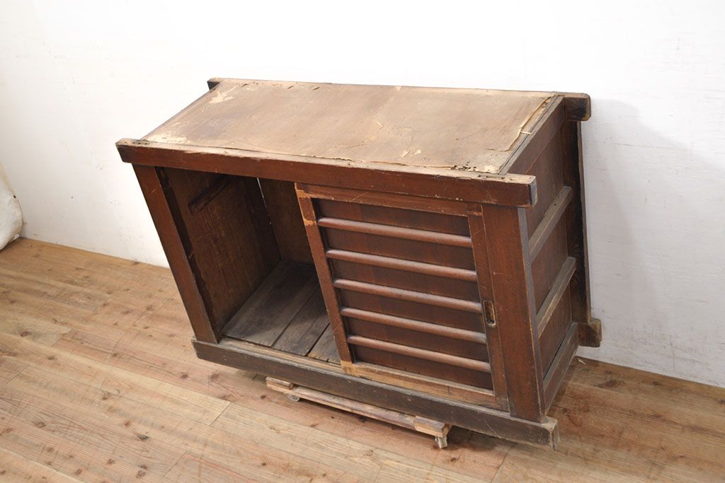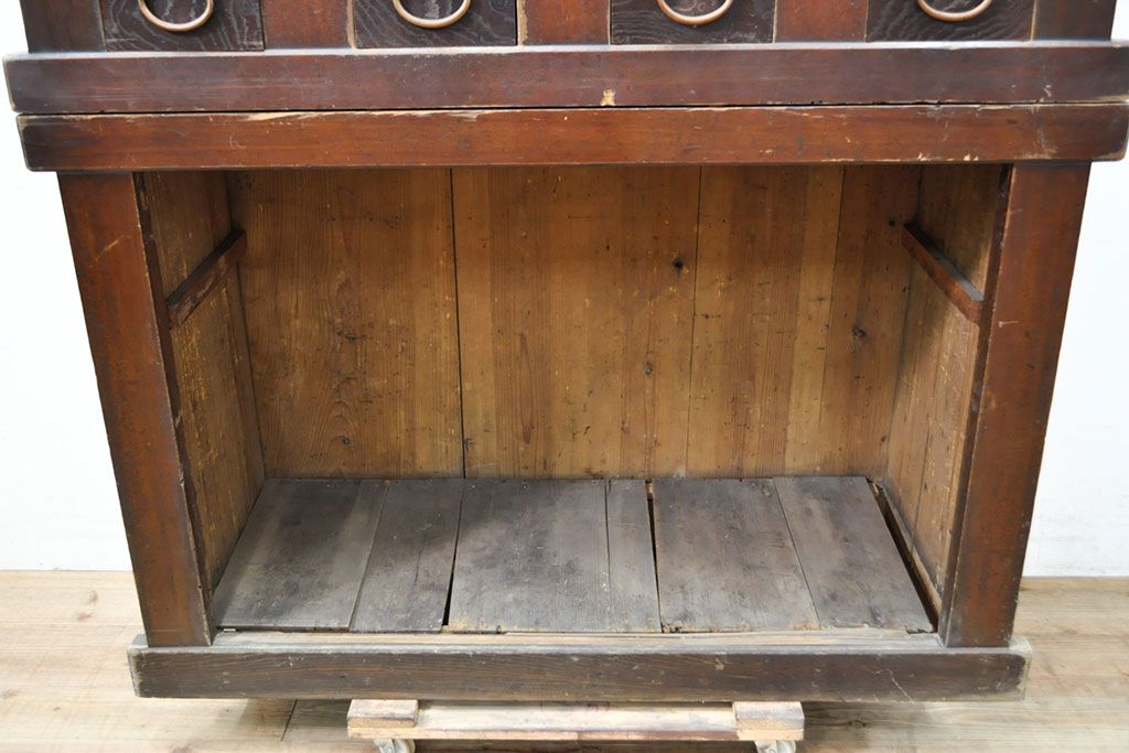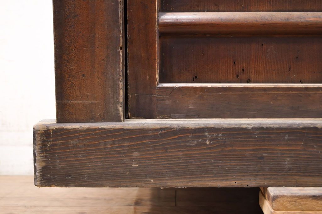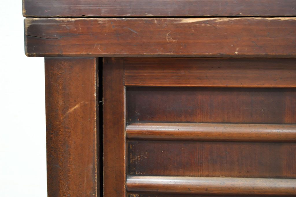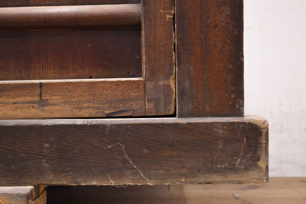 和箪笥> 水屋箪笥 > 【簡易リペア限定品】和製アンティーク 前面ヒノキ材・一部ケヤキ材 丁寧な作り込みが魅力的な水屋箪笥・下段(収納棚、戸棚、食器棚)(R-050540)
