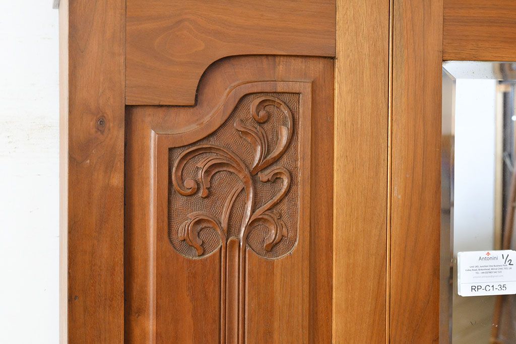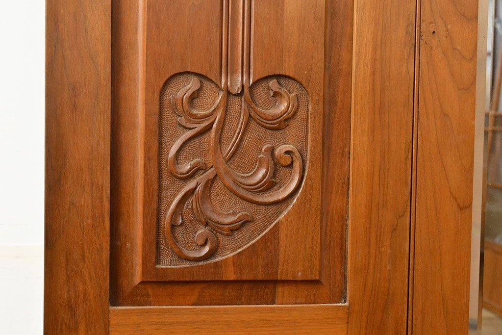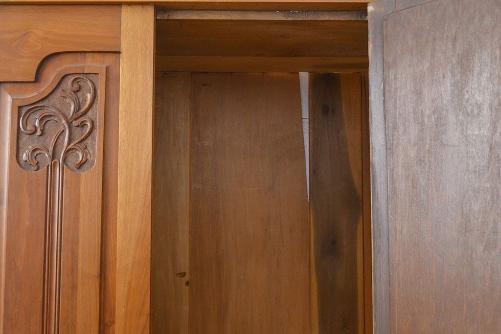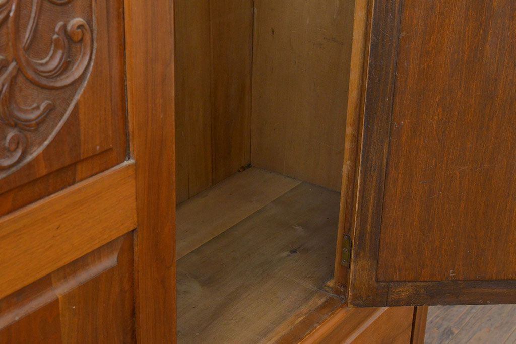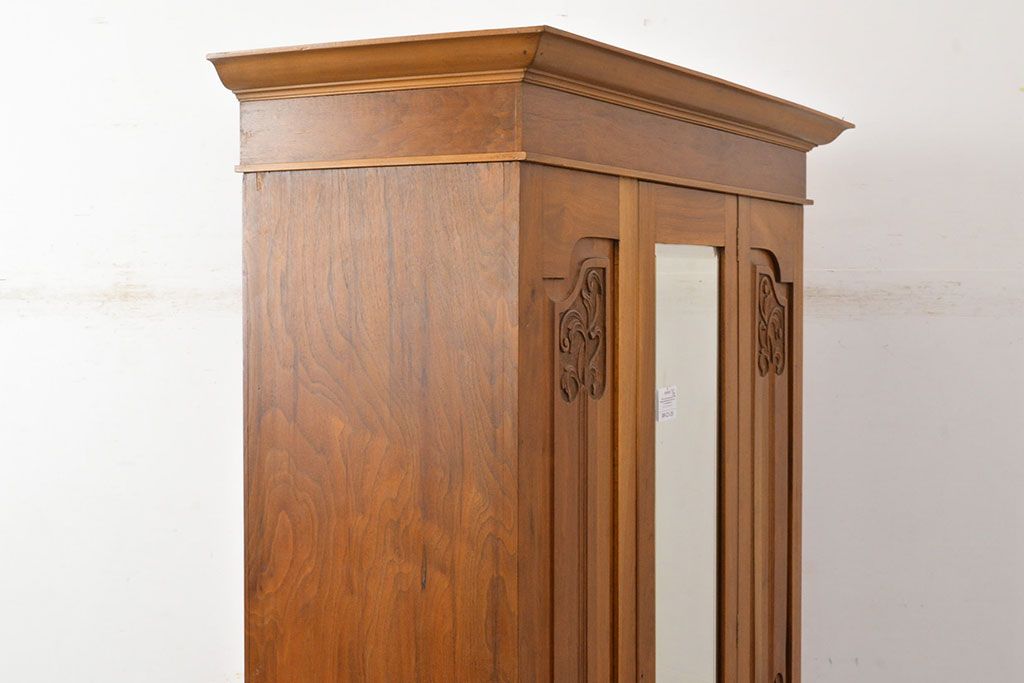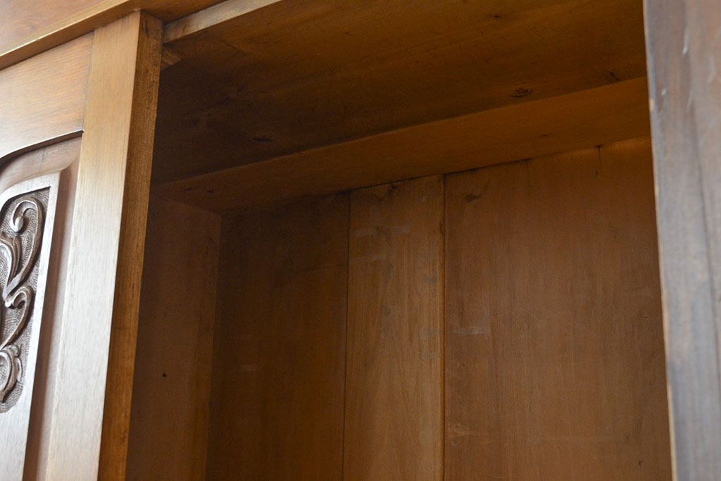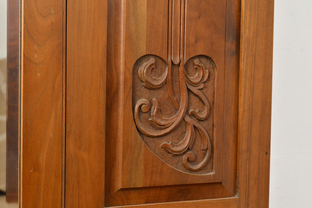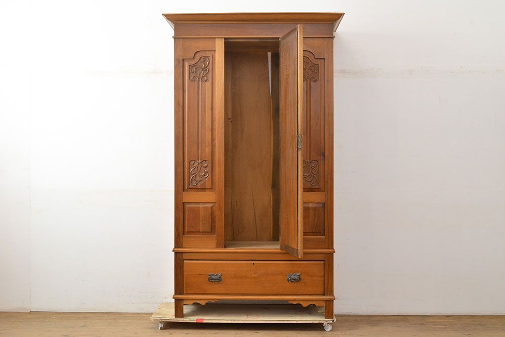 イギリスアンティーク 優雅なレリーフが品の良さを高めるウォールナット材製ワードローブ(洋服タンス、引き出し、キャビネット)(R-050247)