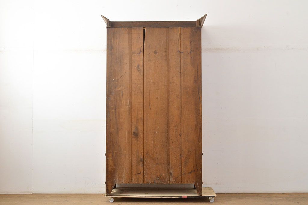 イギリスアンティーク 優雅なレリーフが品の良さを高めるウォールナット材製ワードローブ(洋服タンス、引き出し、キャビネット)(R-050247)です。