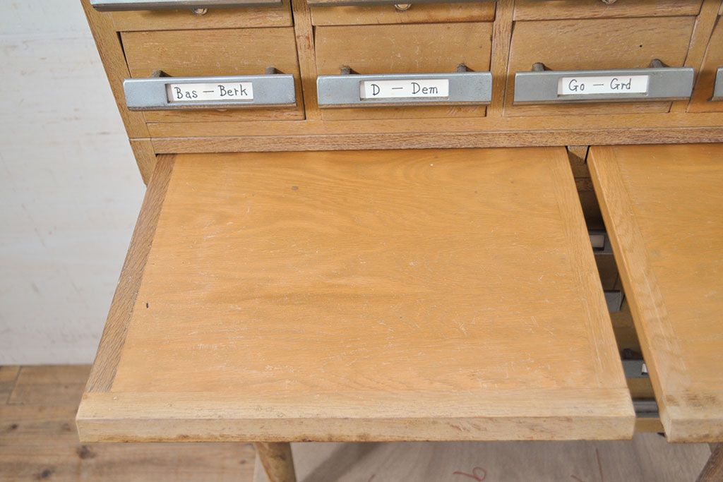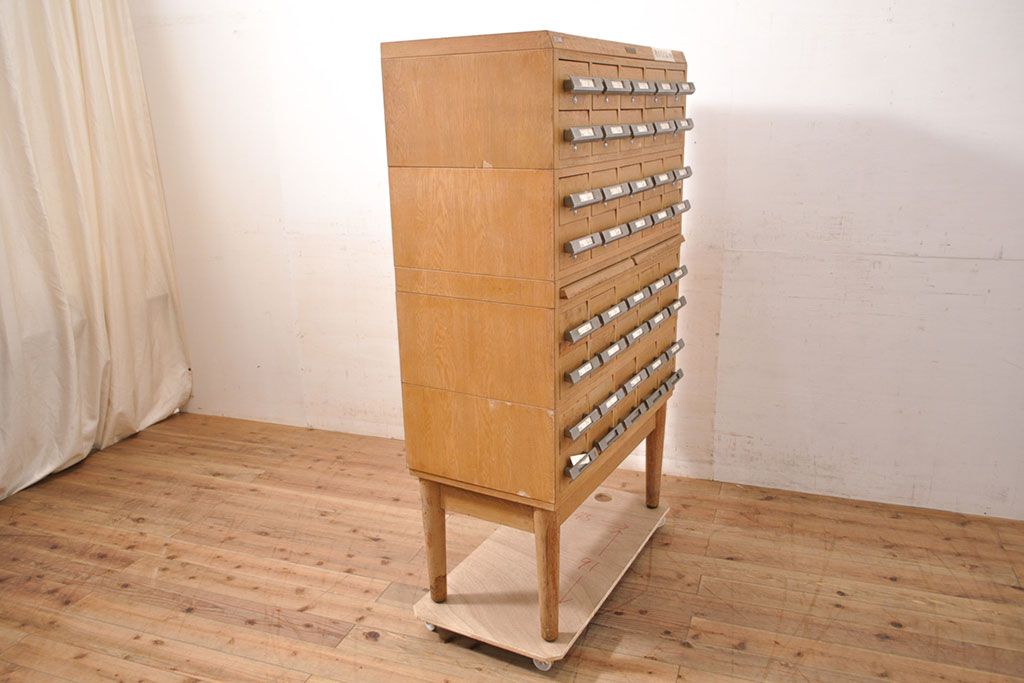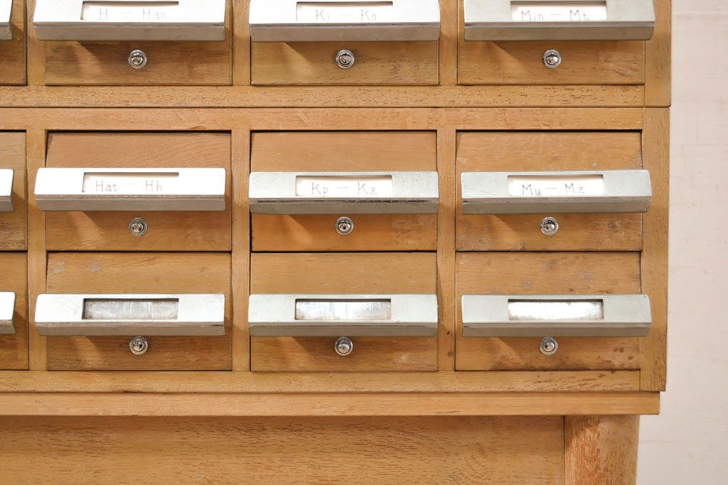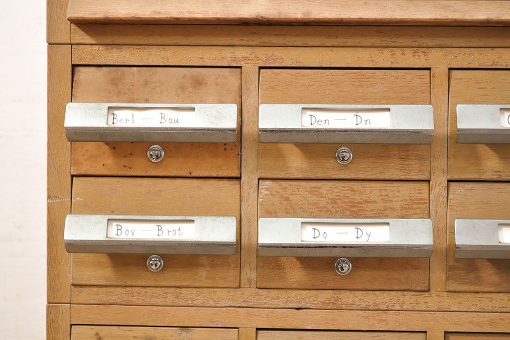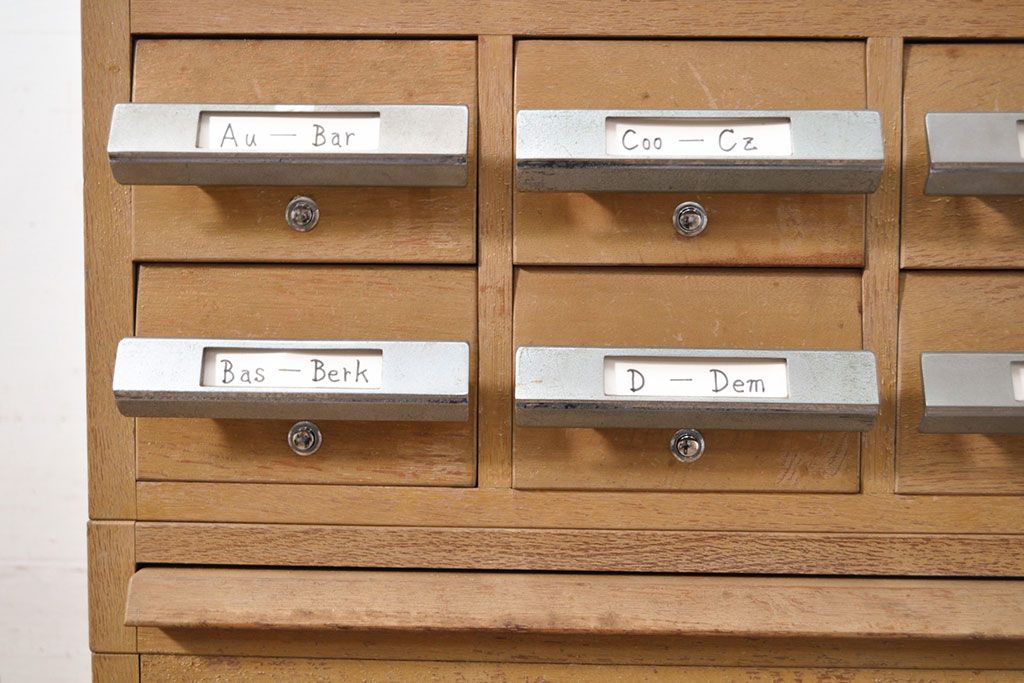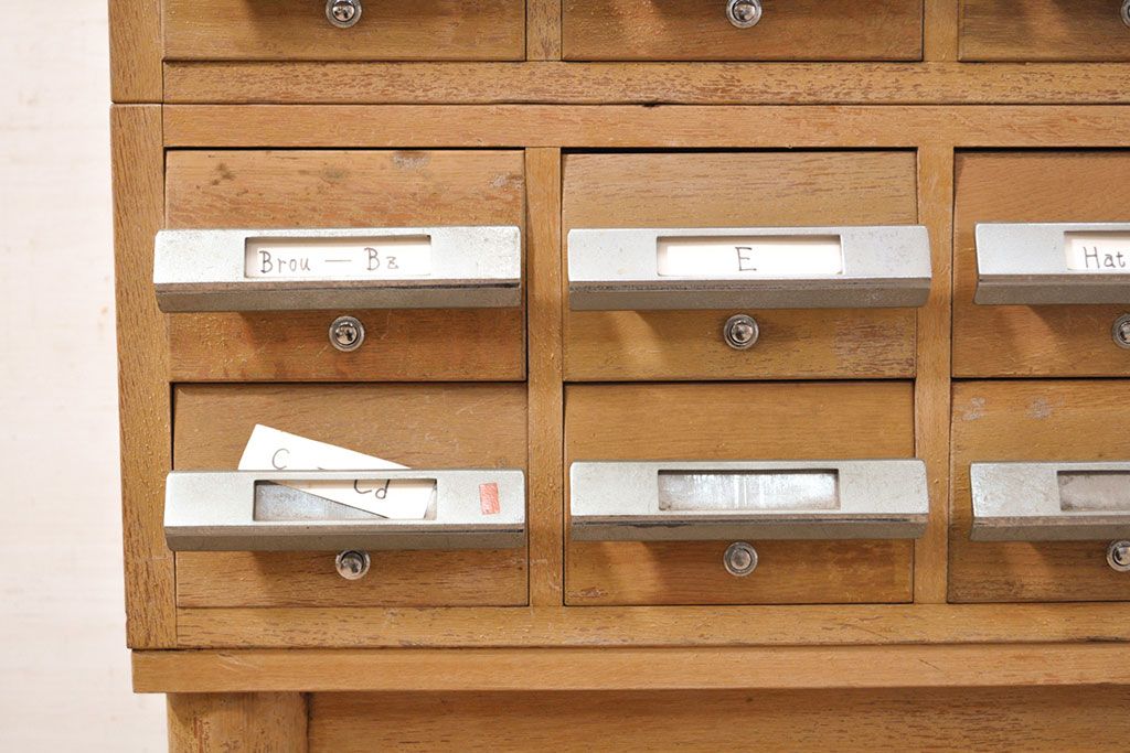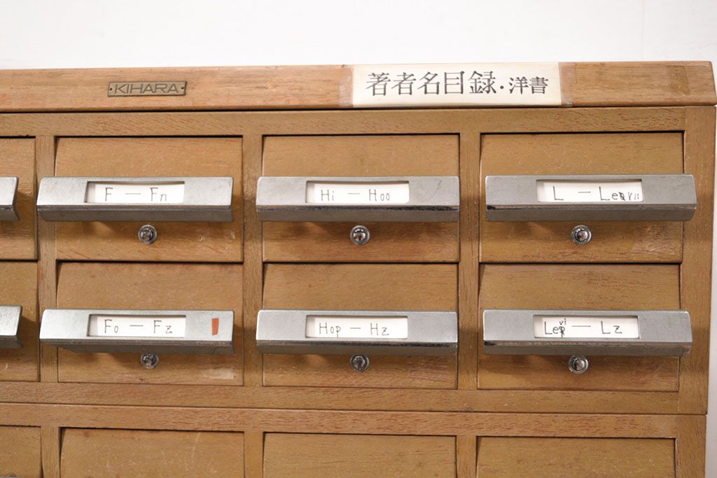 チェスト・引き出し > 【簡易リペア限定品】和製ビンテージ 昭和レトロ KIHARA ナチュラルスタイルの収納におすすめのナラ材製ネームプレート付きカードケース(引き出し、チェスト、ヴィンテージ、図書館、図書室)(R-050541)