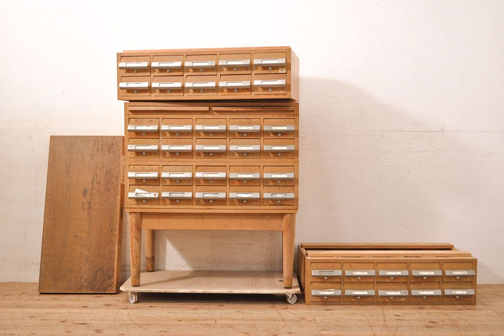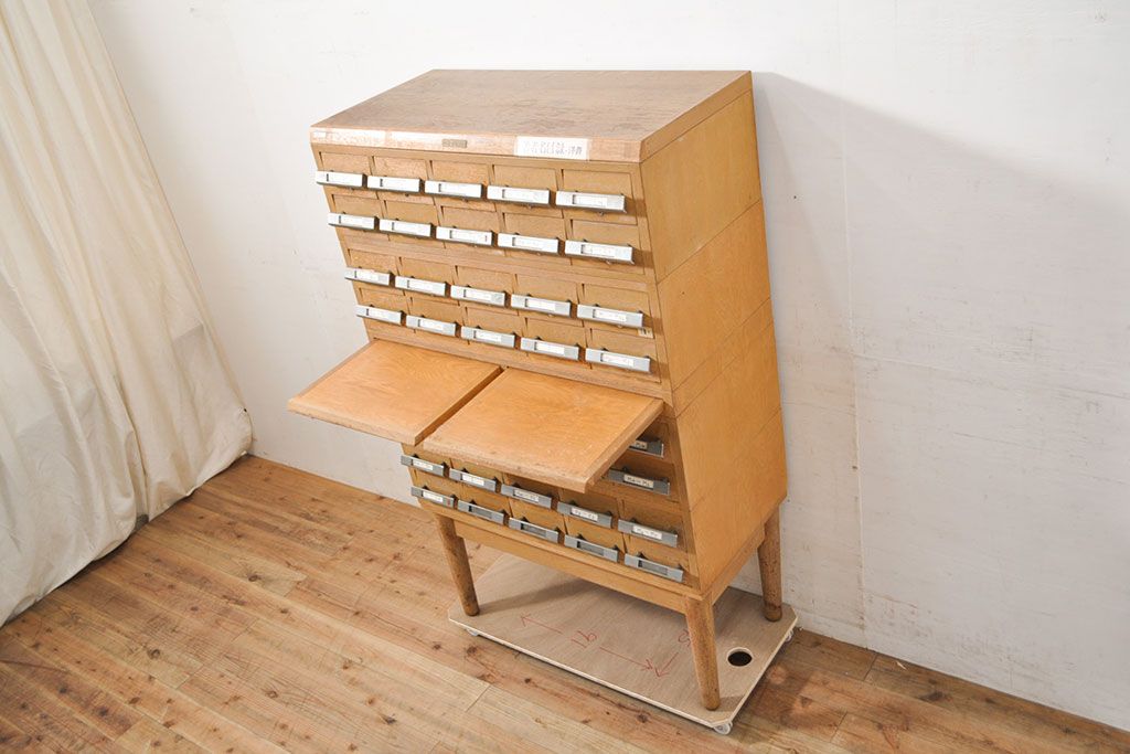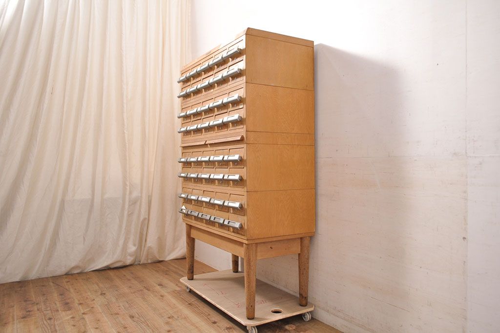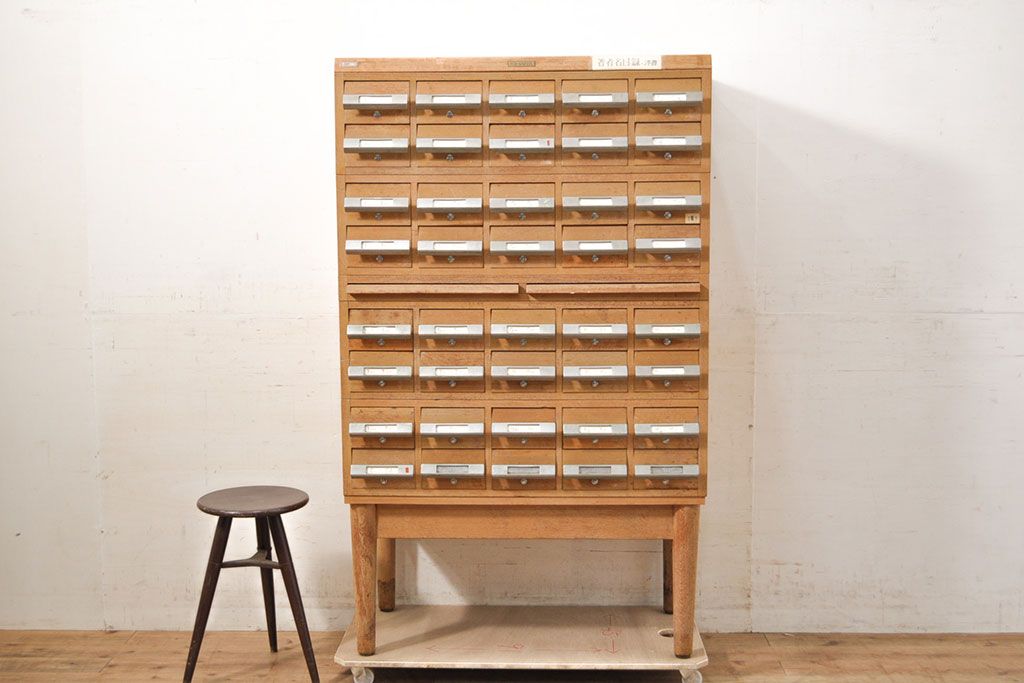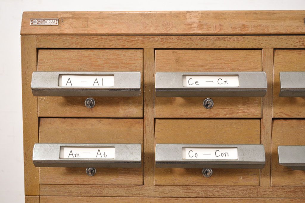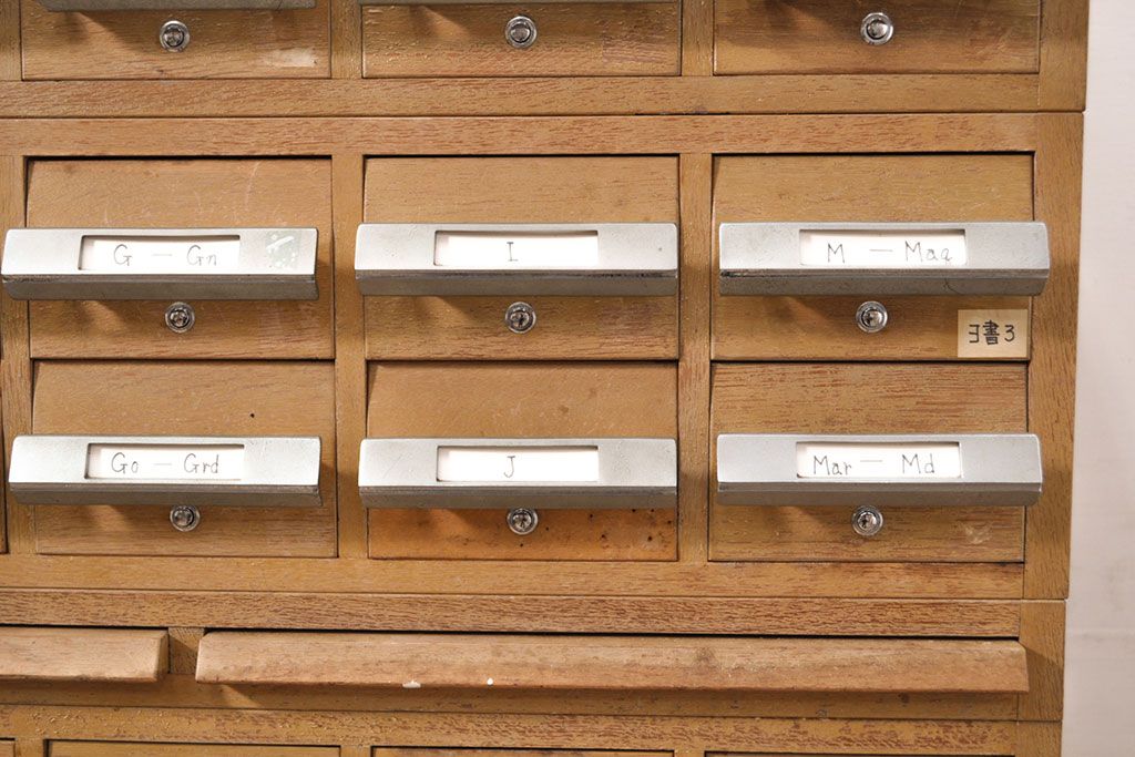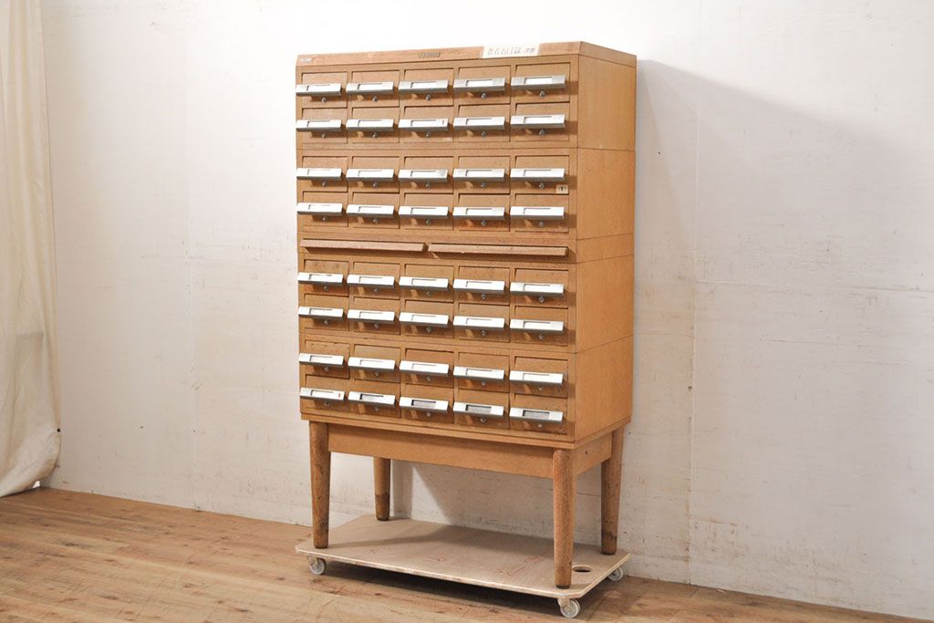 チェスト・引き出し > 【簡易リペア限定品】和製ビンテージ 昭和レトロ KIHARA ナチュラルスタイルの収納におすすめのナラ材製ネームプレート付きカードケース(引き出し、チェスト、ヴィンテージ、図書館、図書室)(R-050541)