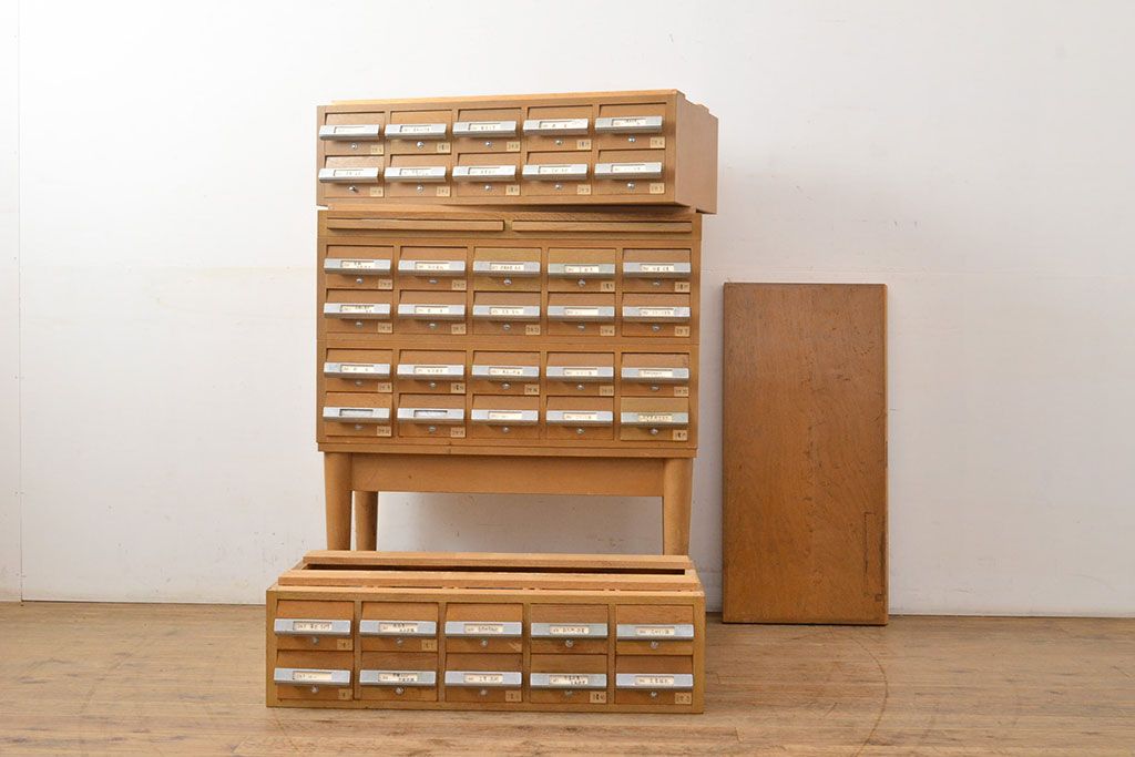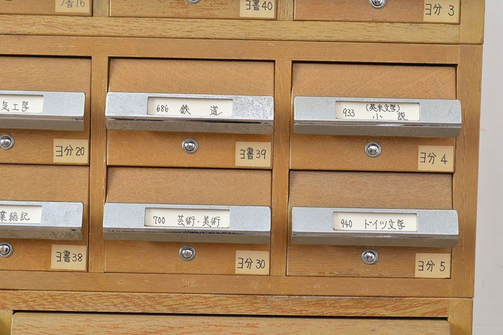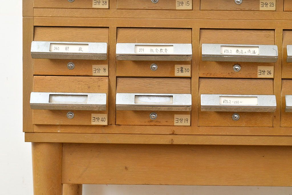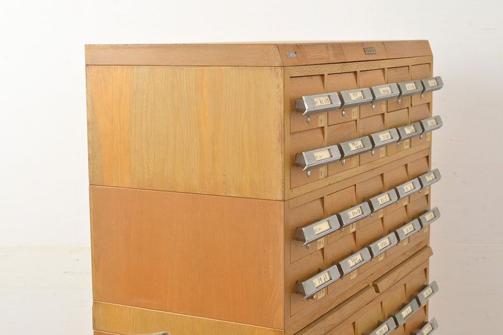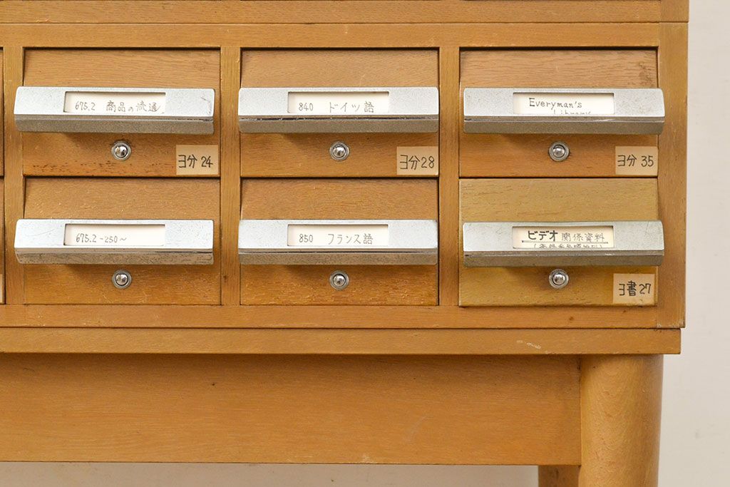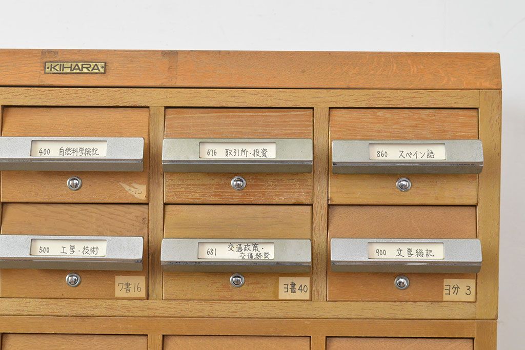 チェスト・引き出し > 【簡易リペア限定品】和製ビンテージ 昭和レトロ KIHARA お洒落な小物収納が叶うナラ材製ネームプレート付きカードケース(引き出し、チェスト、ヴィンテージ、図書館、図書室)(R-050543)