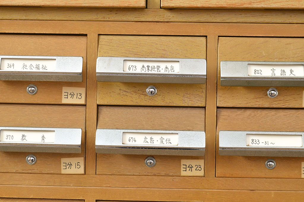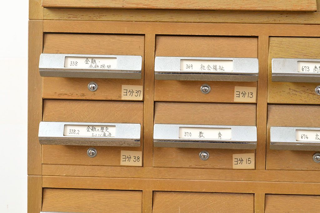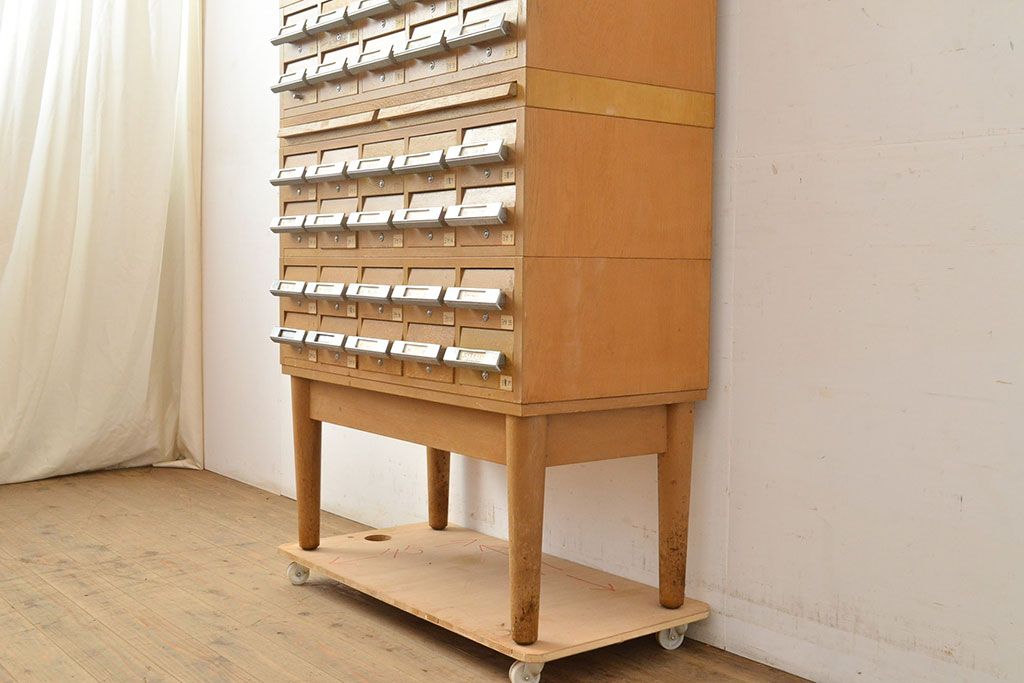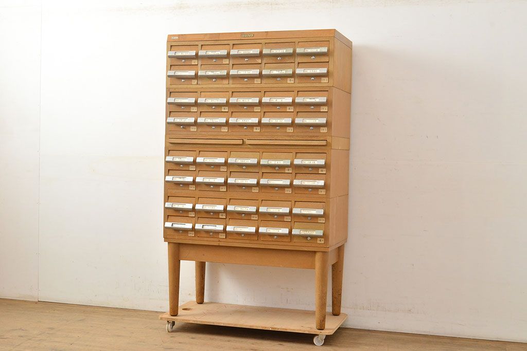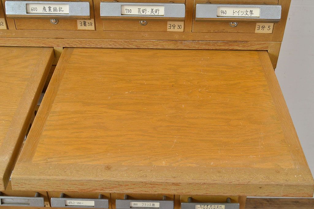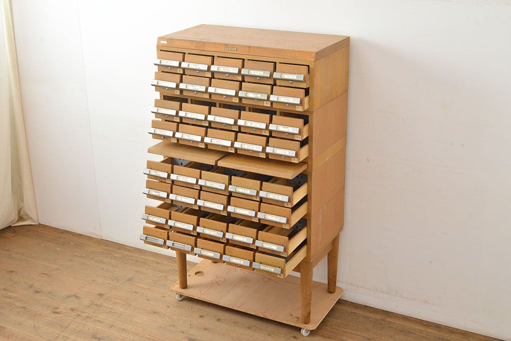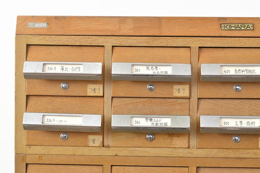チェスト・引き出し > 【簡易リペア限定品】和製ビンテージ 昭和レトロ KIHARA お洒落な小物収納が叶うナラ材製ネームプレート付きカードケース(引き出し、チェスト、ヴィンテージ、図書館、図書室)(R-050543)