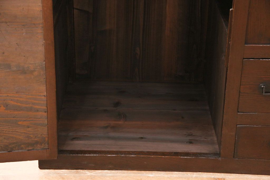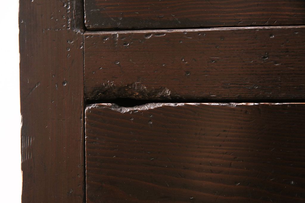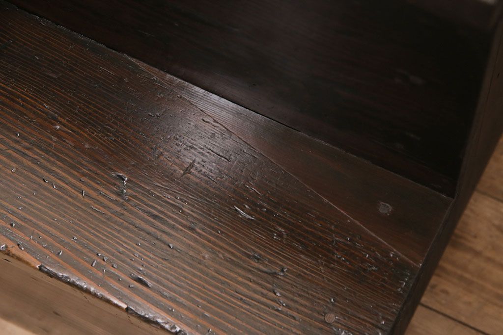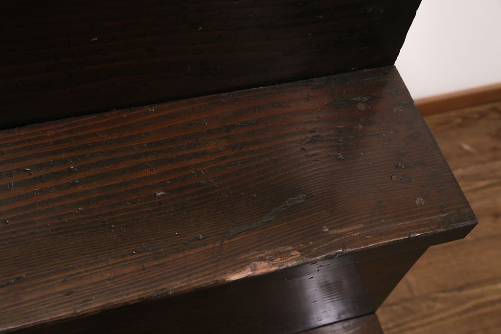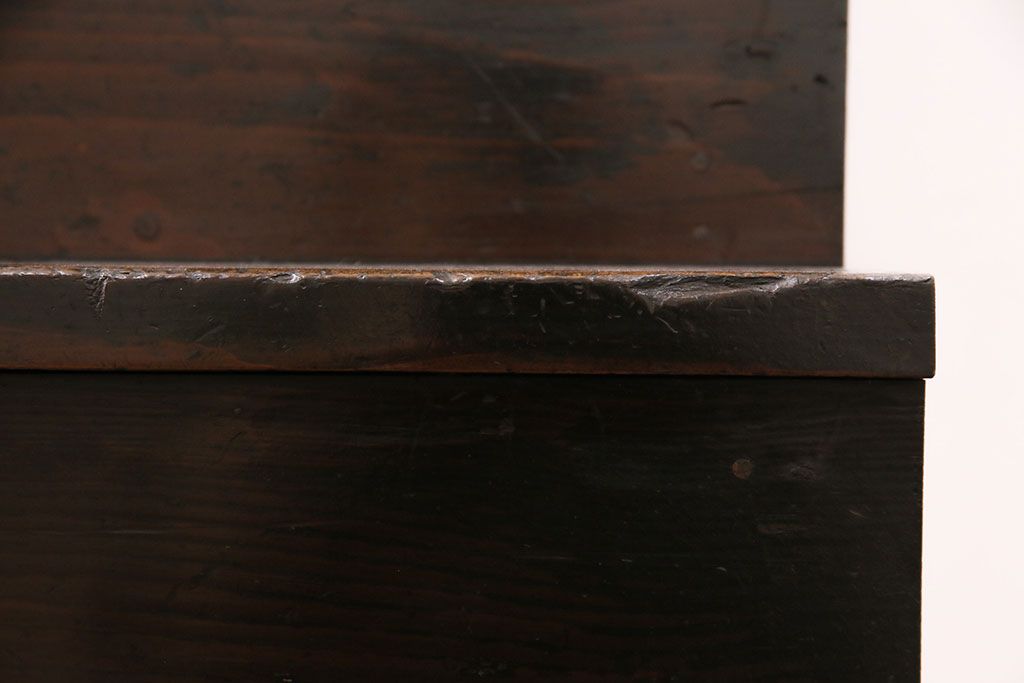 セミオーダー家具実績 > 明治期の階段箪笥をリペア&カスタム!可動部の調整。背板など傷んだ箇所を張り替え。極めて黒に近い茶色に着色し仕上げ。(収納棚、時代箪笥、和タンス)