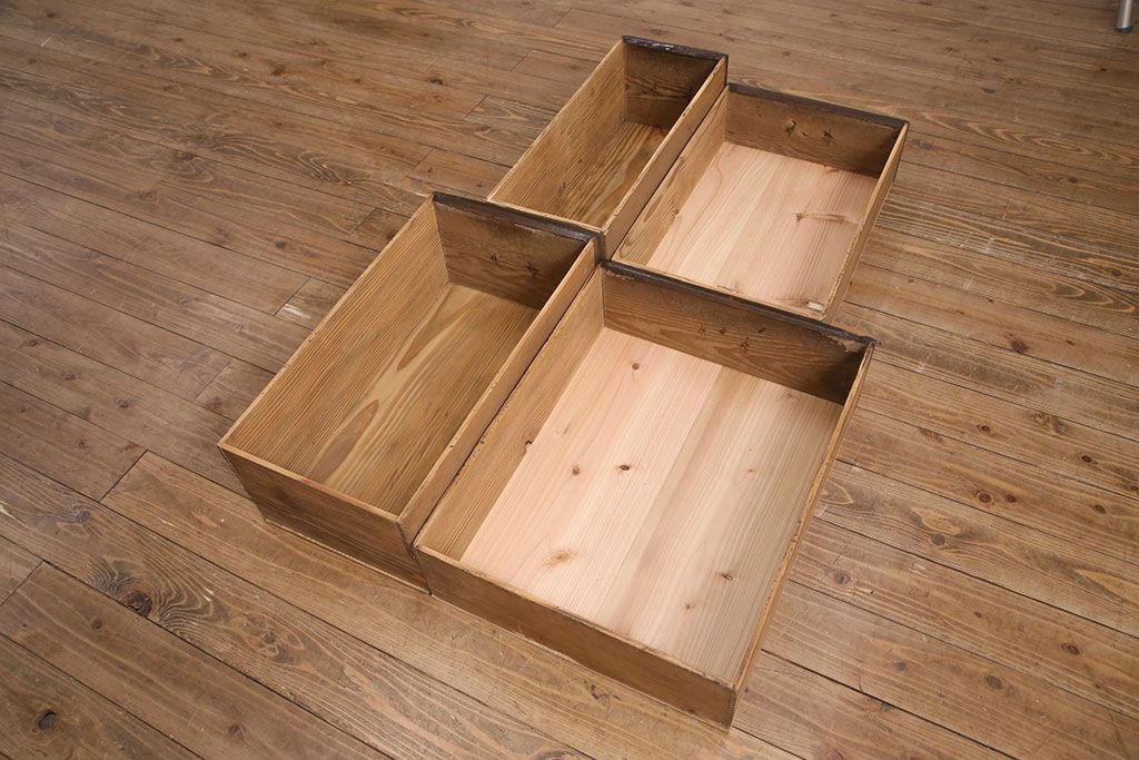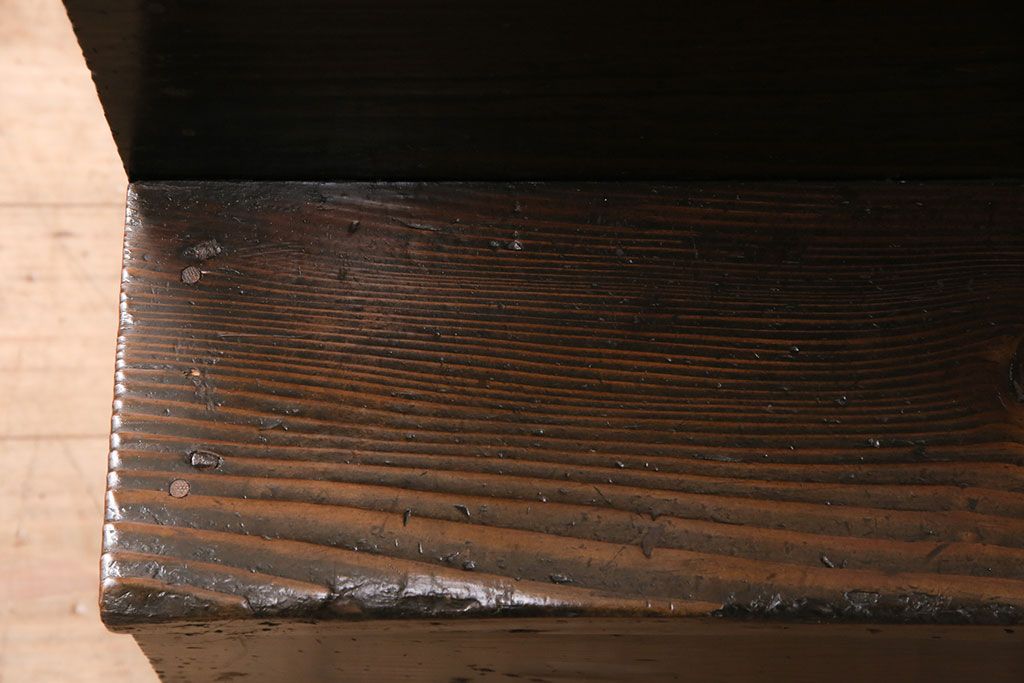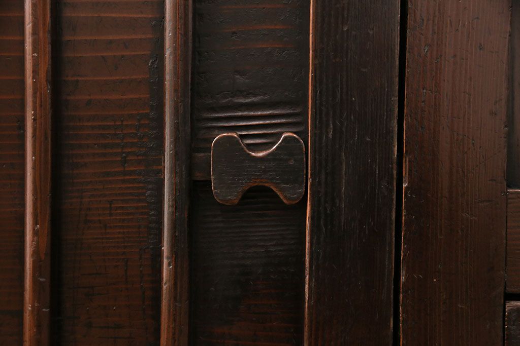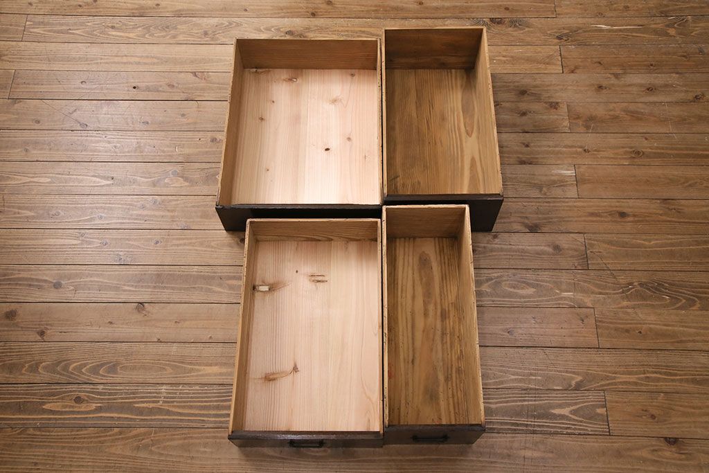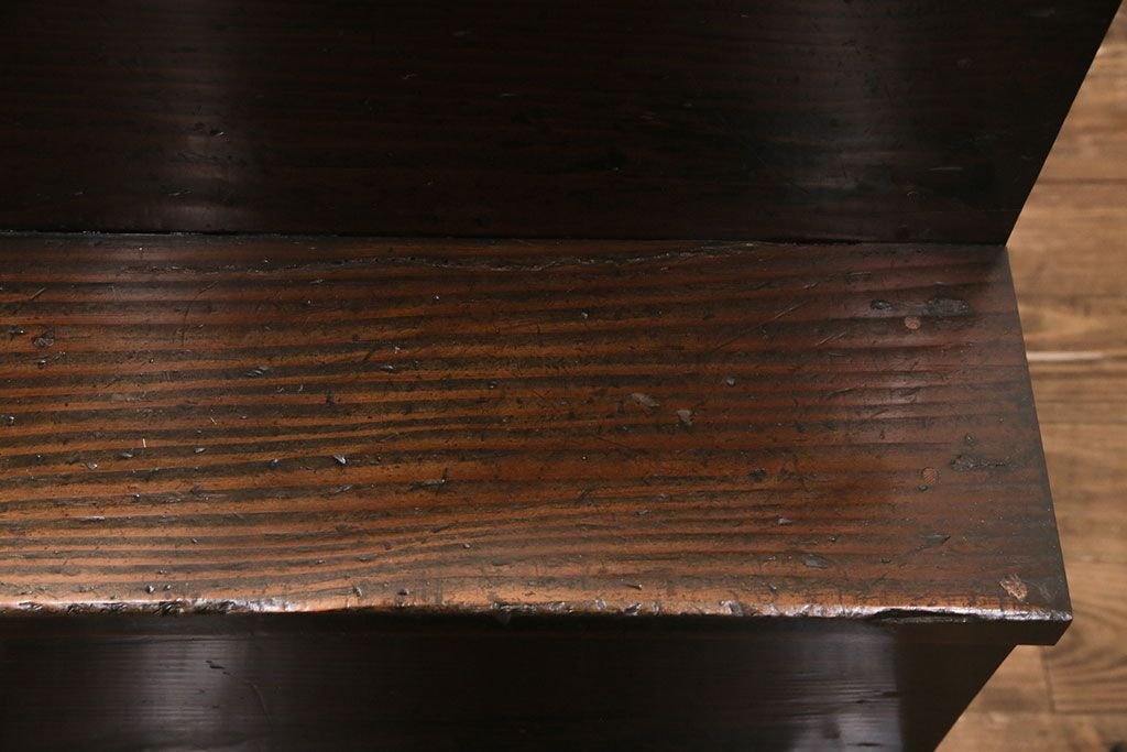 セミオーダー家具実績 > 明治期の階段箪笥をリペア&カスタム!可動部の調整。背板など傷んだ箇所を張り替え。極めて黒に近い茶色に着色し仕上げ。(収納棚、時代箪笥、和タンス)