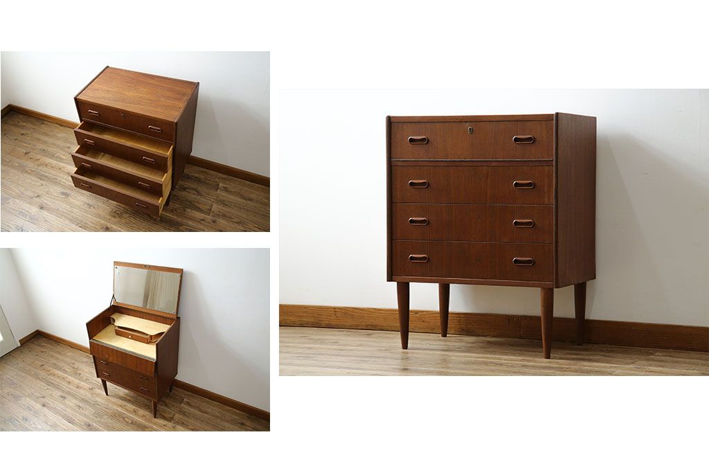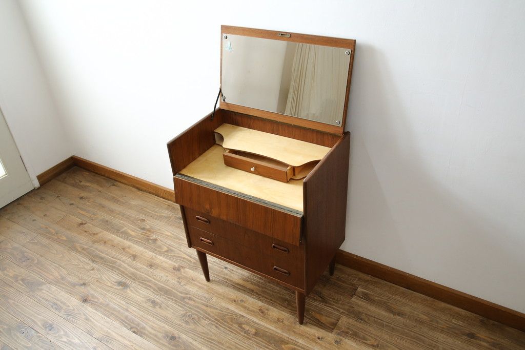 チェスト・引き出し> ドレッシングチェスト > 北欧ヴィンテージ チーク材 コンパクトなサイズが嬉しいスタイリッシュなドレッシングチェスト(ドレッサー、鏡台、引き出し、ビンテージ)(R-050610)