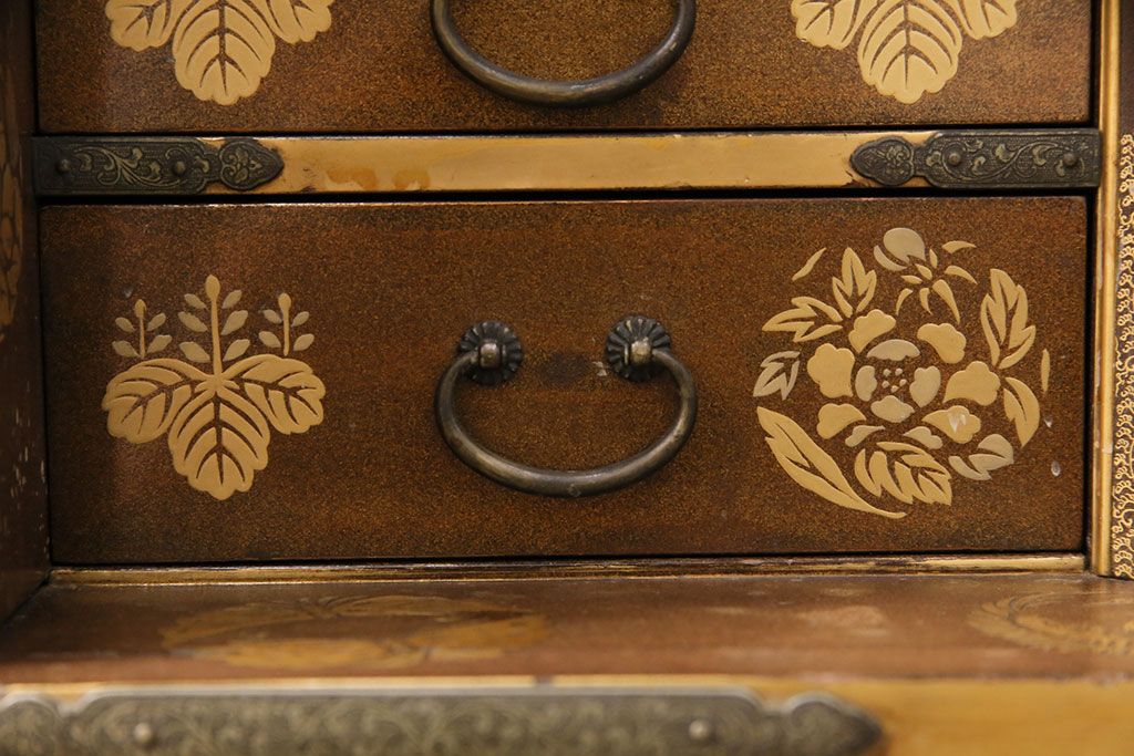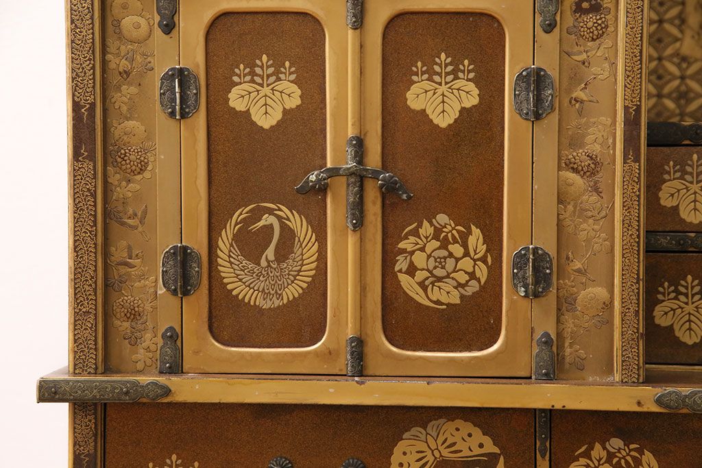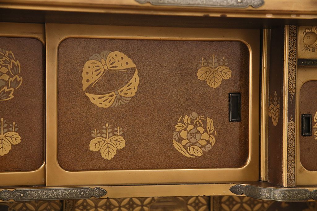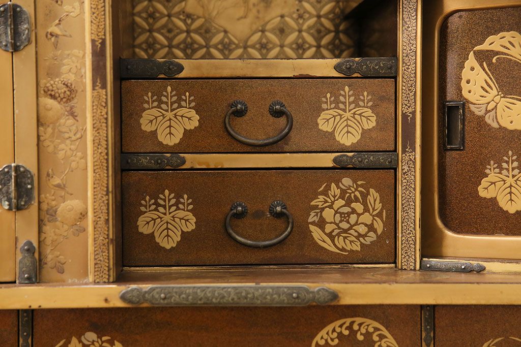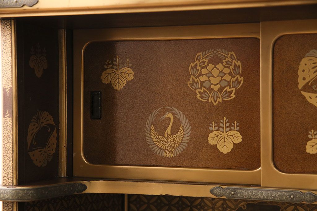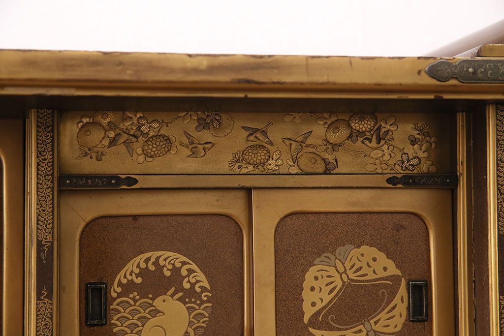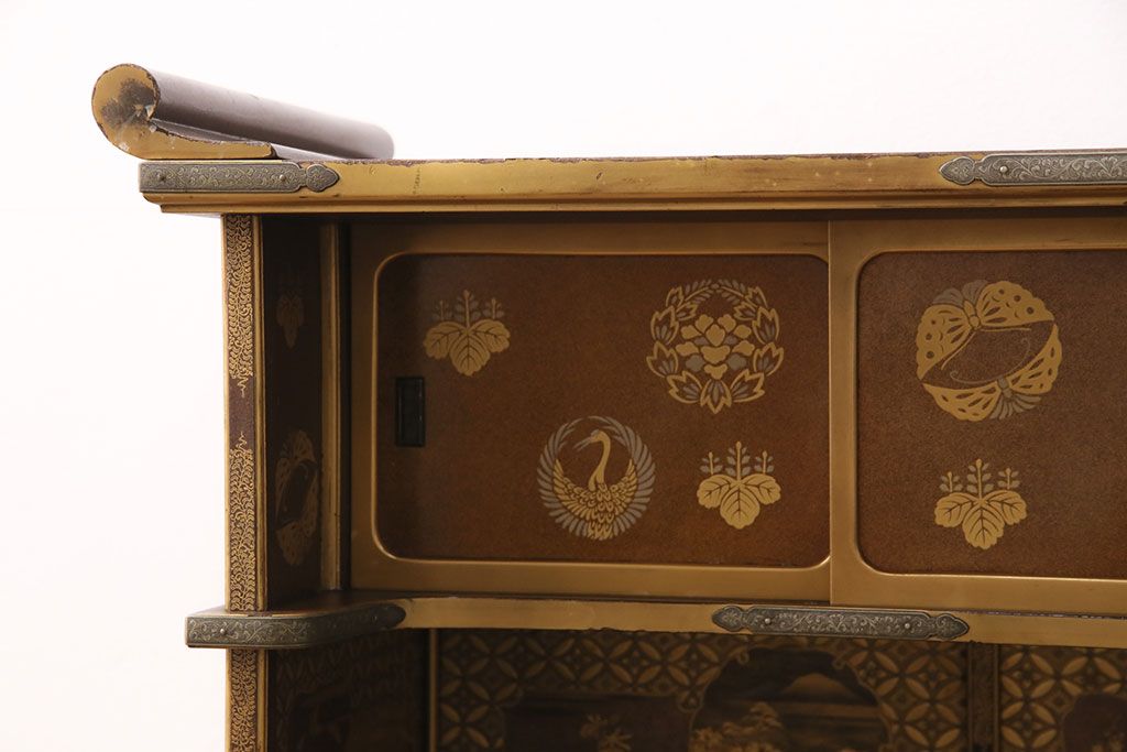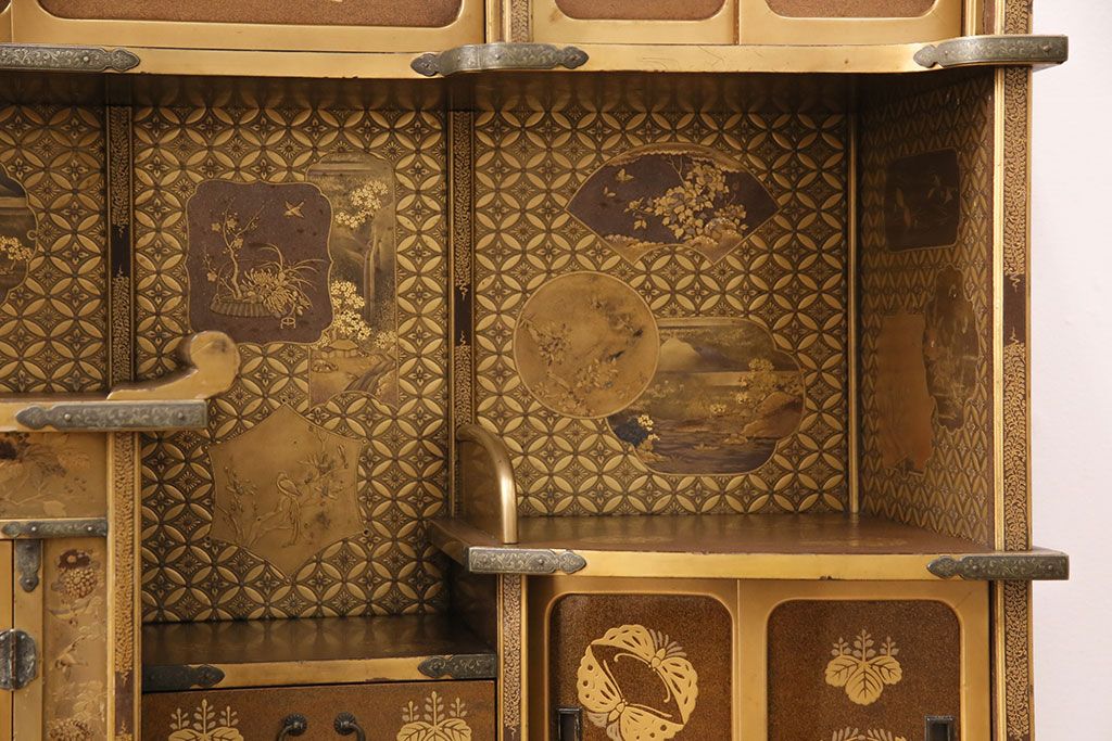 和製アンティーク 時代物 美術品 素晴らしい高蒔絵が目を引く梨地飾り棚(茶棚、収納棚)(R-050585)