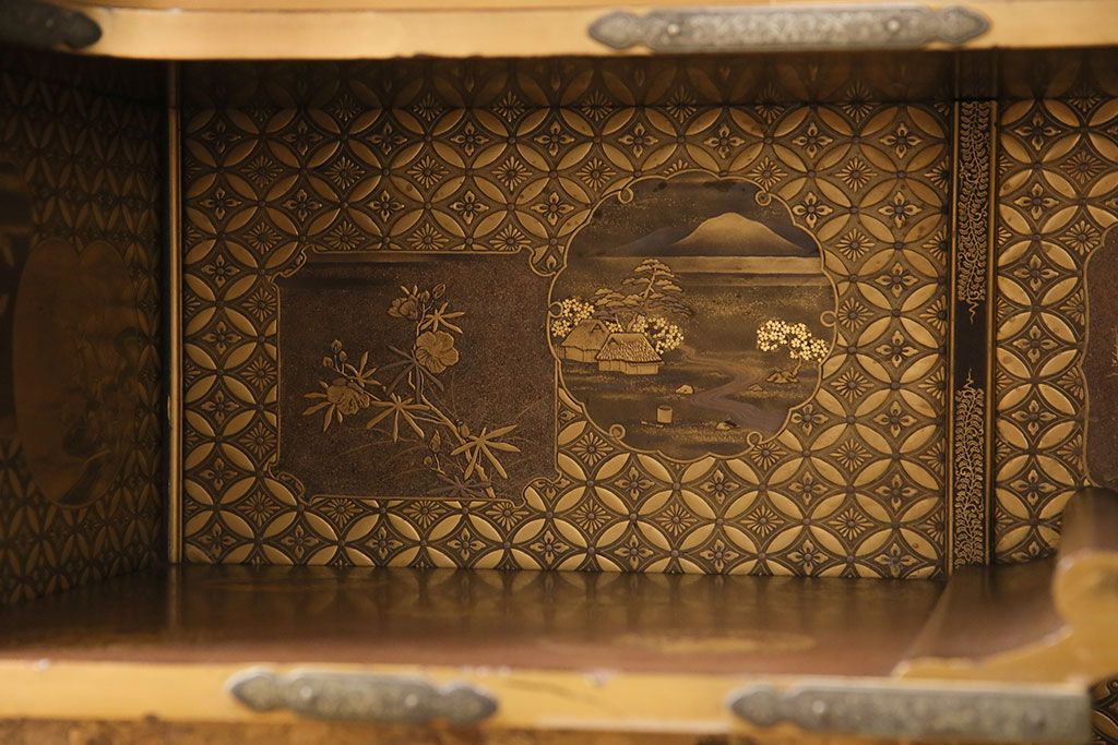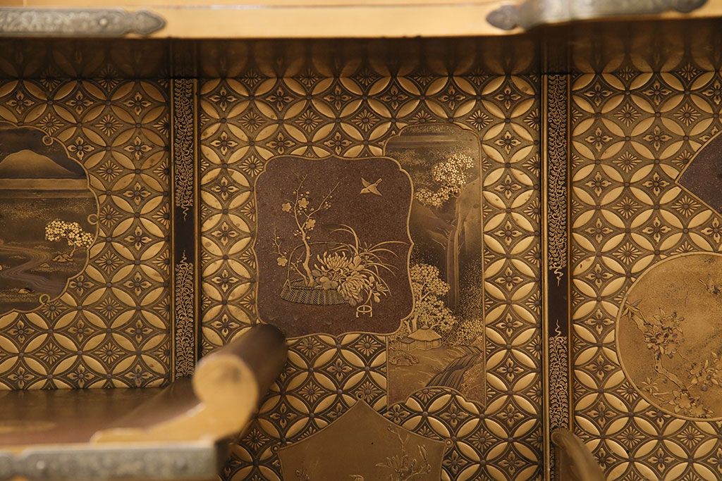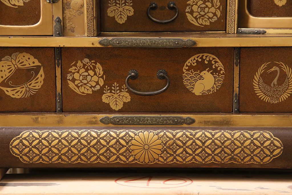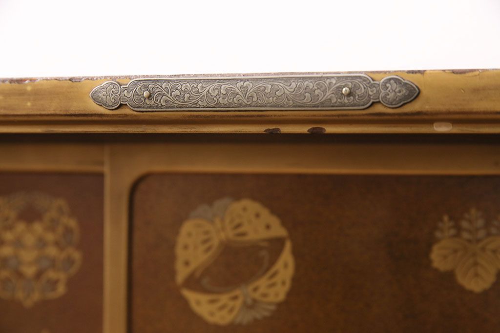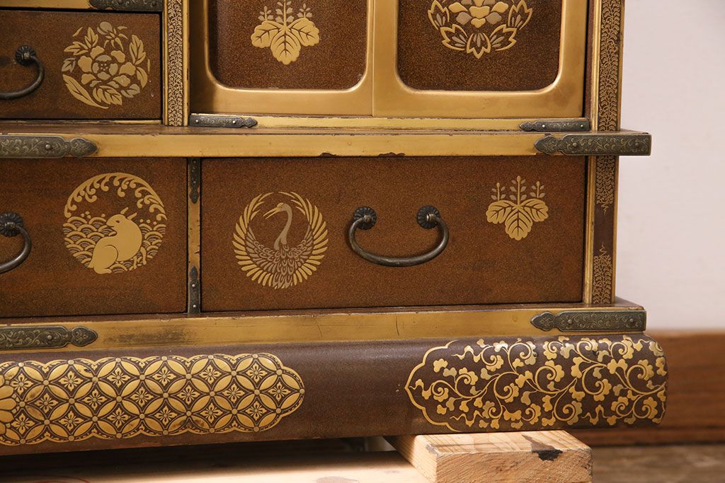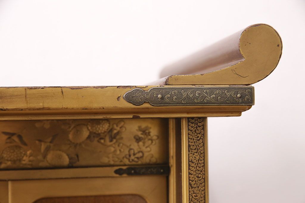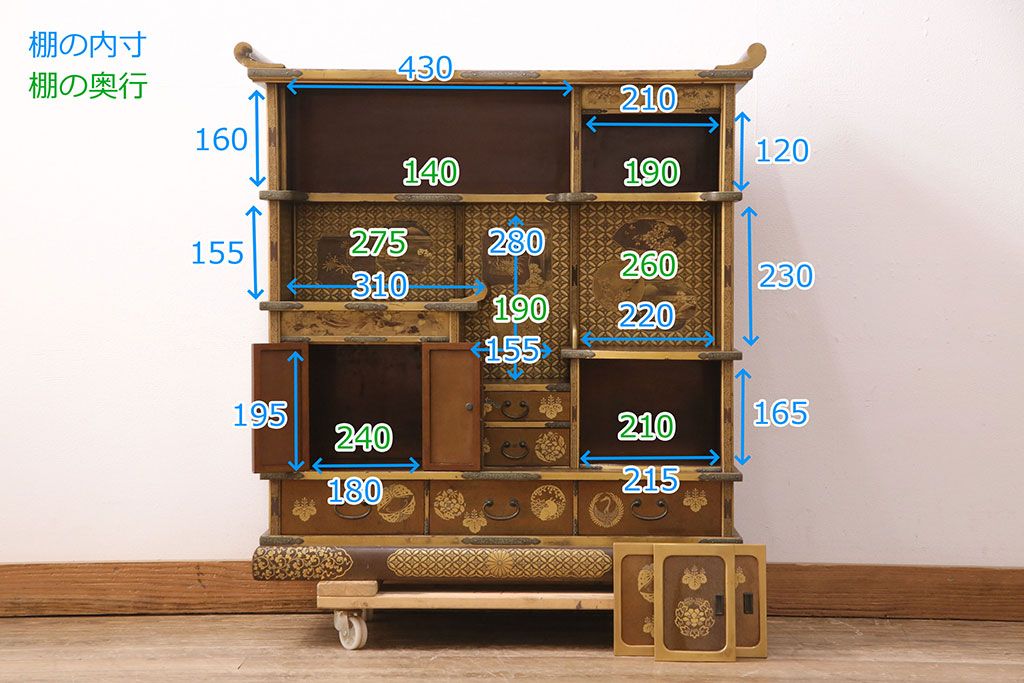 和製アンティーク 時代物 美術品 素晴らしい高蒔絵が目を引く梨地飾り棚(茶棚、収納棚)(R-050585)