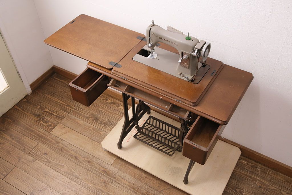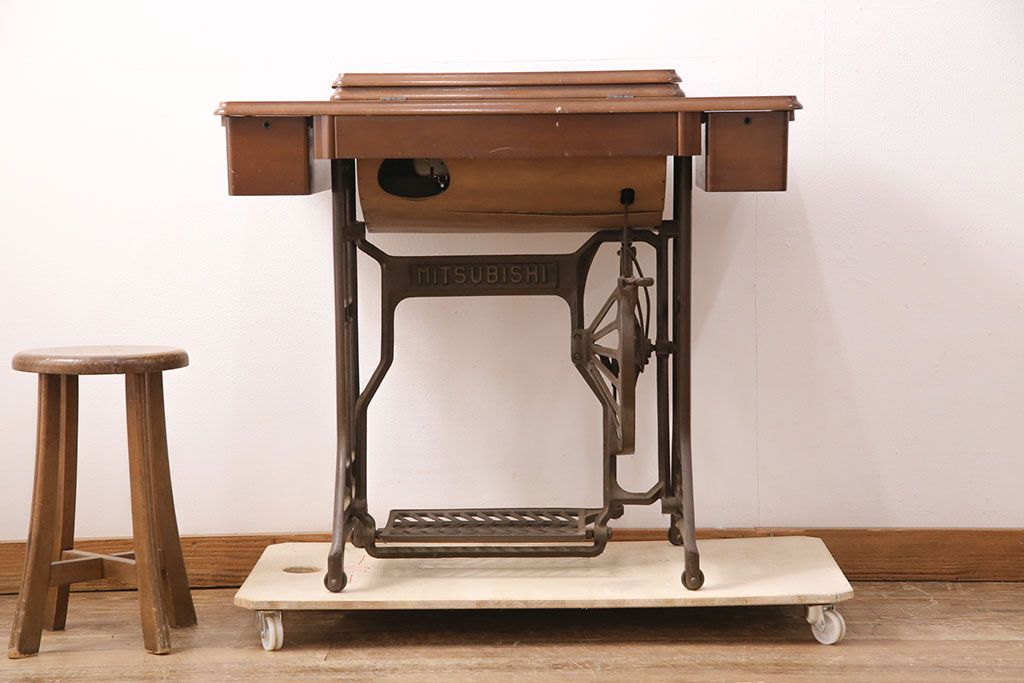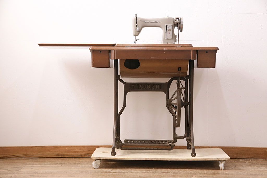 ラフジュ工房> 雑貨> ミシン > ジャンク品 mitsubishi(三菱)社 お洒落なアンティーク空間を演出するミシンテーブル(ミシン台、ディスプレイ、工業用ミシン)(R-050586)