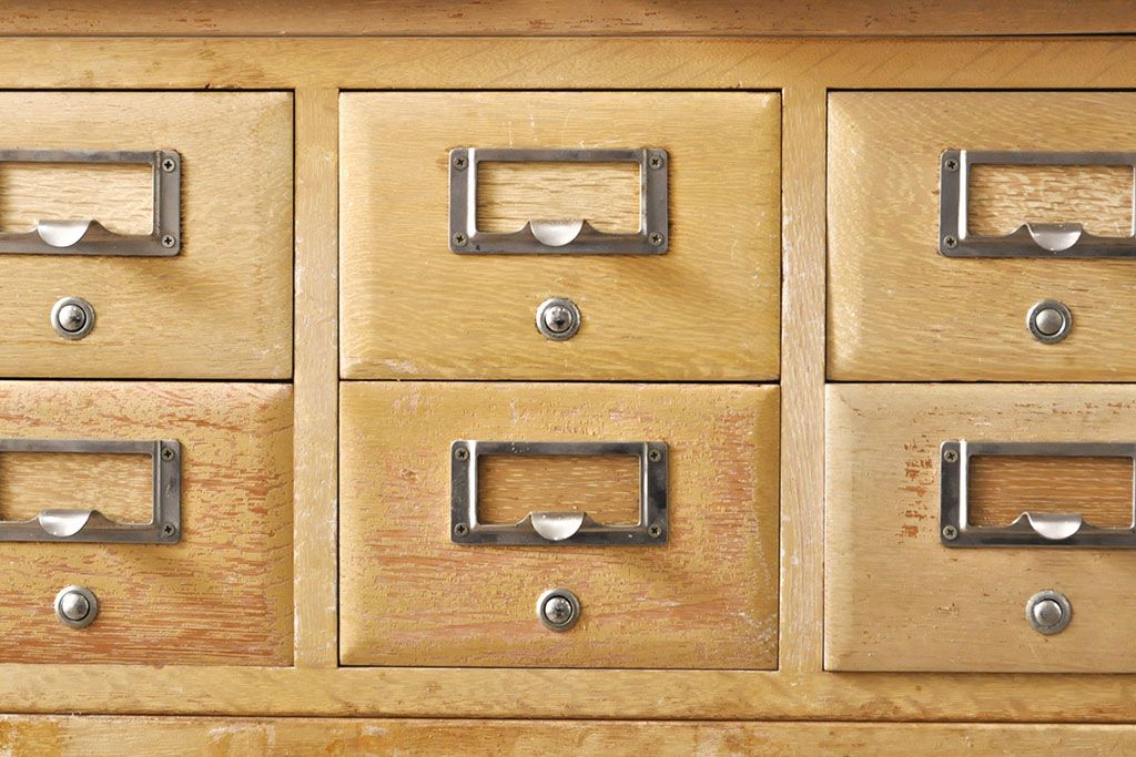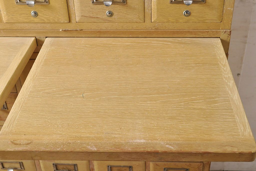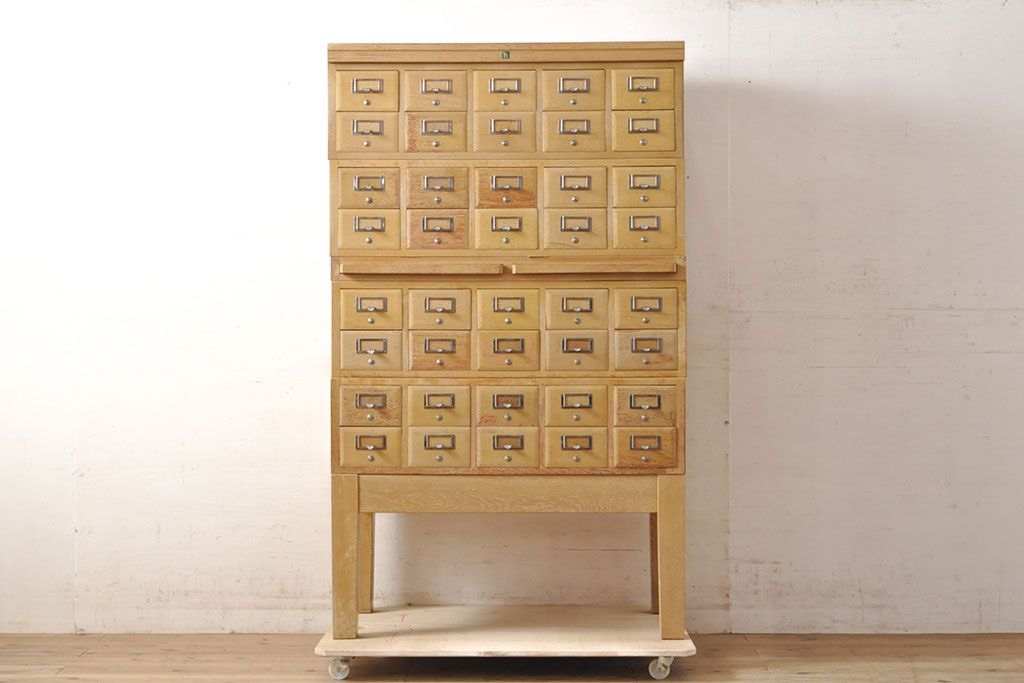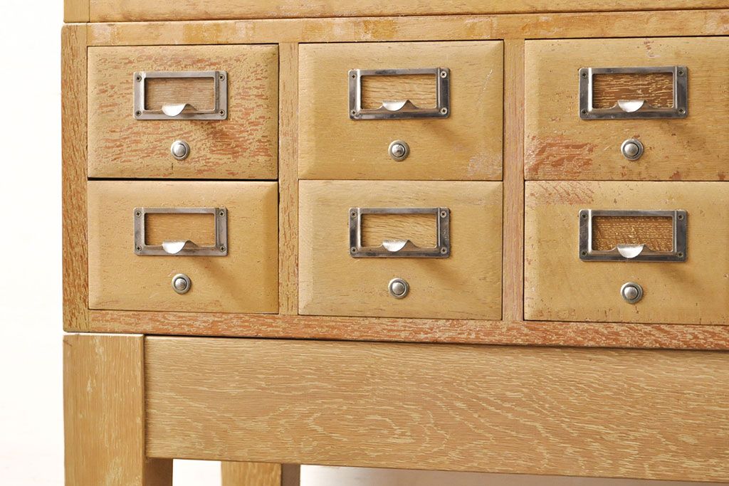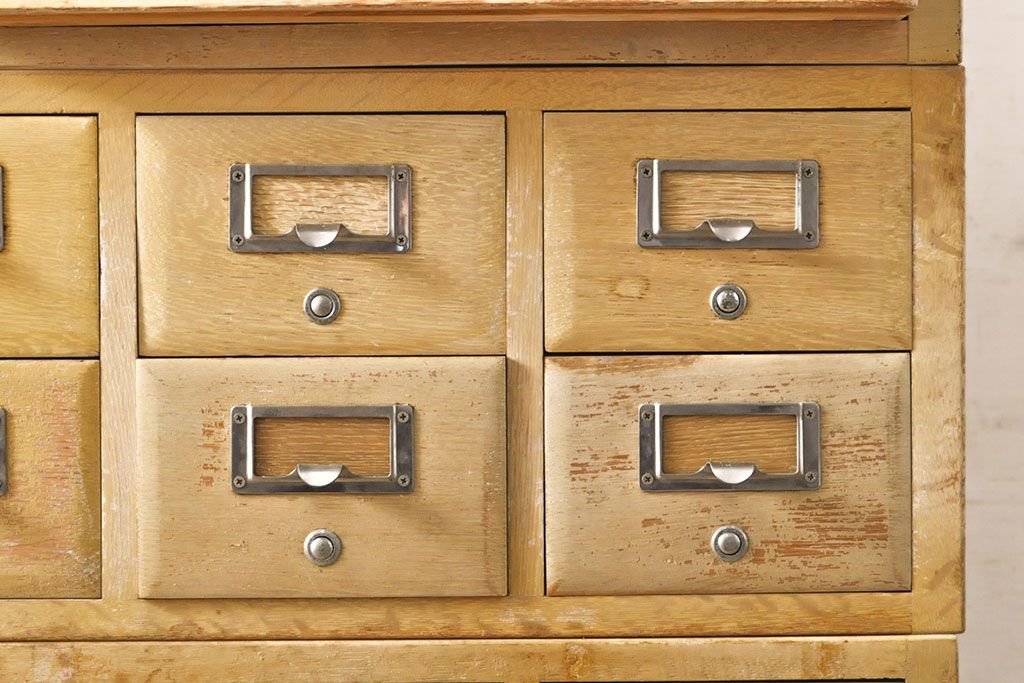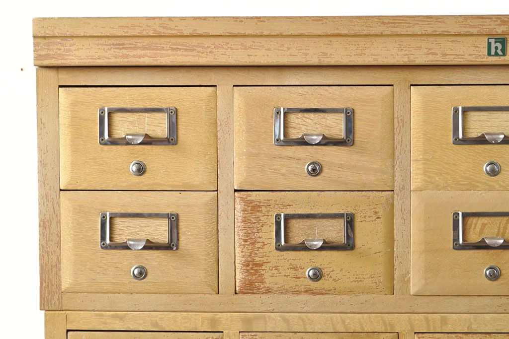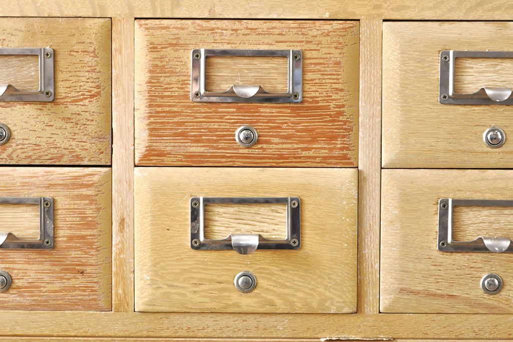 チェスト・引き出し > 【簡易リペア限定品】レトロ家具 昭和レトロ KIHARA 小物収納にうってつけのナラ材製ネームプレート付きカードケース(引き出し、チェスト、図書館、図書室)(R-050615)