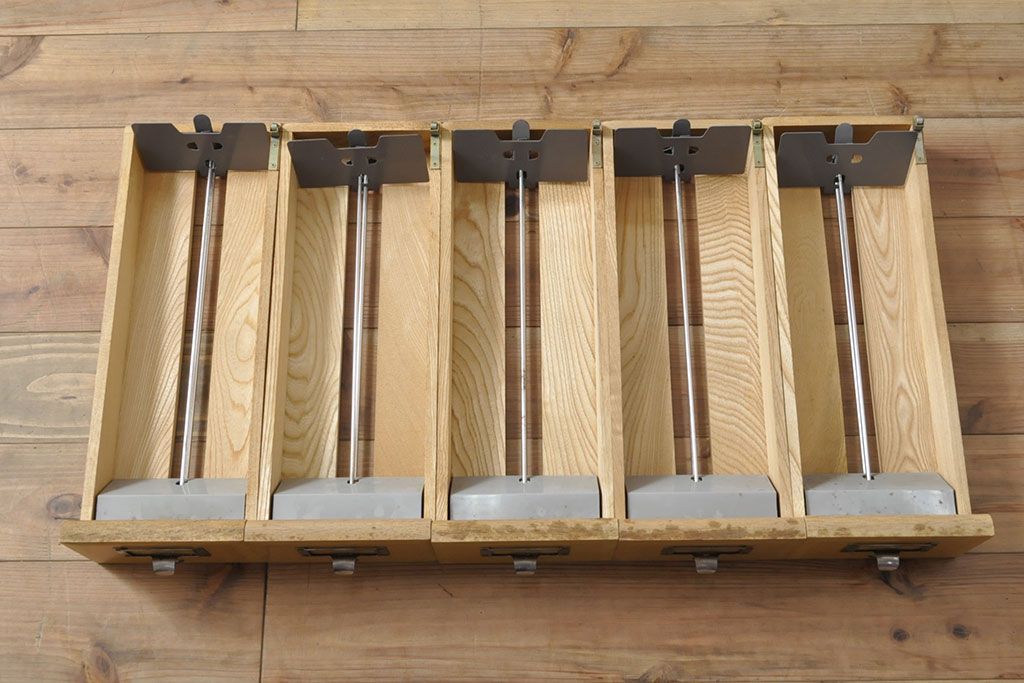 【簡易リペア限定品】レトロ家具 昭和レトロ KIHARA 小物収納にうってつけのナラ材製ネームプレート付きカードケース(引き出し、チェスト、図書館、図書室)(R-050615)