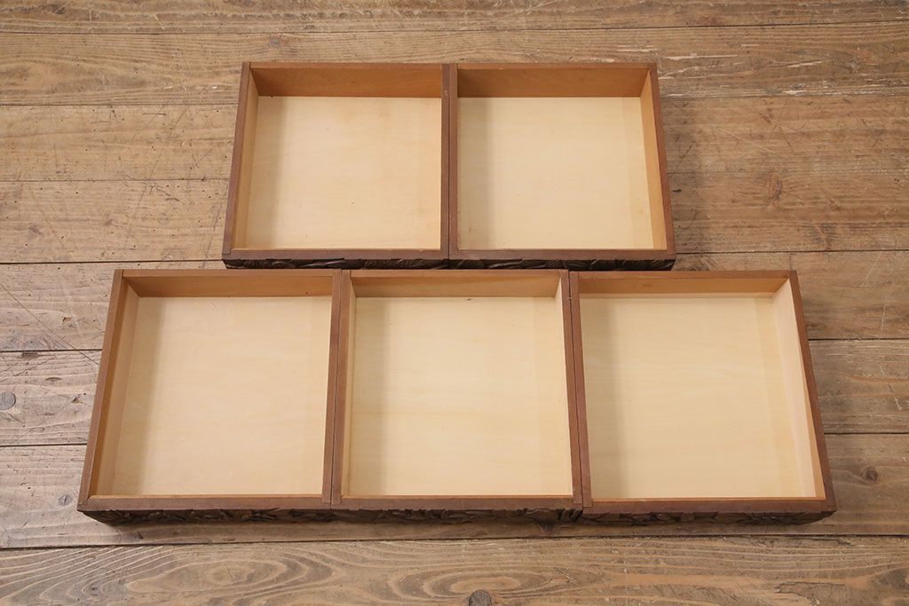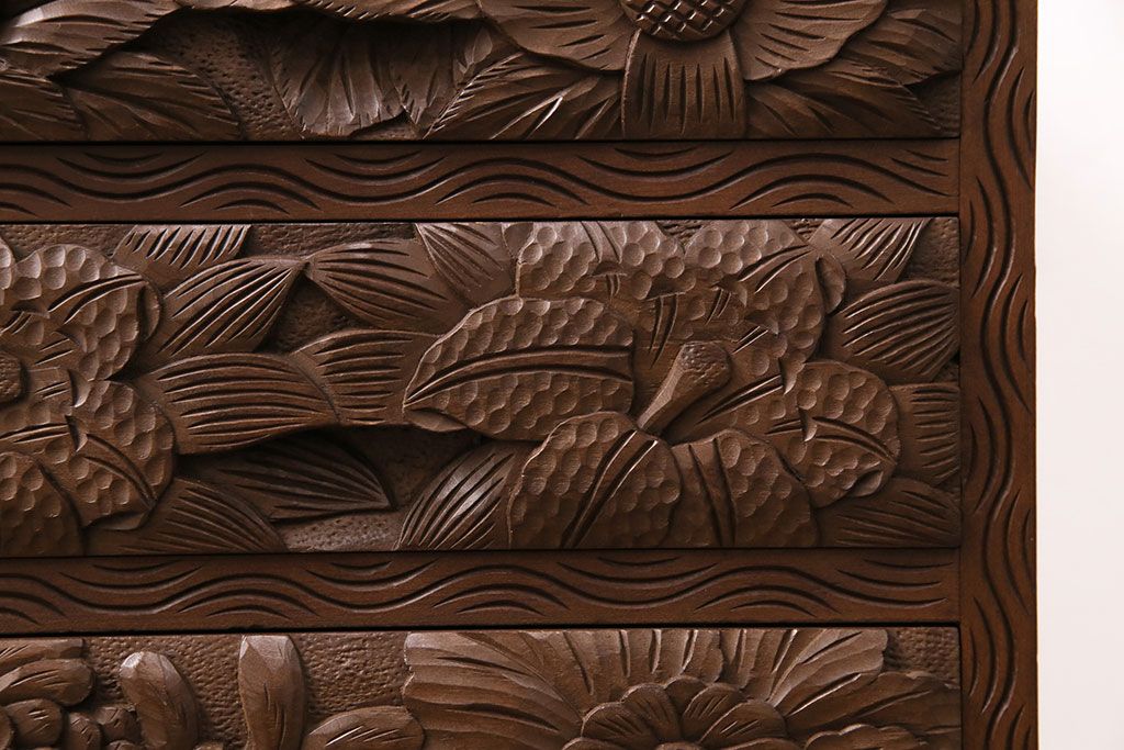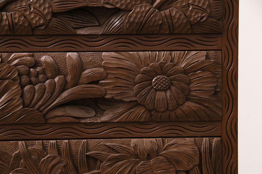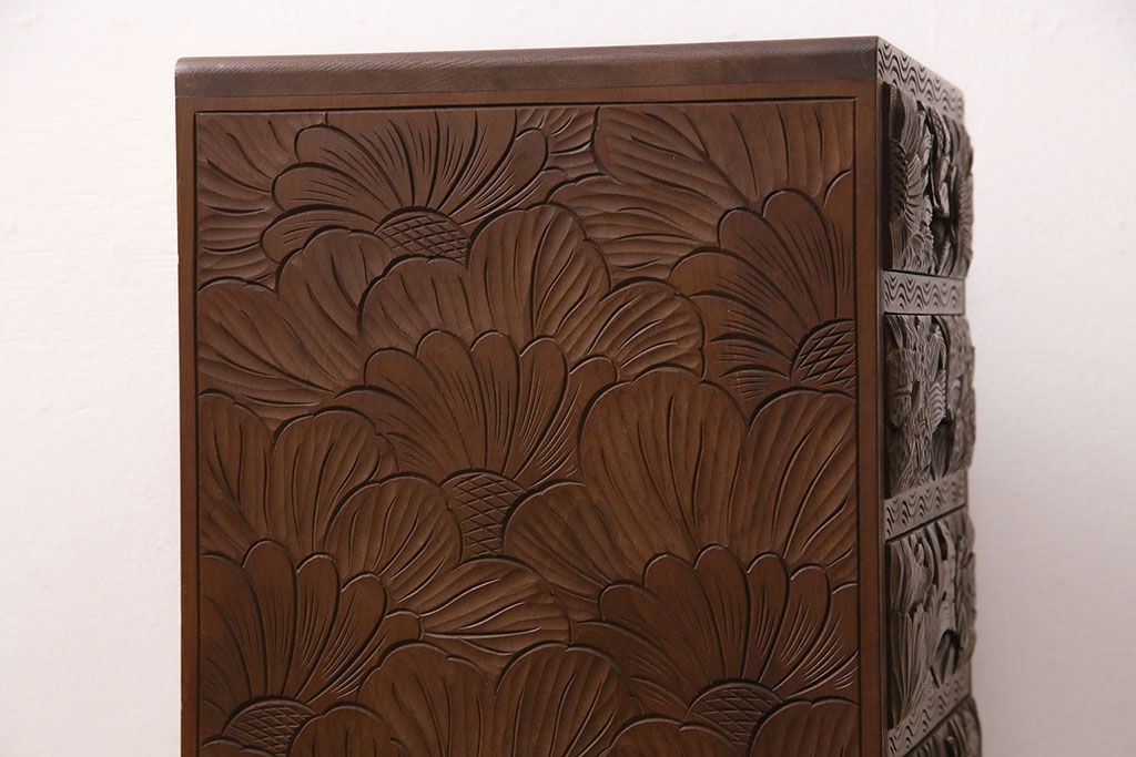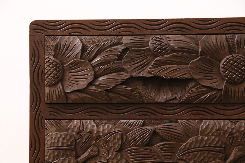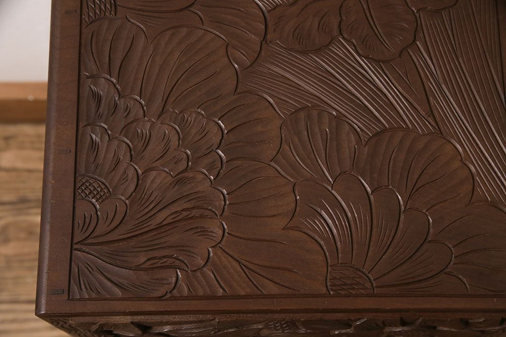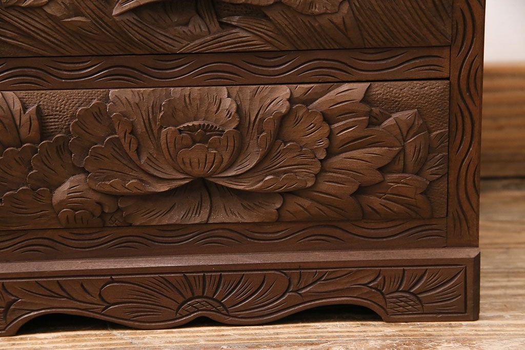 中古 伝統工芸 日光彫り 華やかな花の意匠が目を惹く小引き出し(小物収納、卓上収納)(R-050619)です。