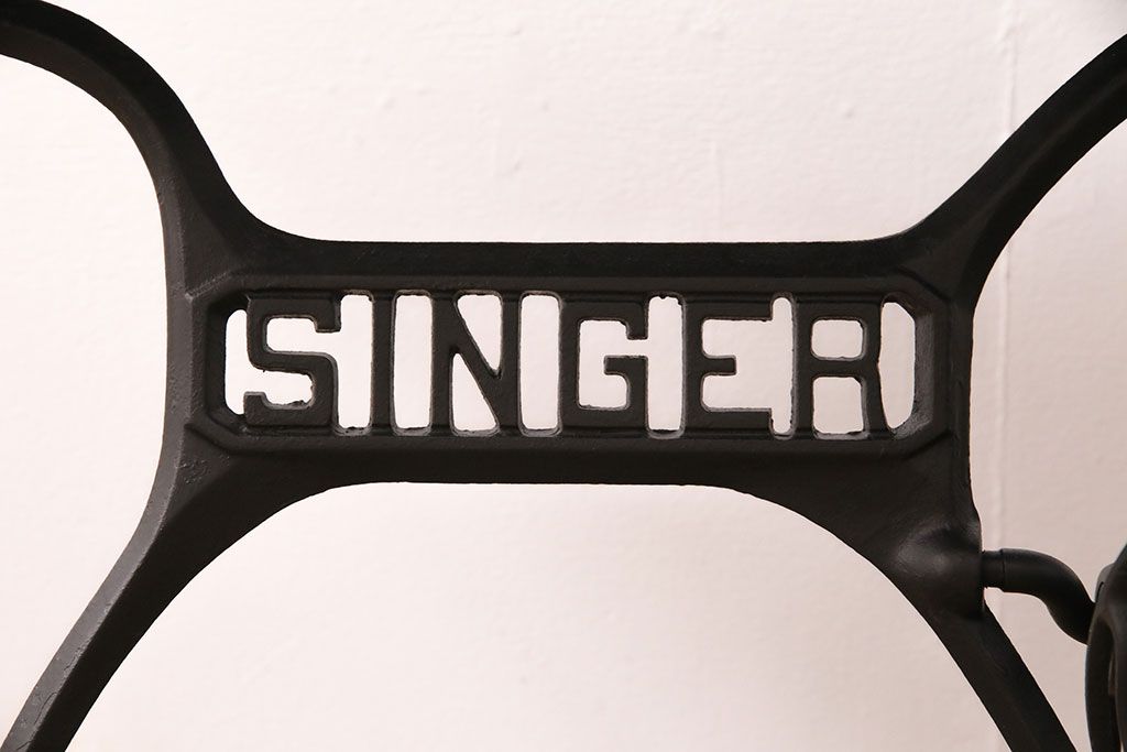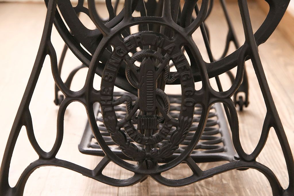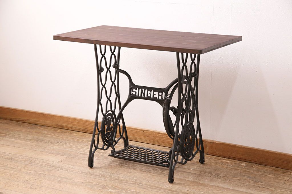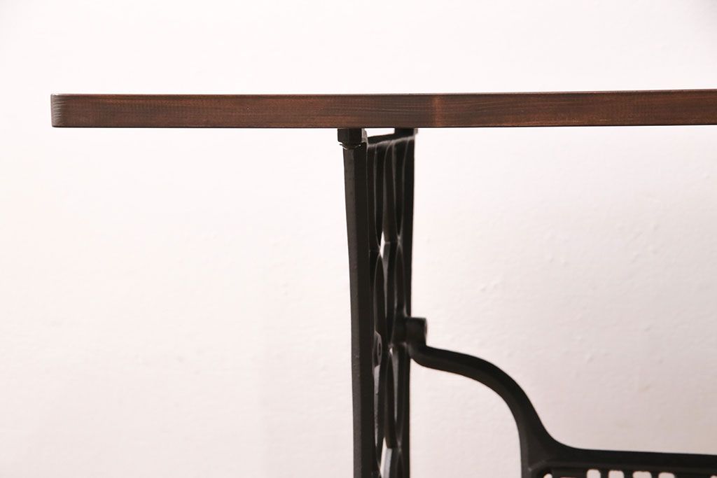 セミオーダー家具実績 > シンガーミシンの鉄脚をリペア&カスタム!天板を取り付け、ミシンテーブルにリメイク。天板は濃い茶色、鉄脚は黒色に着色し仕上げ。(ミシン台、カフェテーブル)