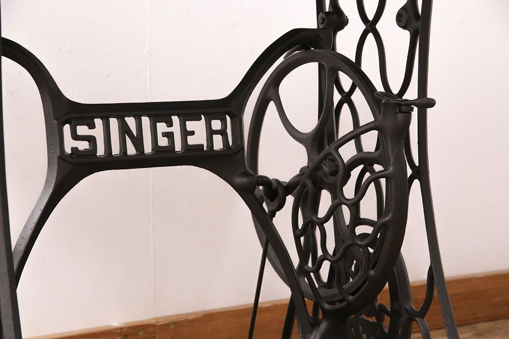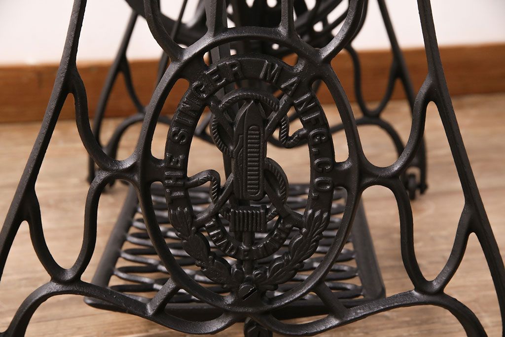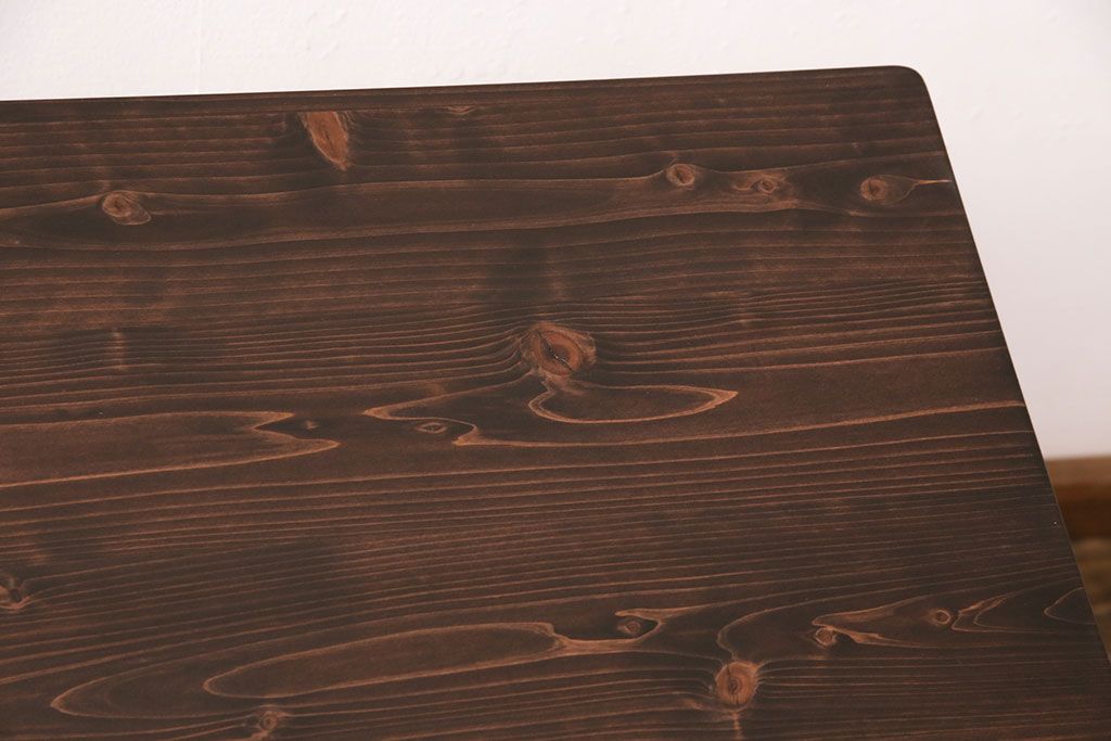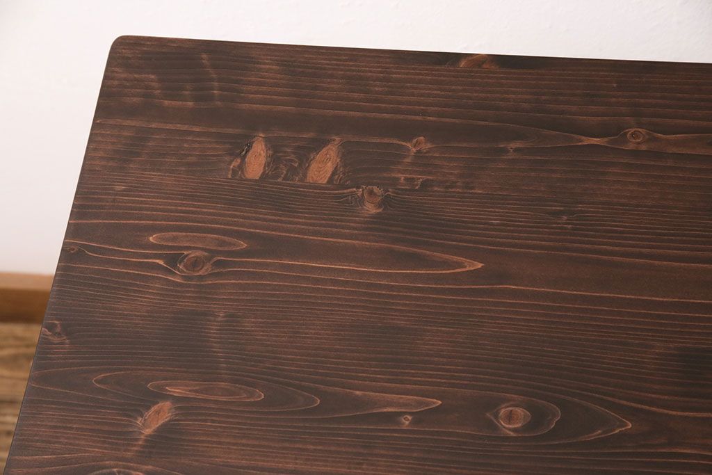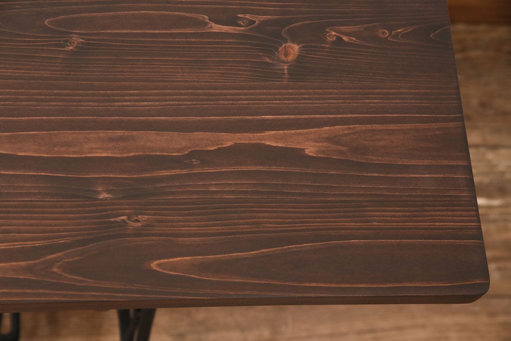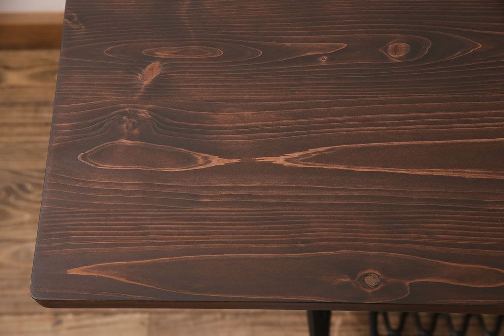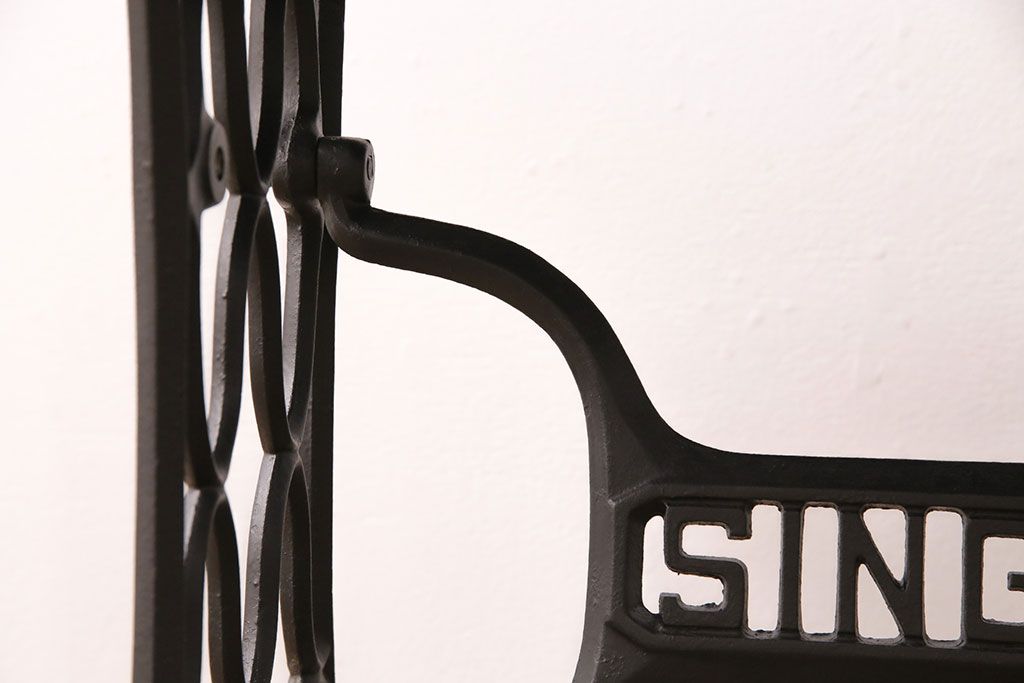 テーブル> 鉄脚テーブル > シンガーミシンの鉄脚をリペア&カスタム!天板を取り付け、ミシンテーブルにリメイク。天板は濃い茶色、鉄脚は黒色に着色し仕上げ。(ミシン台、カフェテーブル)