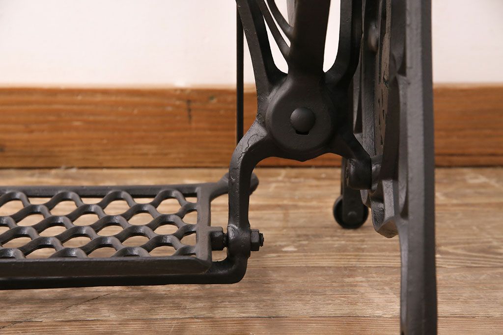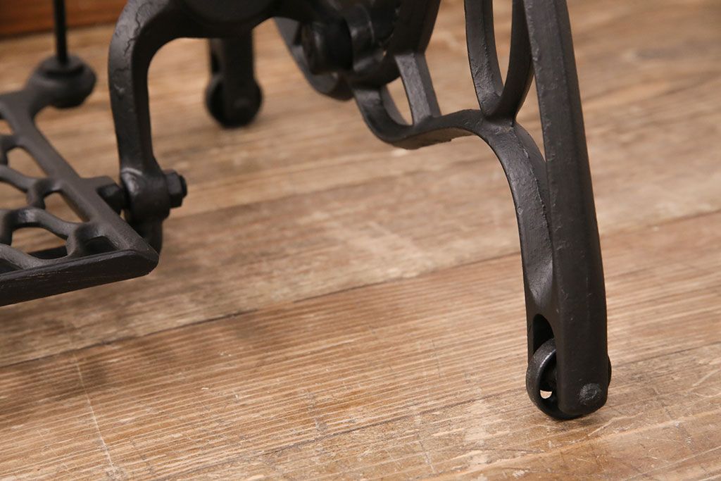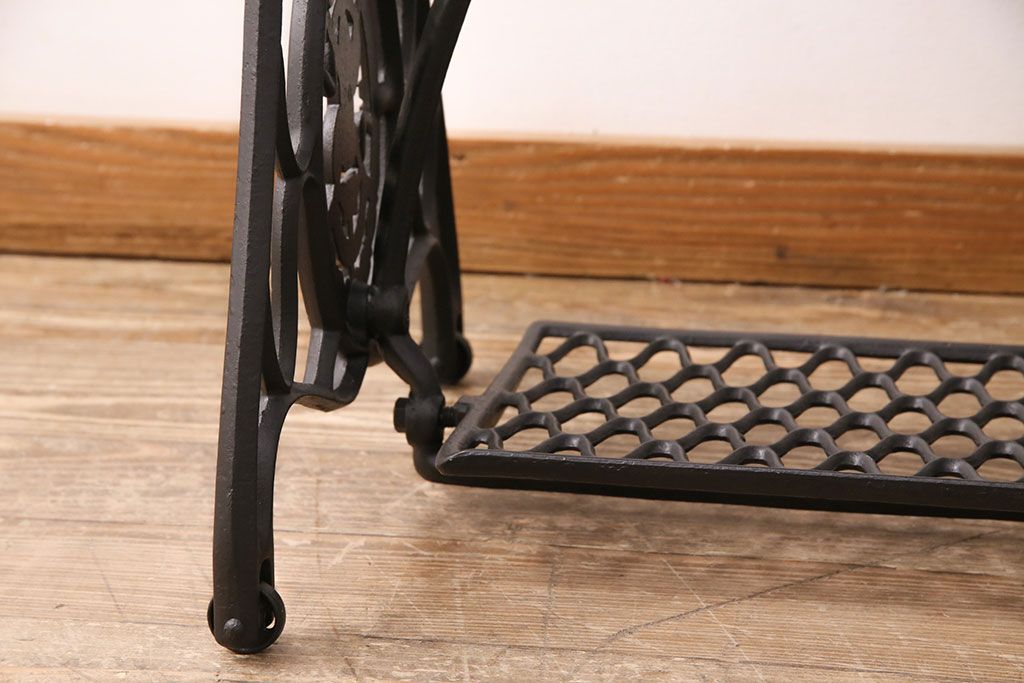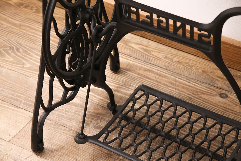シンガーミシンの鉄脚をリペア&カスタム!天板を取り付け、ミシンテーブルにリメイク。天板は濃い茶色、鉄脚は黒色に着色し仕上げ。(ミシン台、カフェテーブル)