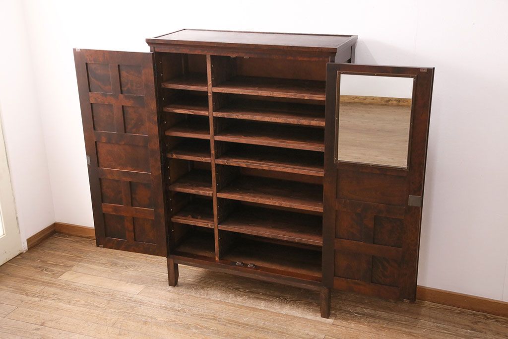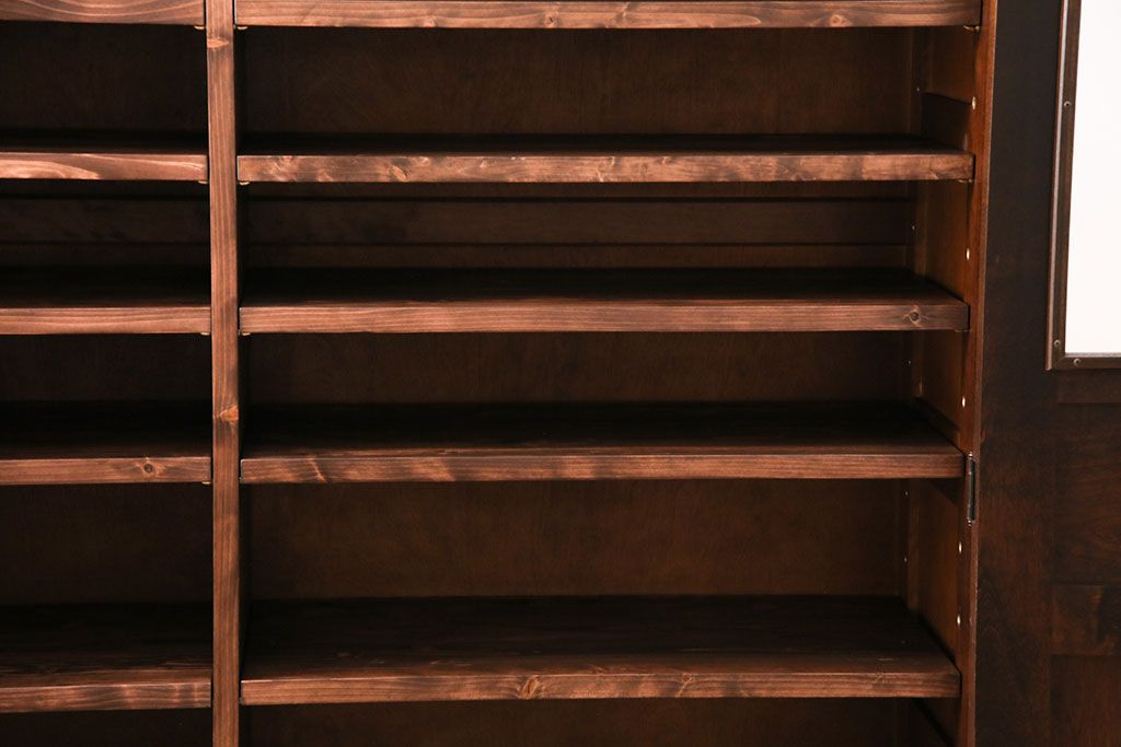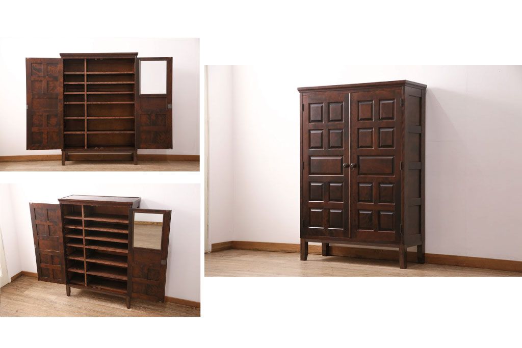 キャビネット・戸棚> 下駄箱 > 北海道民芸家具のワードローブをリペア&カスタム!可動式の棚板を設置して収納棚にリメイク。木製脚を取り付け。(キャビネット、戸棚、下駄箱)
