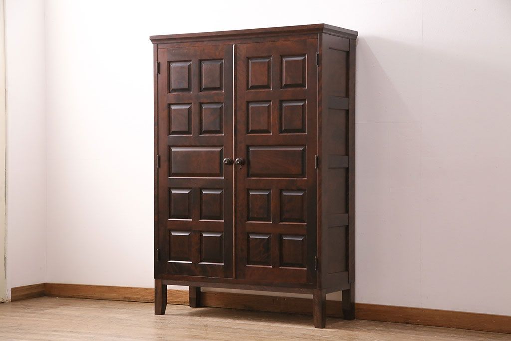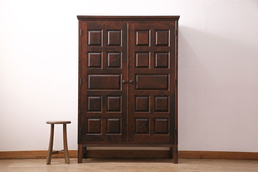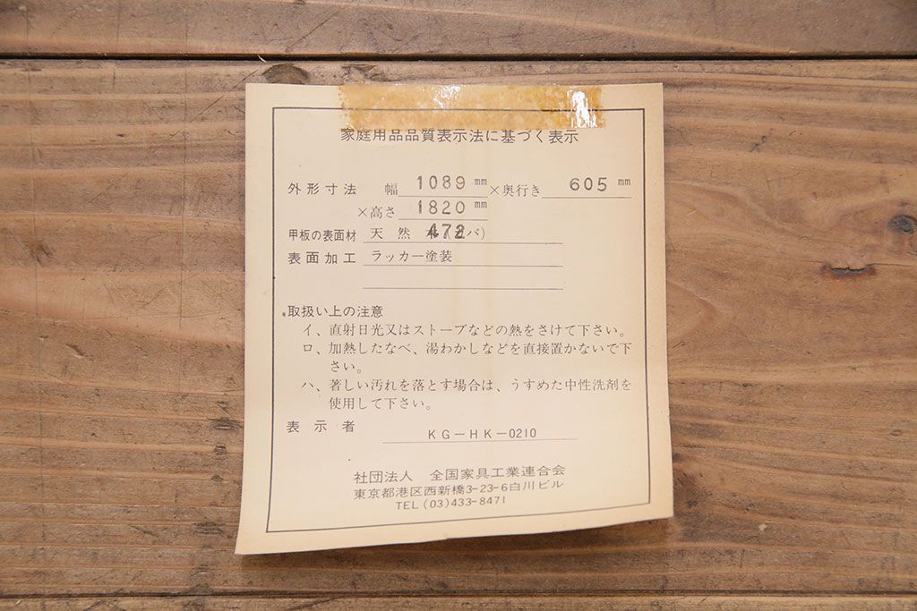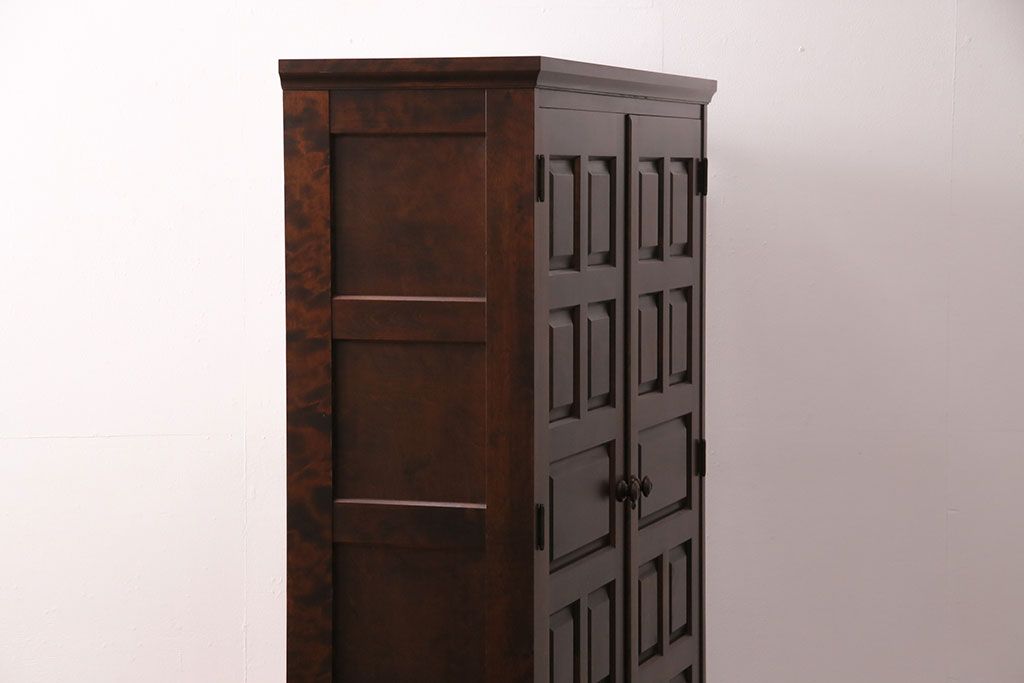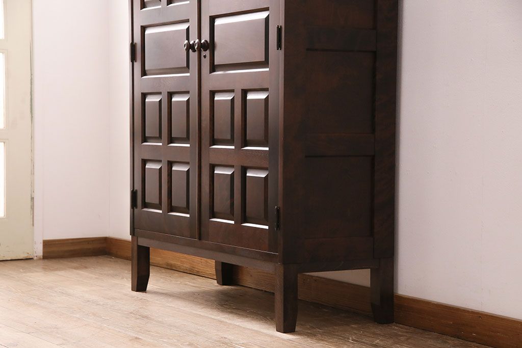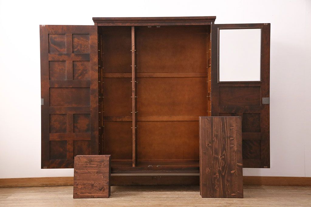 セミオーダー家具実績 > 北海道民芸家具のワードローブをリペア&カスタム!可動式の棚板を設置して収納棚にリメイク。木製脚を取り付け。(キャビネット、戸棚、下駄箱)