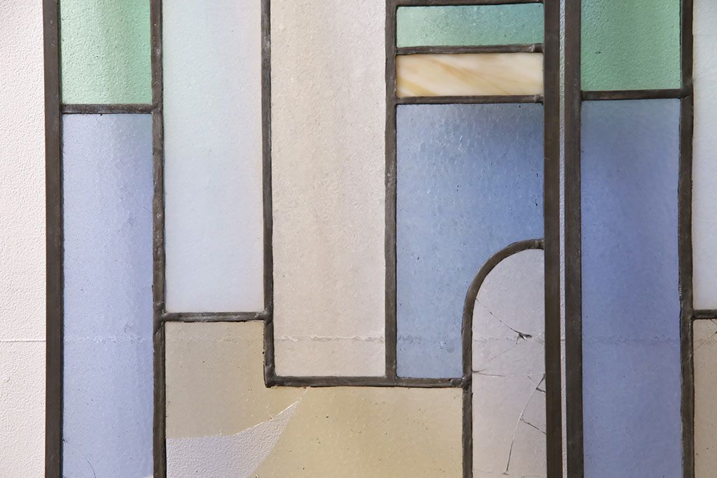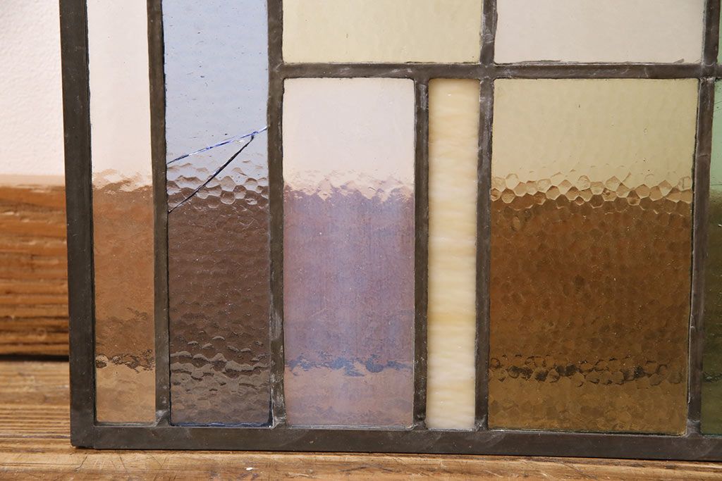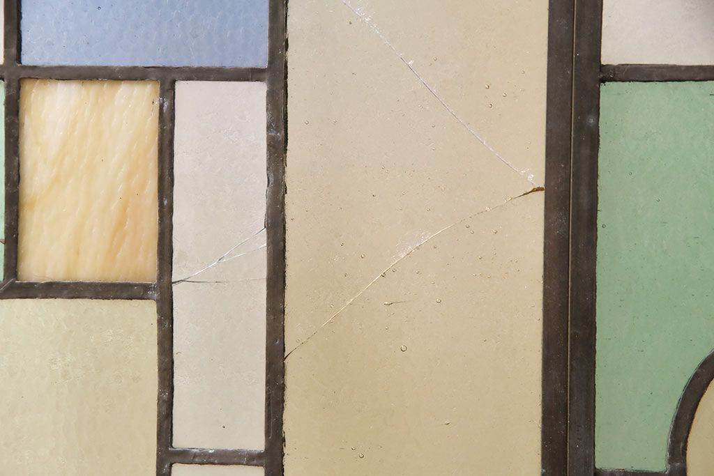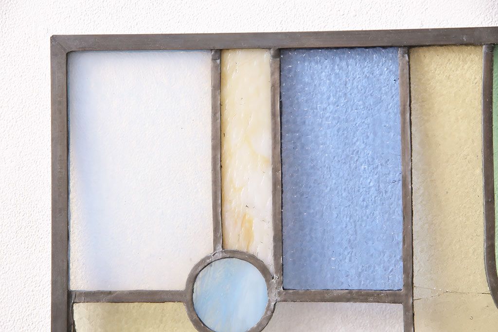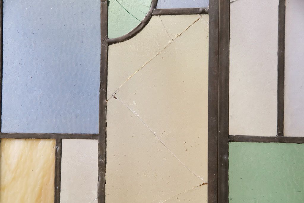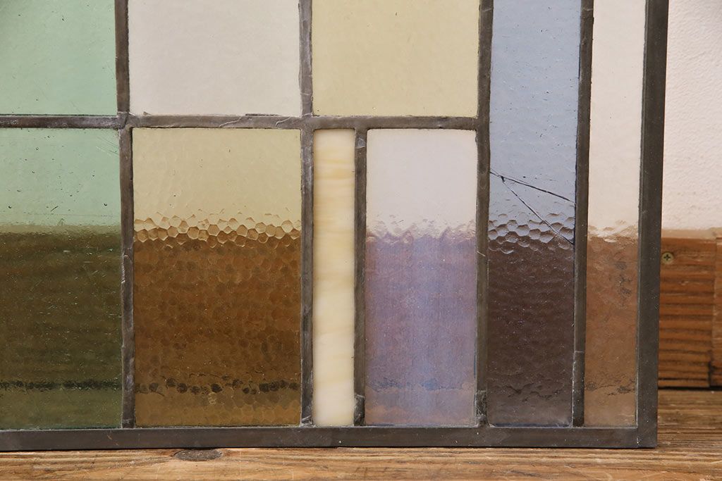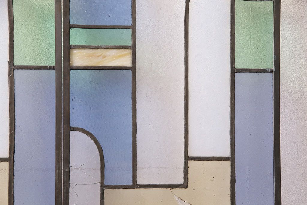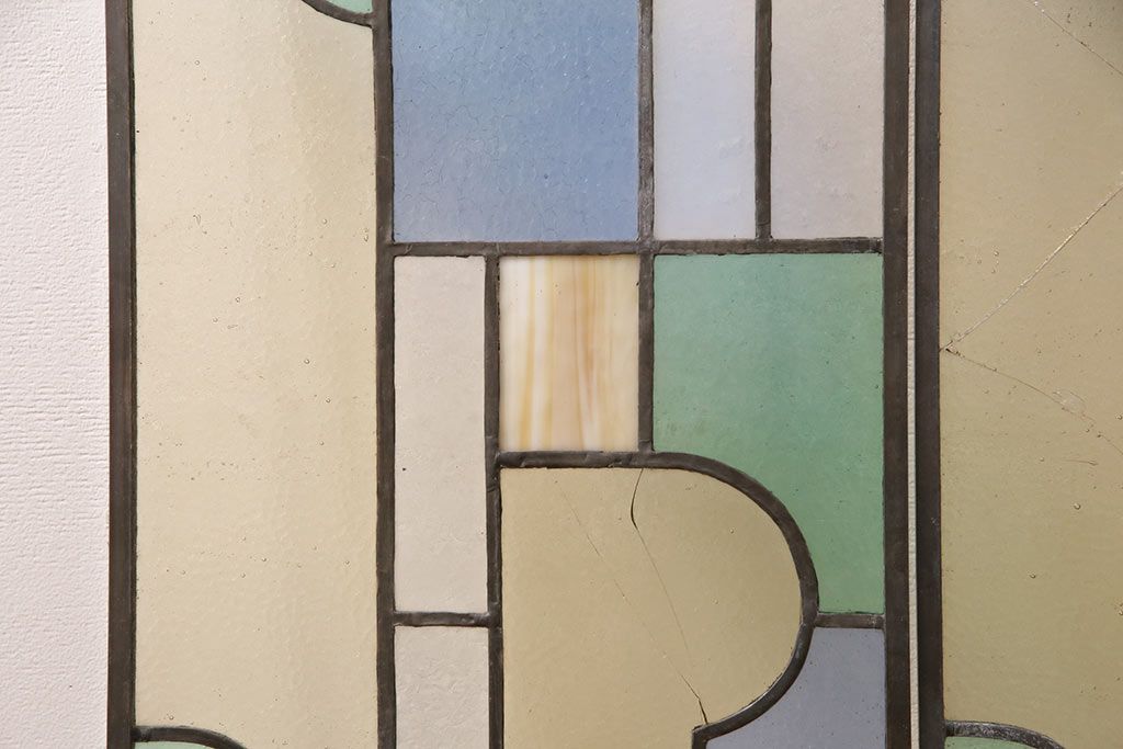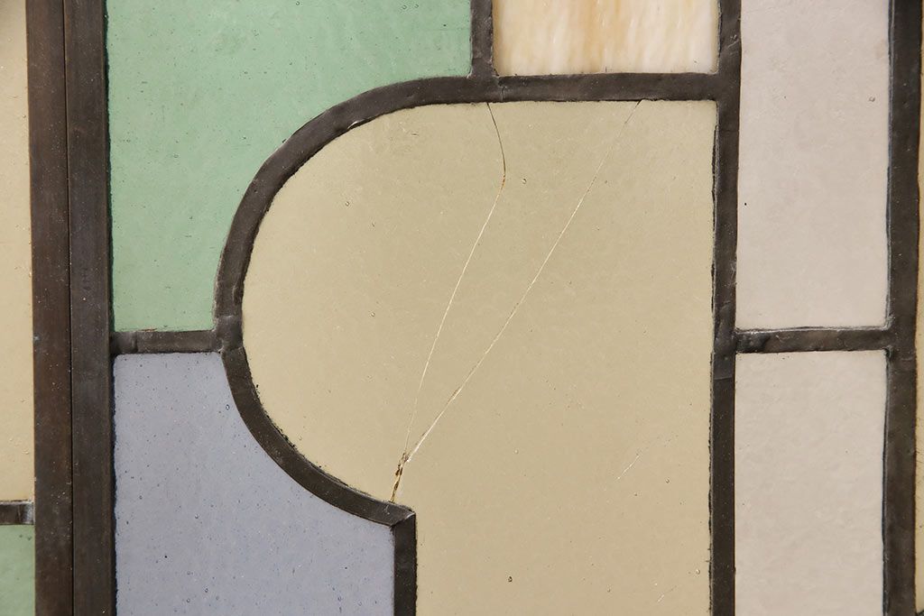アンティーク建具 日本製 昭和初期 希少!木枠を作成して仕上げる、レトロなデザインが魅力のステンドグラス2枚セット(ドア、明り取り)(R-049608)