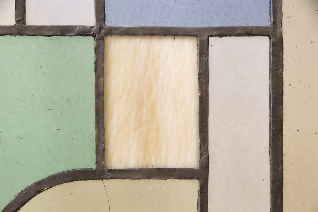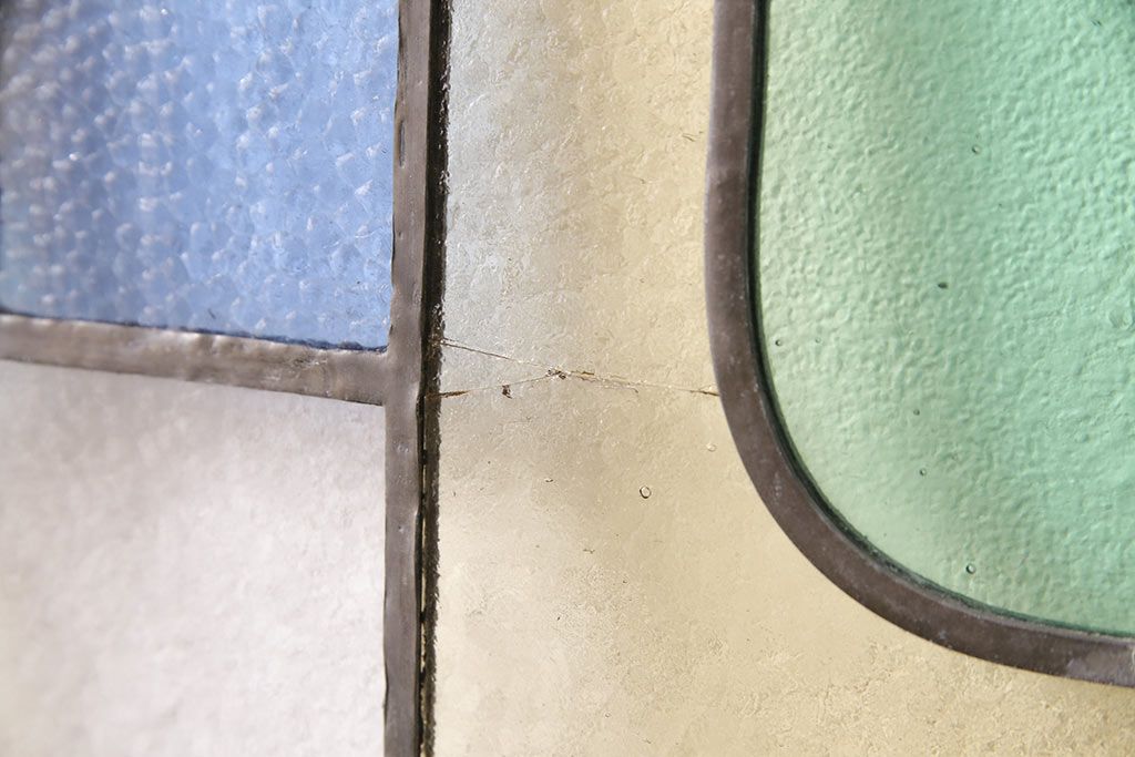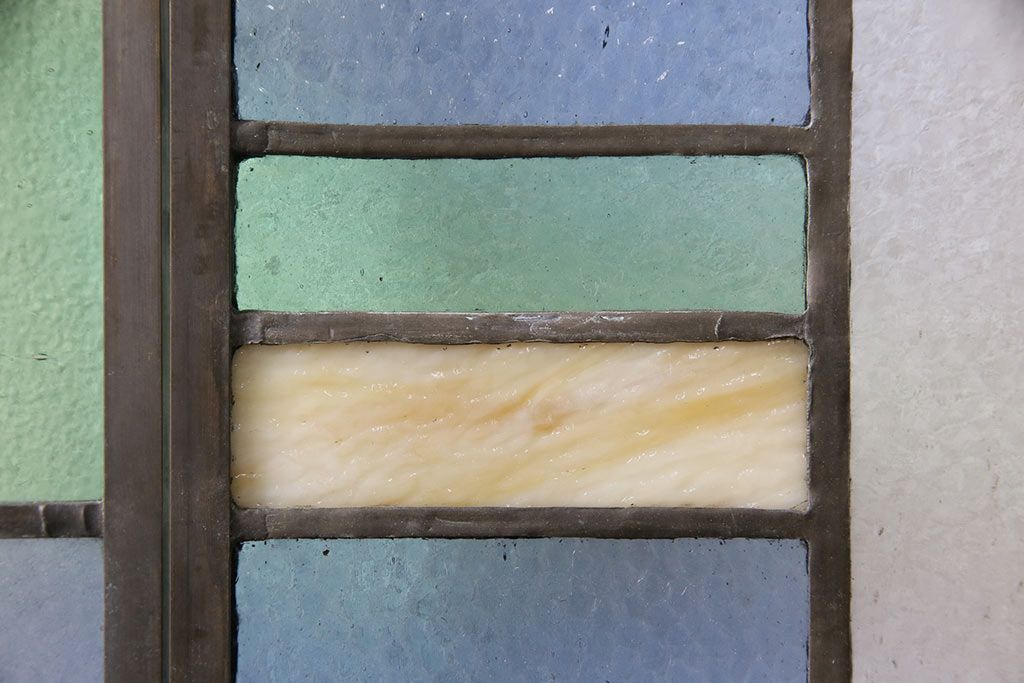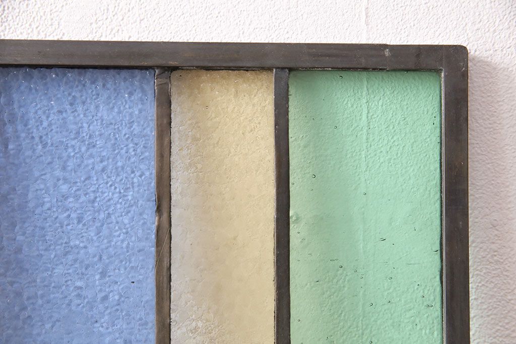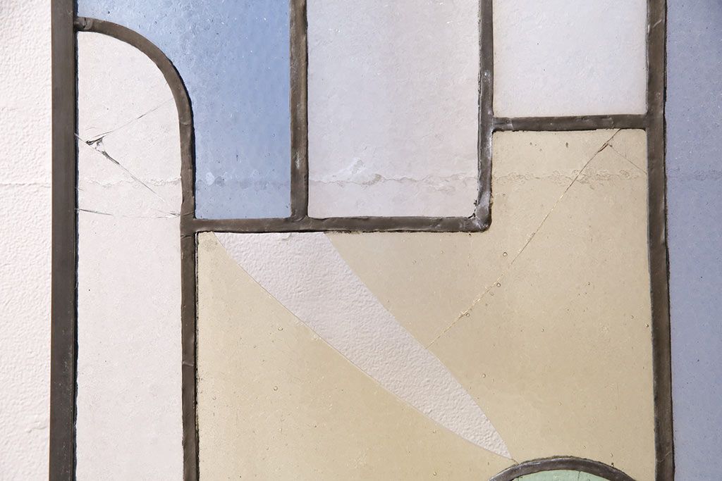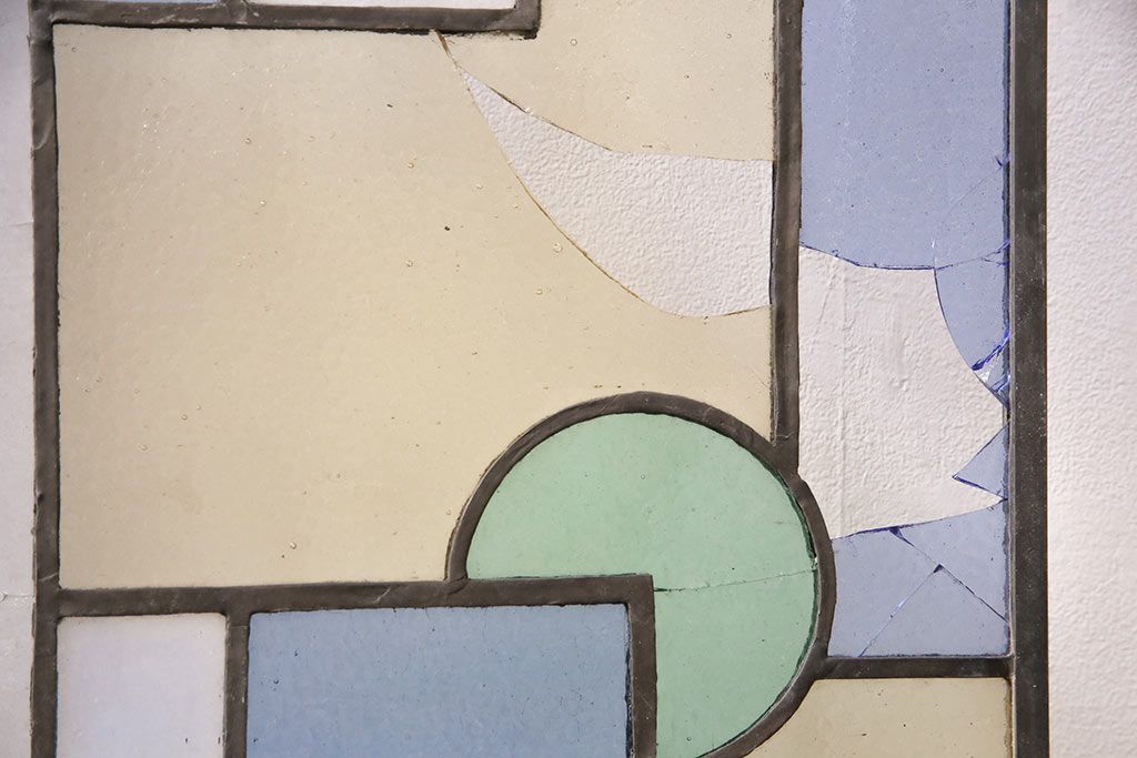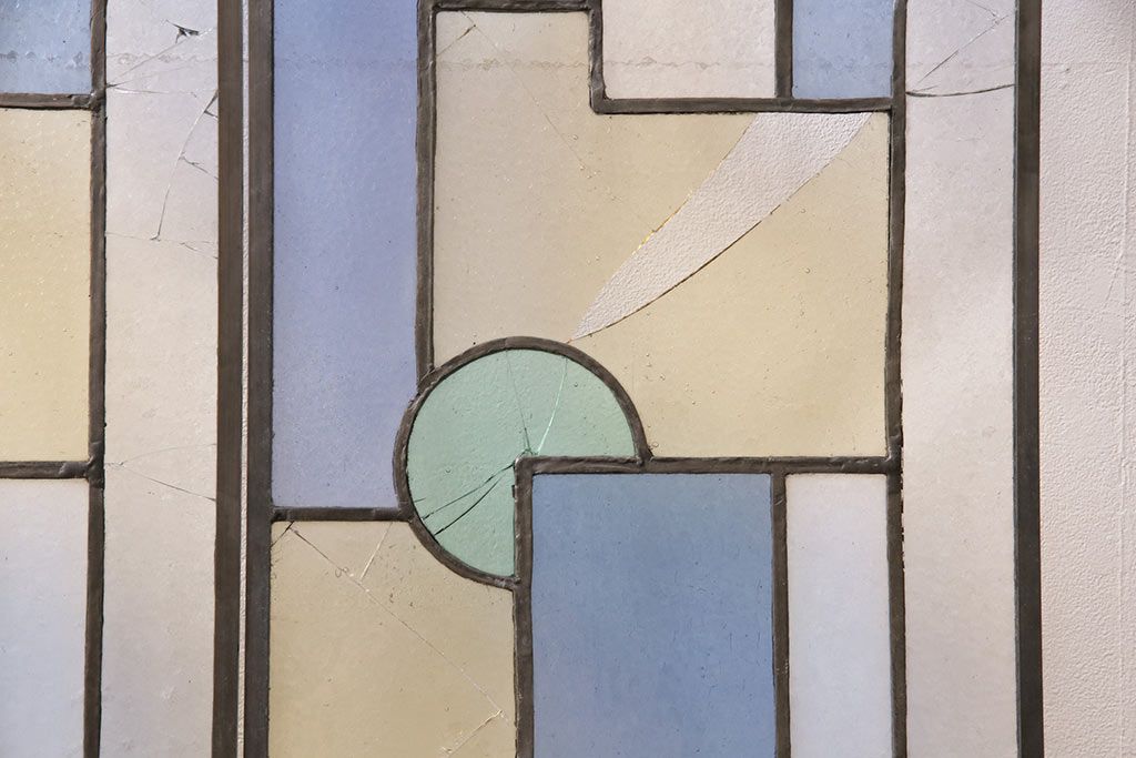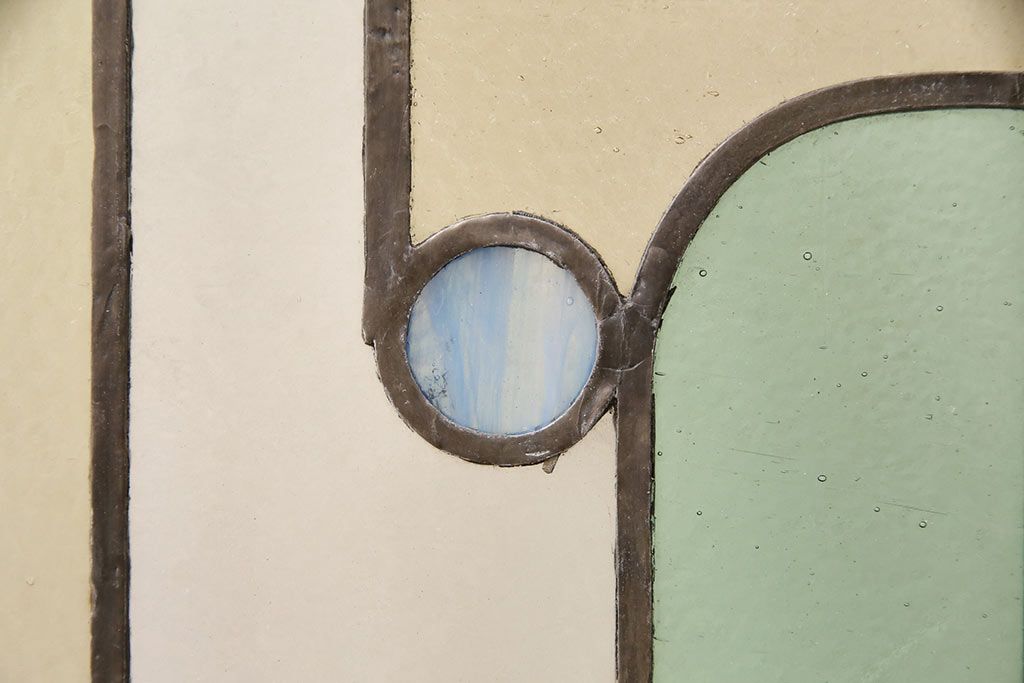 アンティーク建具 日本製 昭和初期 希少!木枠を作成して仕上げる、レトロなデザインが魅力のステンドグラス2枚セット(ドア、明り取り)(R-049608)