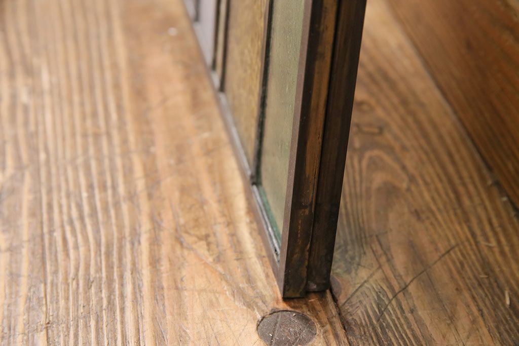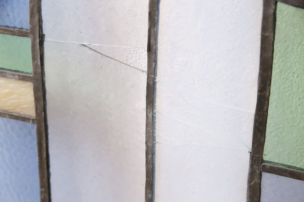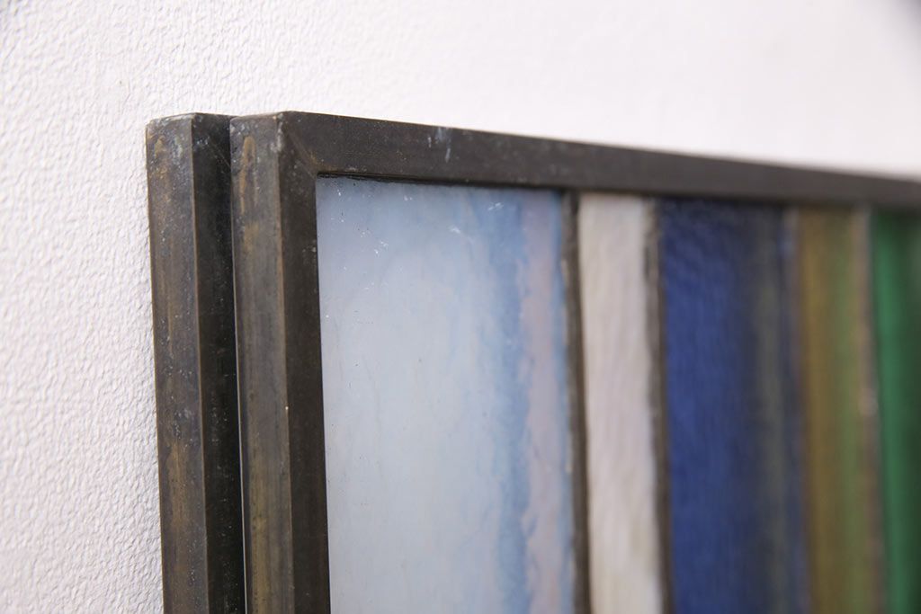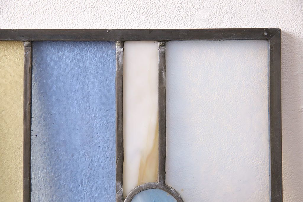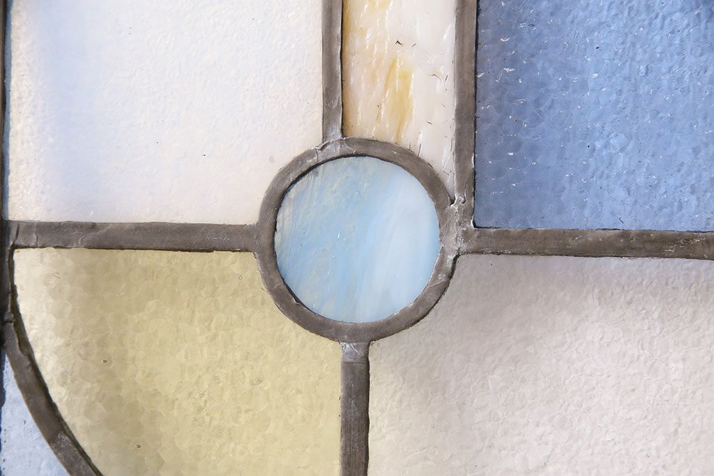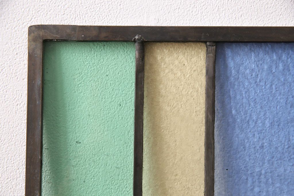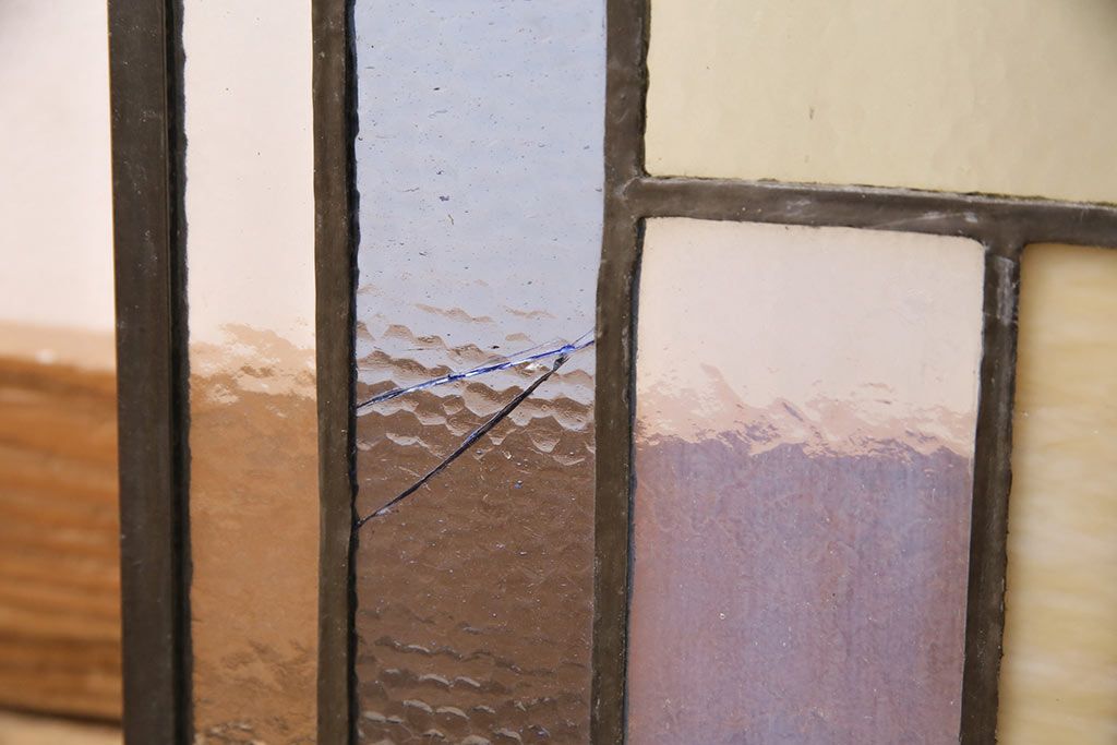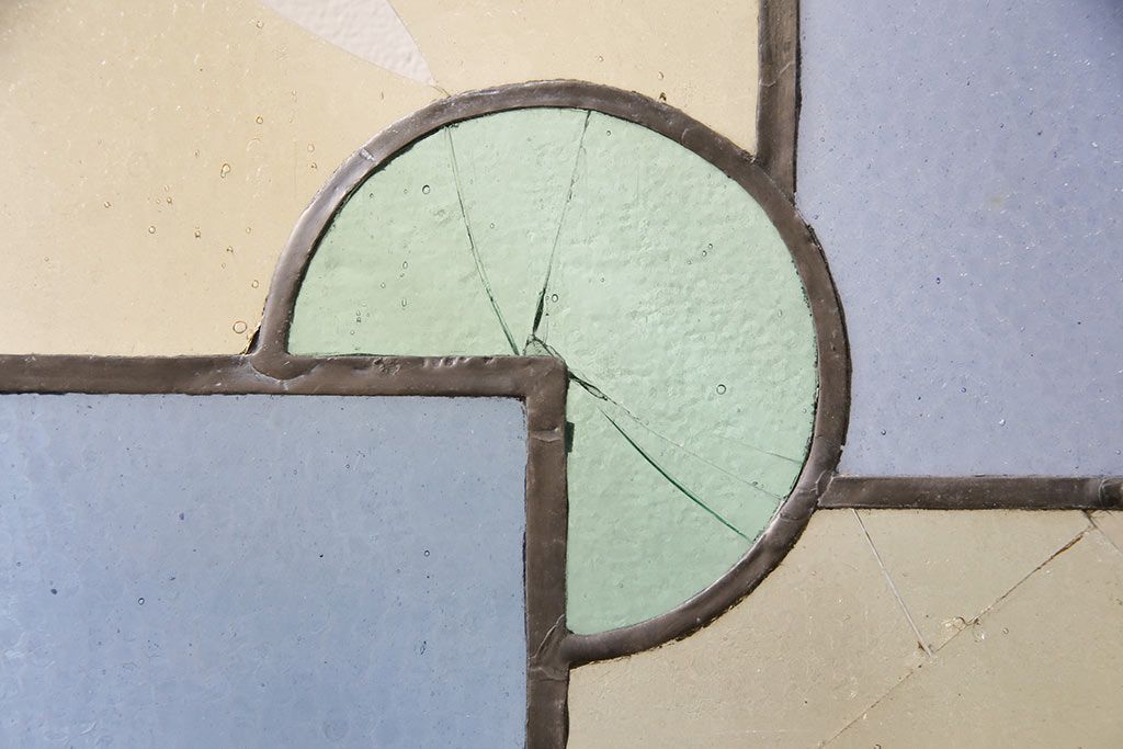 アンティーク建具 日本製 昭和初期 希少!木枠を作成して仕上げる、レトロなデザインが魅力のステンドグラス2枚セット(ドア、明り取り)(R-049608)