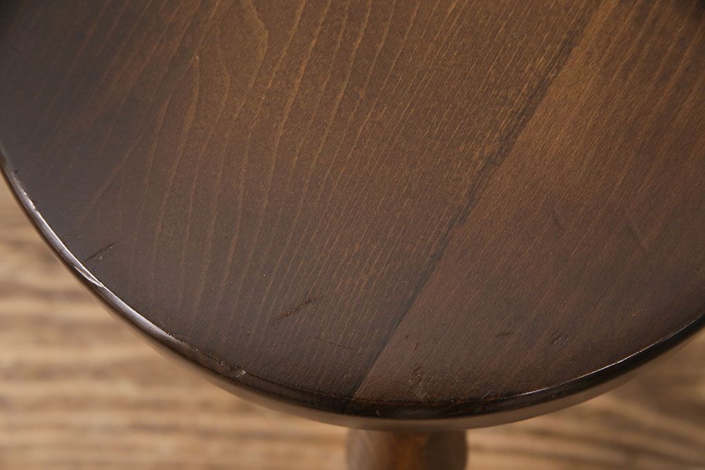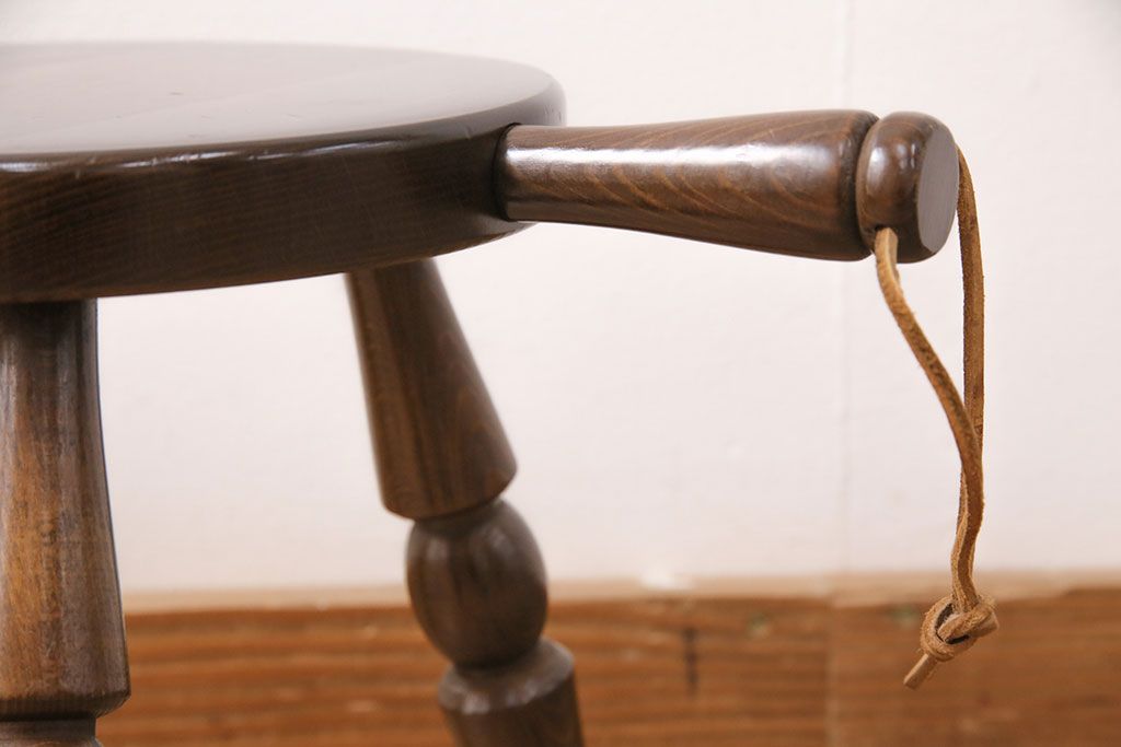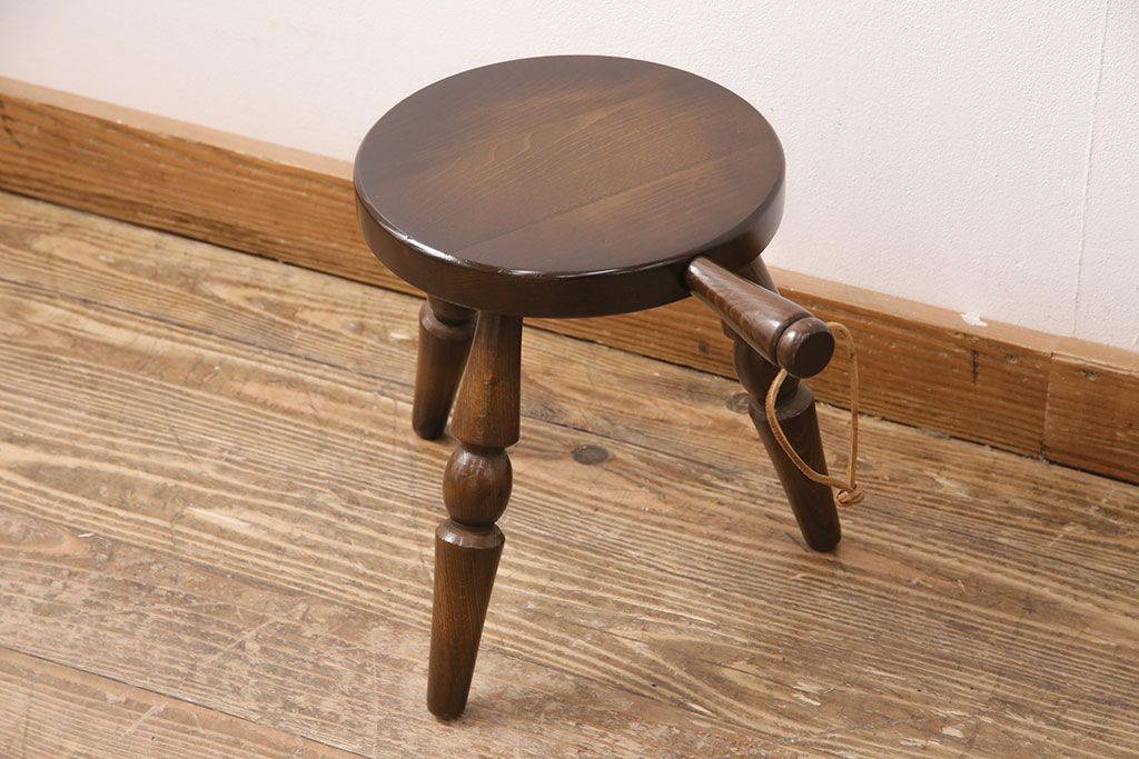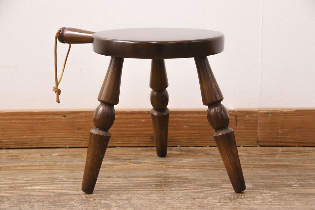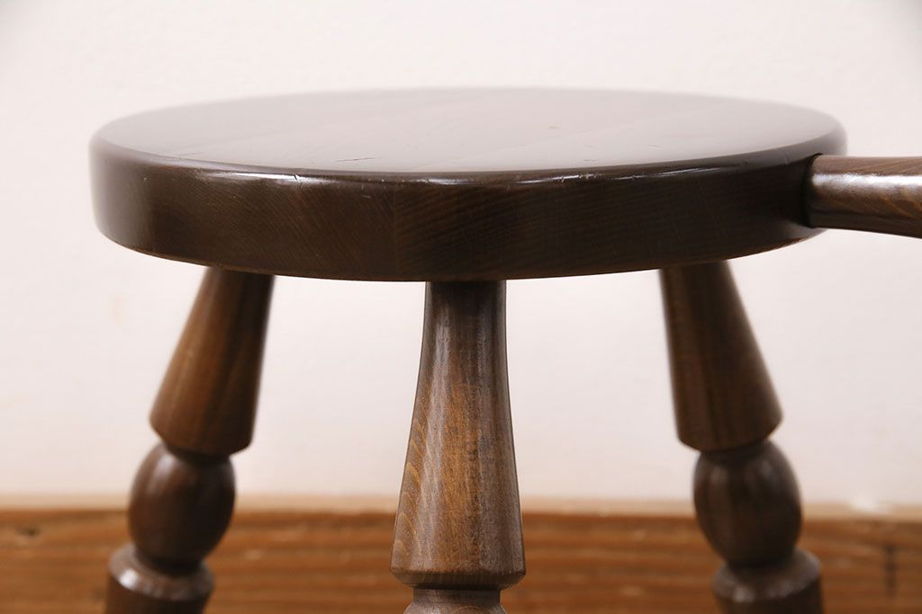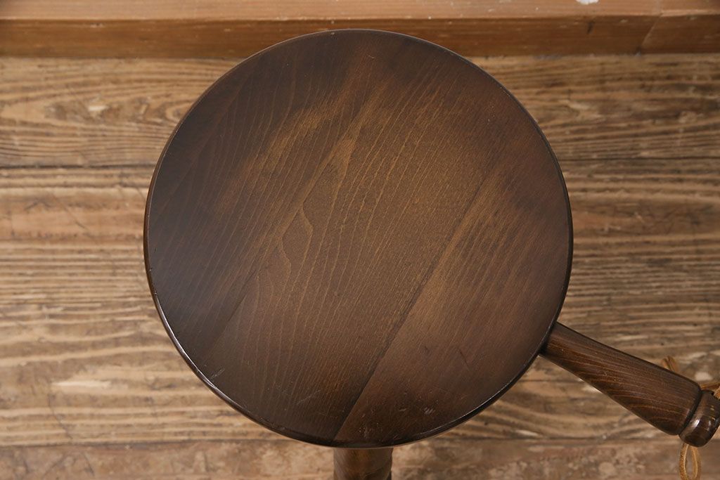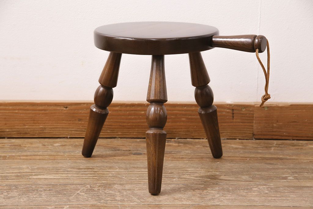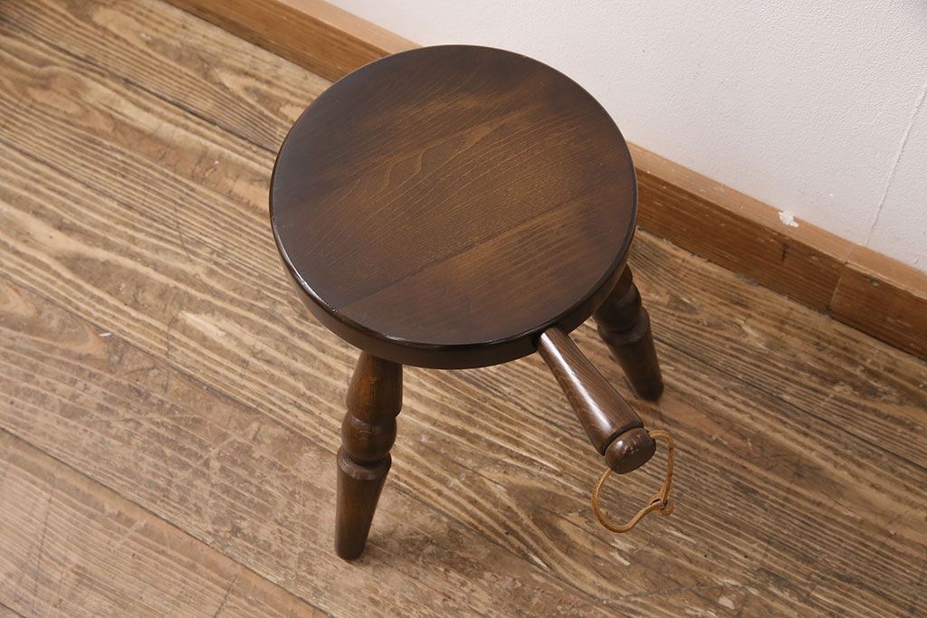 ビンテージ家具 飛騨産業 キツツキ 持ち手がついたデザインが目を引くミルクスツール(花台、板座チェア、丸椅子、ヴィンテージ)(R-050620)