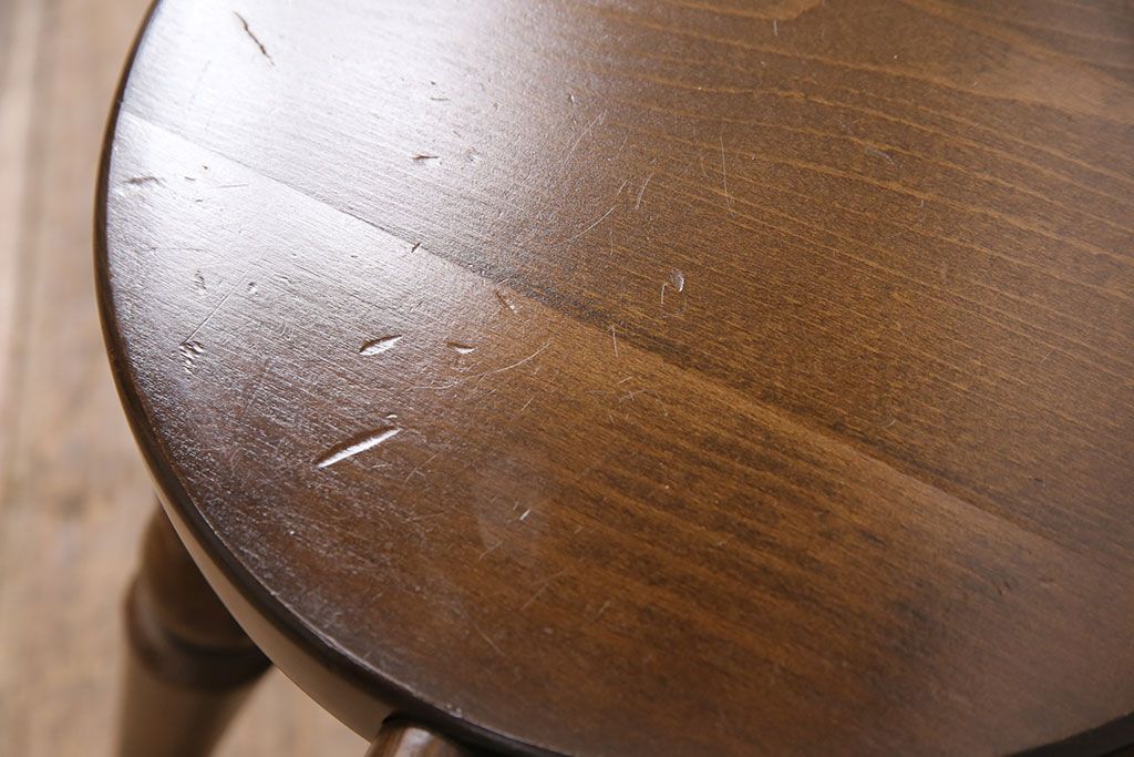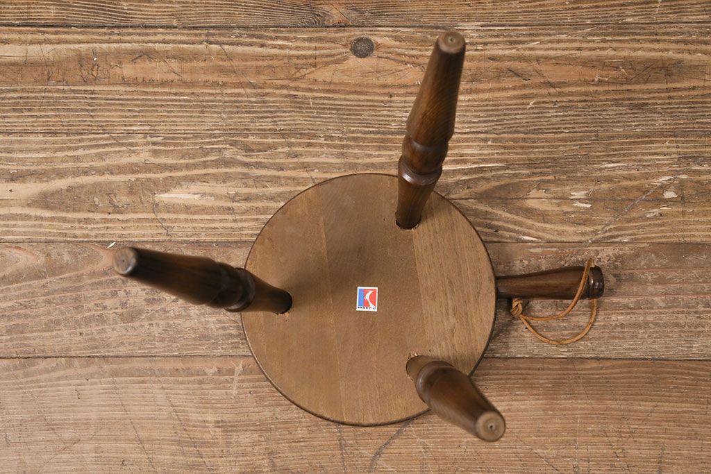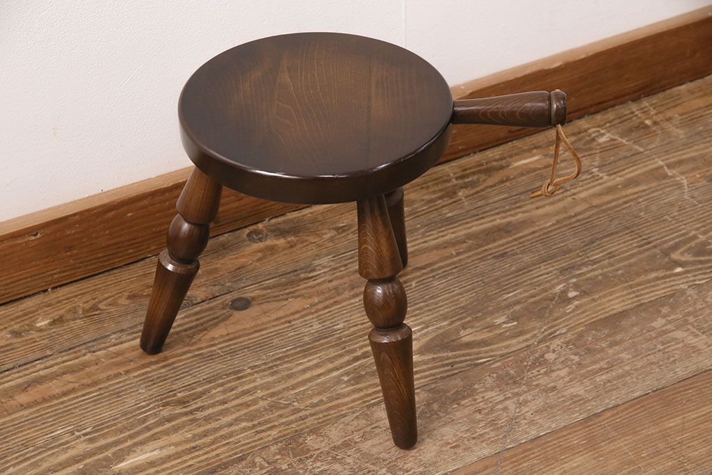 椅子・ベンチ> スツール > ビンテージ家具 飛騨産業 キツツキ 持ち手がついたデザインが目を引くミルクスツール(花台、板座チェア、丸椅子、ヴィンテージ)(R-050620)