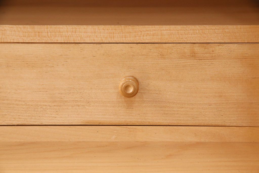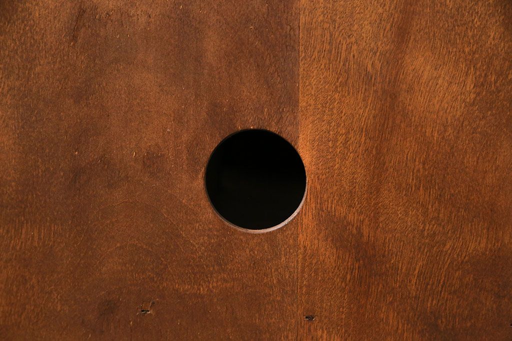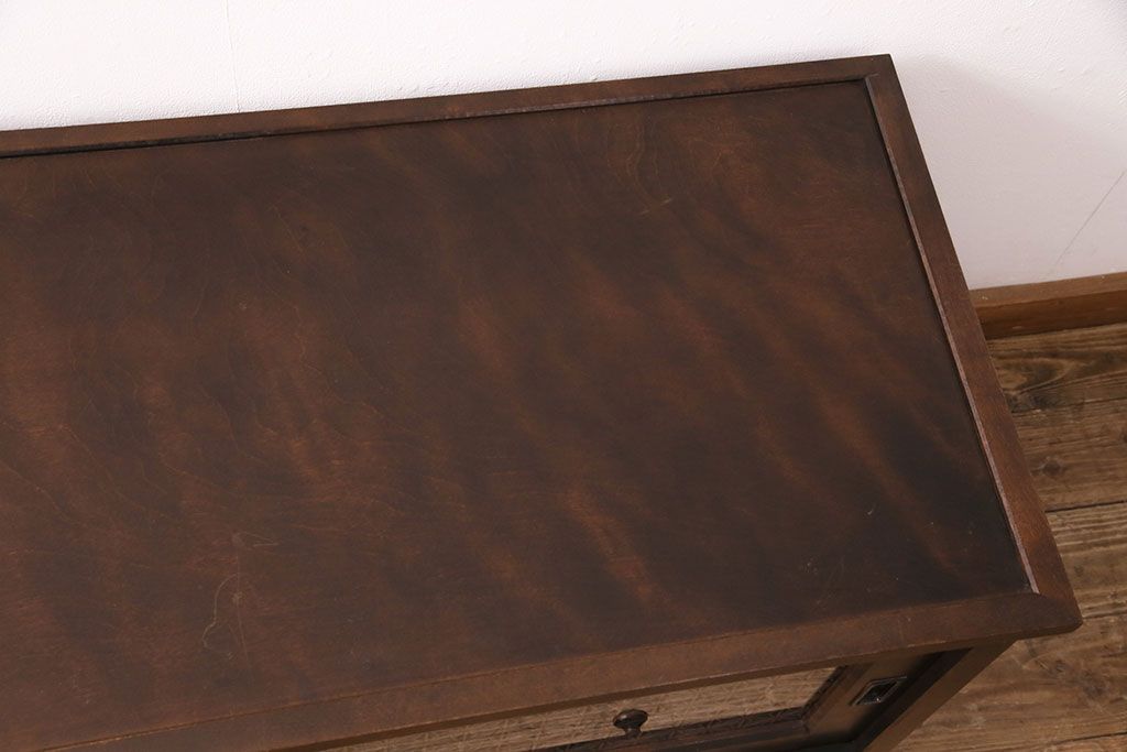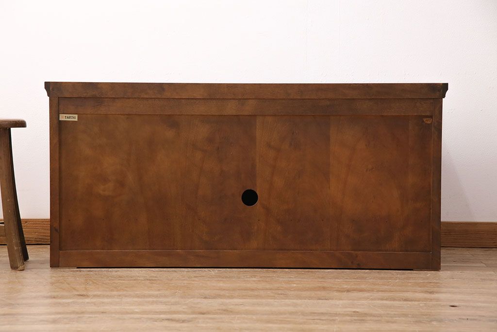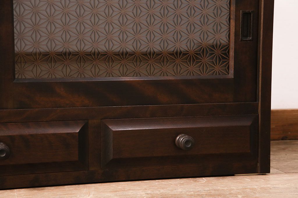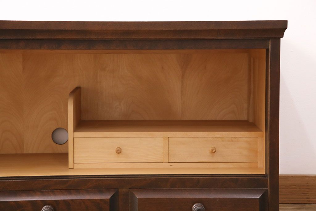 キャビネット・戸棚> テレビ台・ローボード > 北海道民芸家具のローボードをリペア&カスタム!建具を板戸からレーザー組子入りガラス戸に変更。背面穴開け加工。現状の色味に合わせて着色し仕上げ。(テレビ台、収納棚、戸棚)