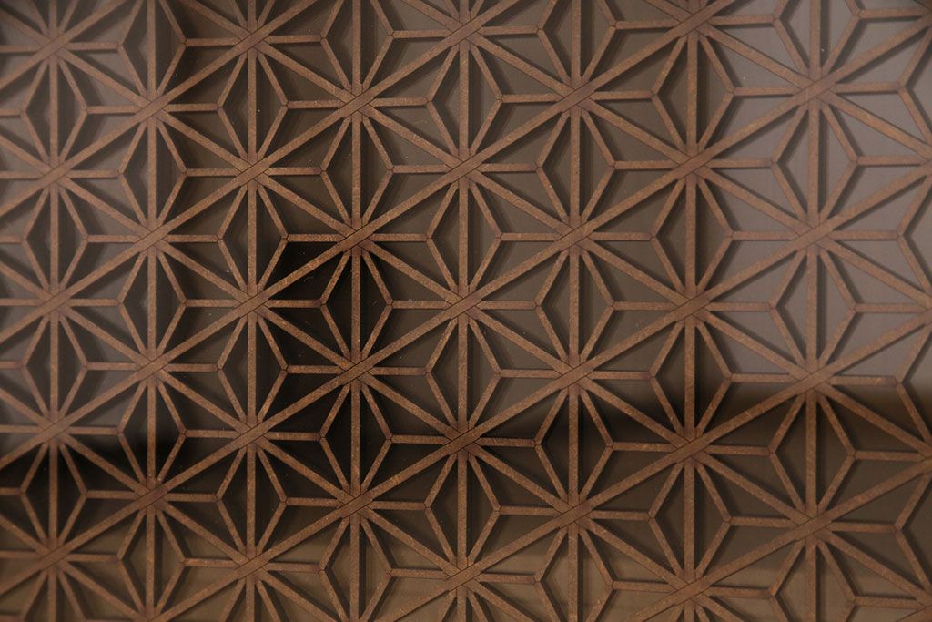 ◆ガラス戸にレーザー組子細工のはめ込み加工(組子デザイン:asanoha)