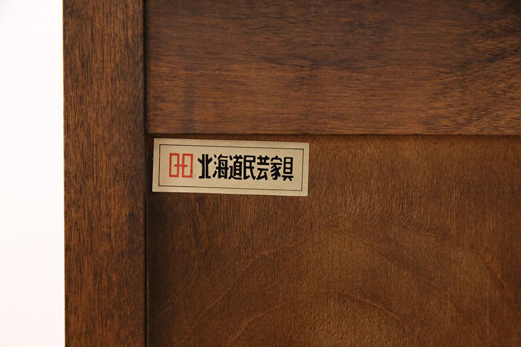 北海道民芸家具のローボードをリペア&カスタム!建具を板戸からレーザー組子入りガラス戸に変更。背面穴開け加工。現状の色味に合わせて着色し仕上げ。(テレビ台、収納棚、戸棚)