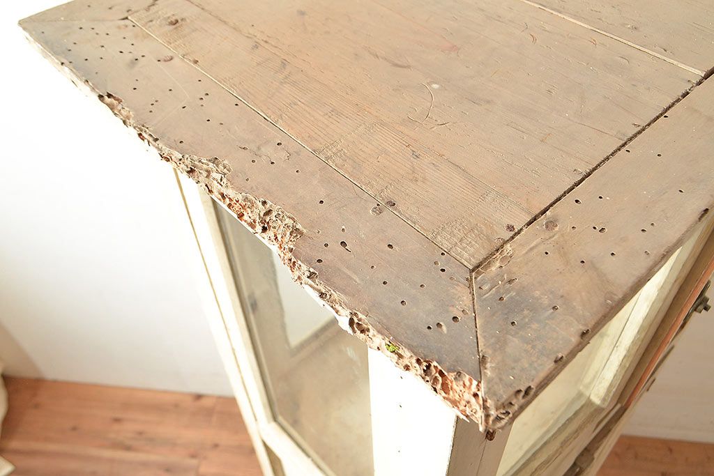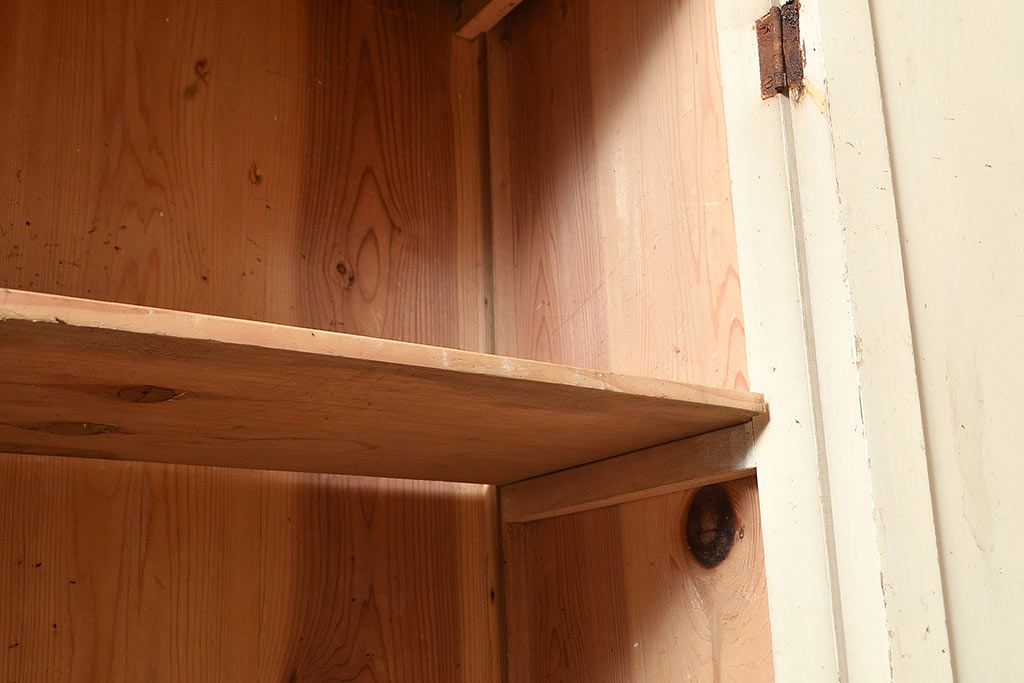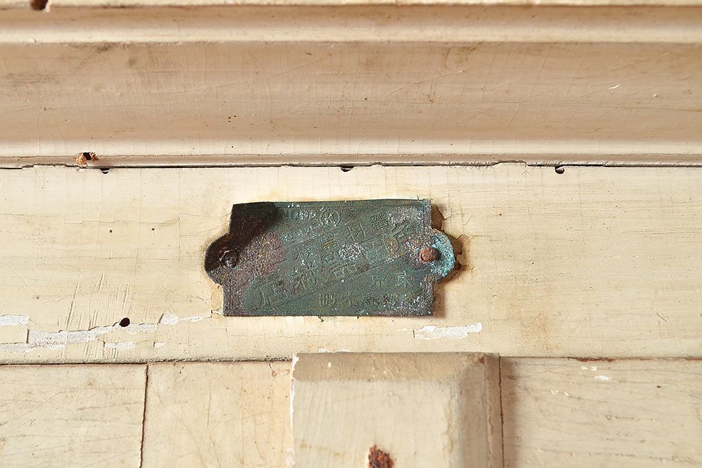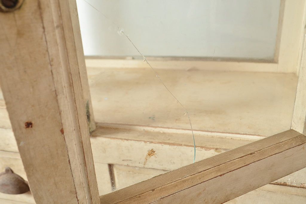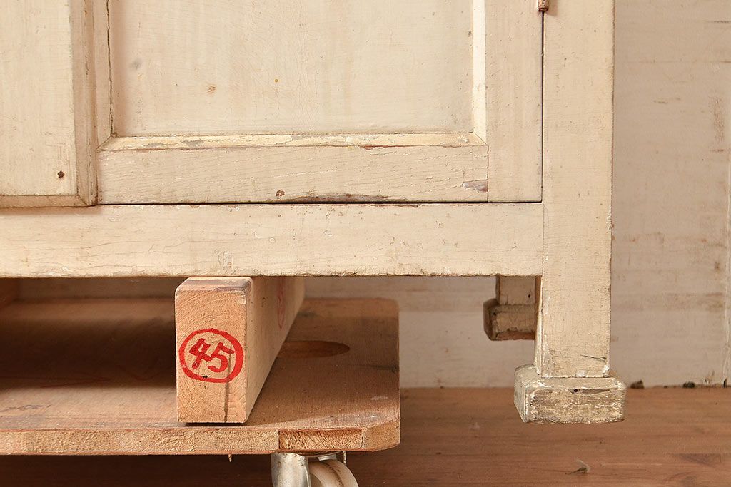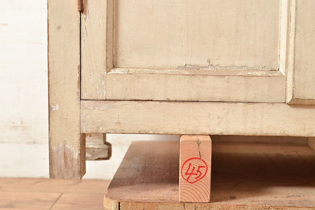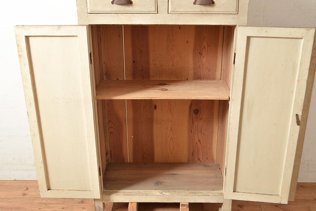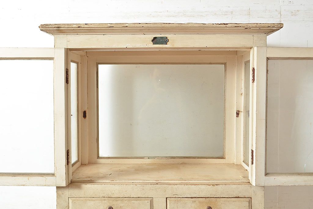 ラフジュ工房> キャビネット・戸棚> 医療用キャビネット・ケビント > 和製アンティーク 昭和初期 珍しいデザインのペイントキャビネット(デンタルケース、デンタルキャビネット、ケビント、ガラスケース、戸棚)(R-048553)