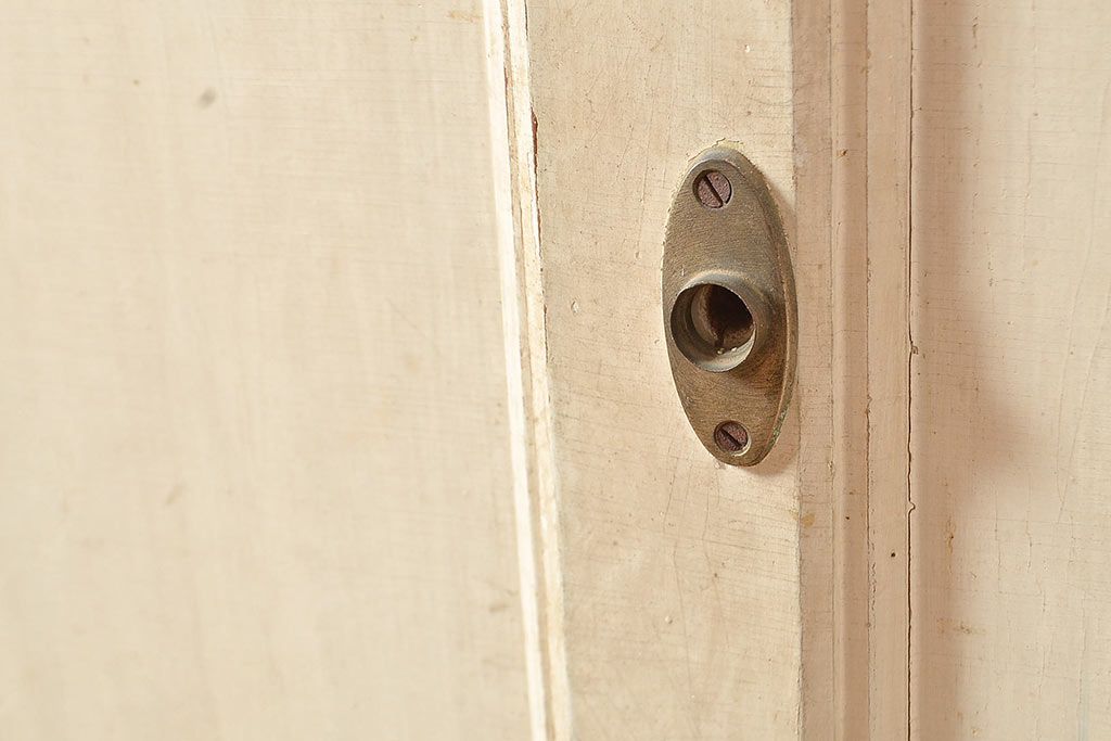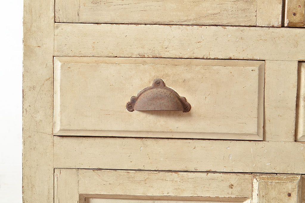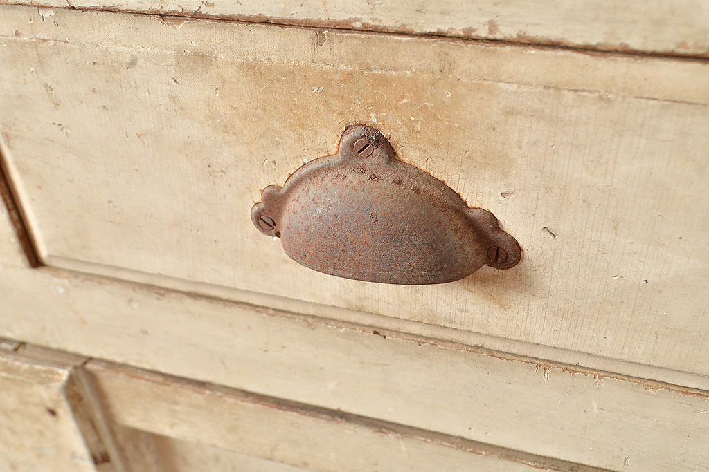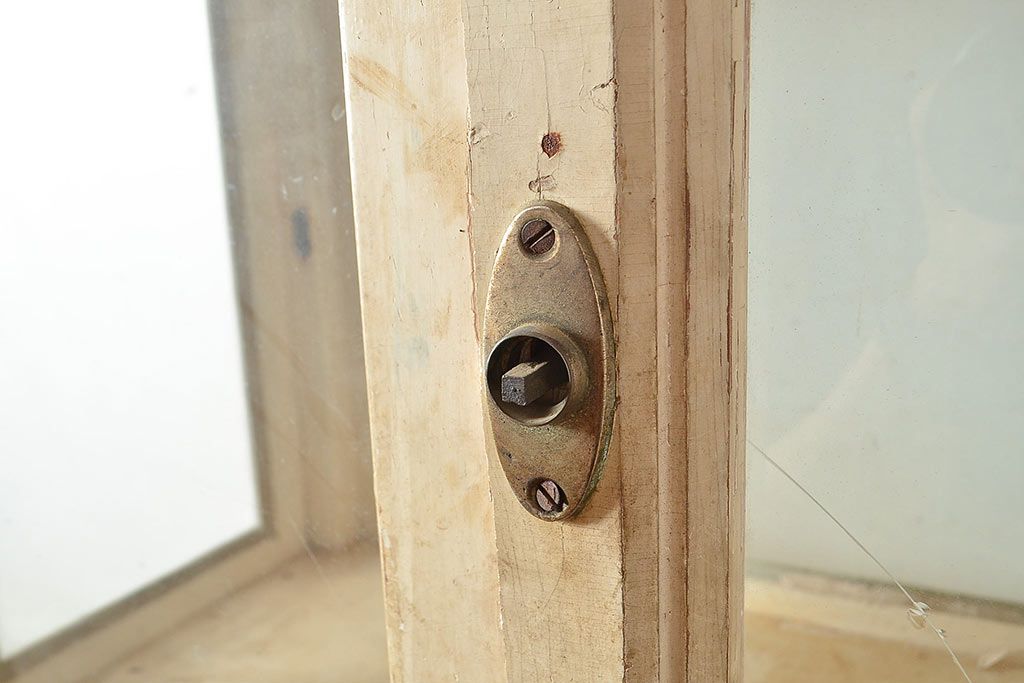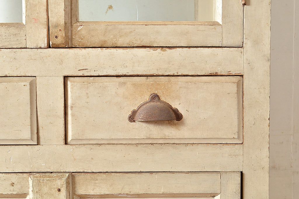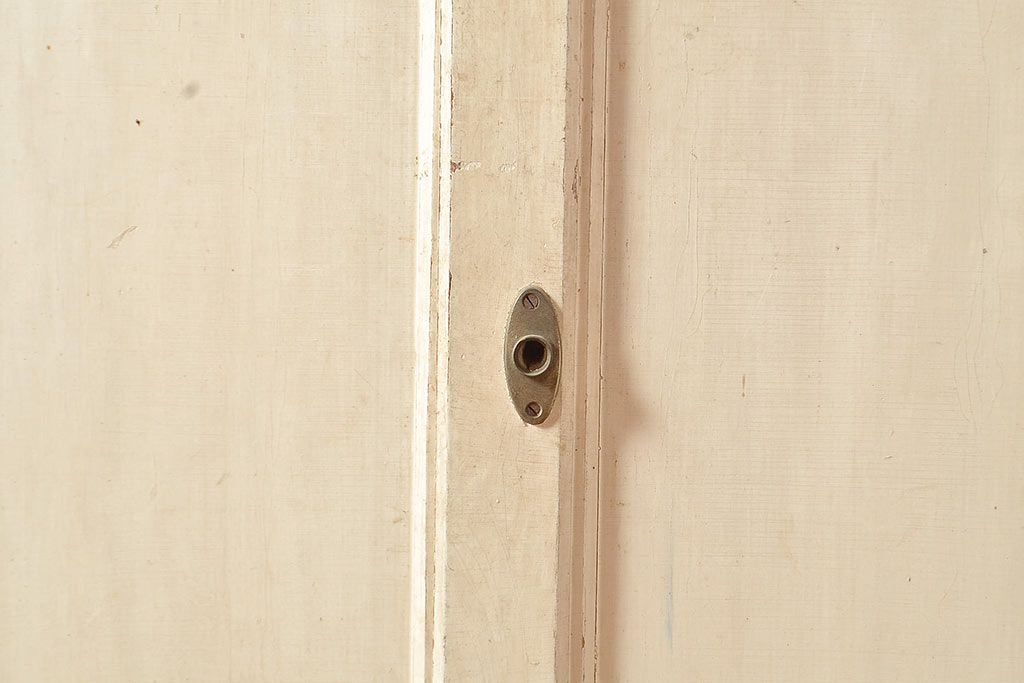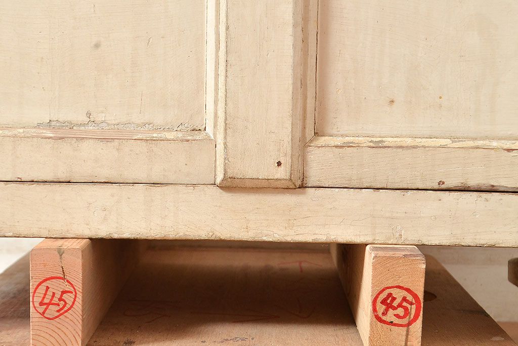 ラフジュ工房> キャビネット・戸棚> 医療用キャビネット・ケビント > 和製アンティーク 昭和初期 珍しいデザインのペイントキャビネット(デンタルケース、デンタルキャビネット、ケビント、ガラスケース、戸棚)(R-048553)