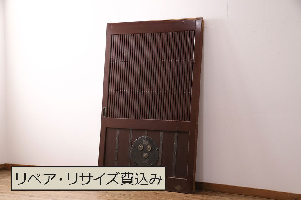 アンティーク建具 美品 ヒノキ材 漆の艶が美しい富山県産の蔵戸(玄関戸、引き戸、建具)(R-049627)