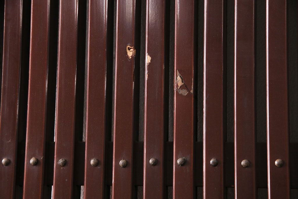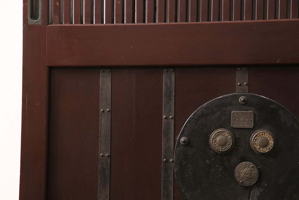 ラフジュ工房> ドア・建具> 玄関ドア・玄関戸 > アンティーク建具 美品 ヒノキ材 漆の艶が美しい富山県産の蔵戸(玄関戸、引き戸、建具)(R-049627)