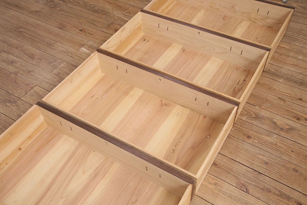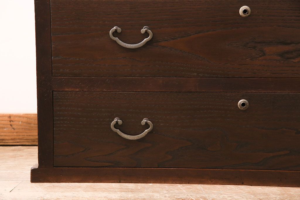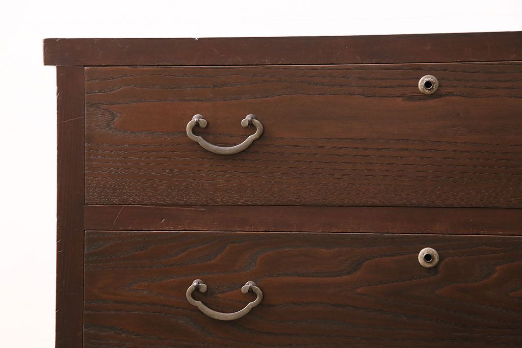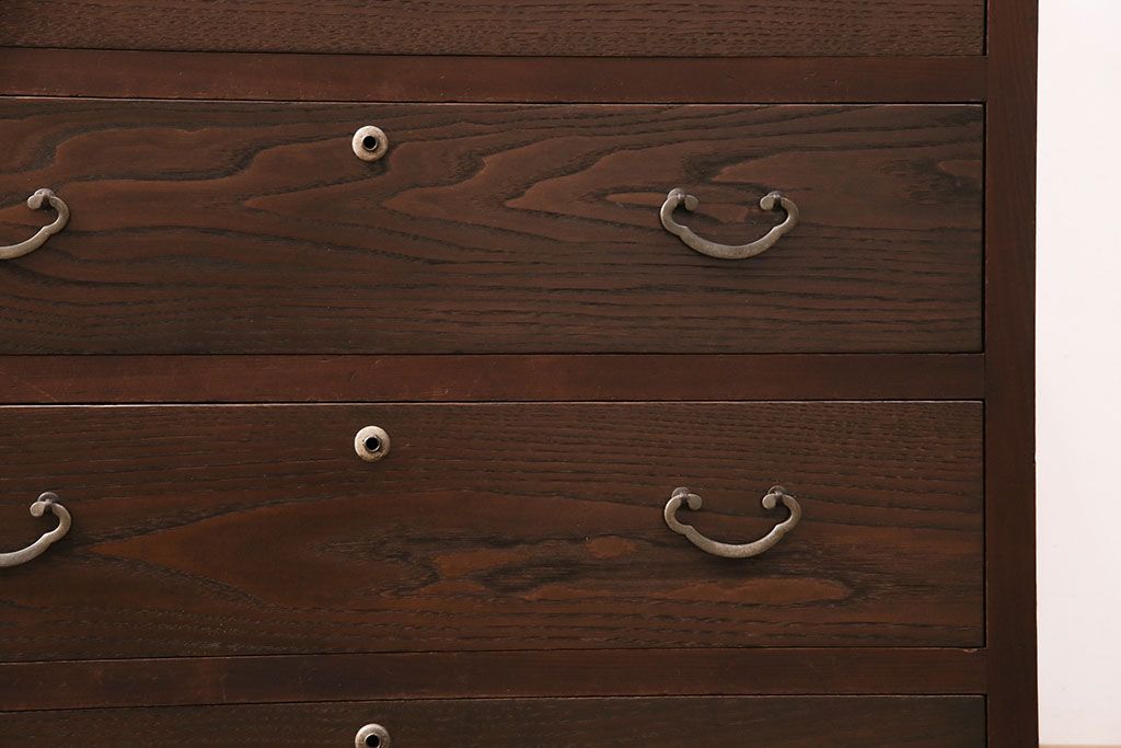 和箪笥> 衣装箪笥 > 昭和初期の衣装箪笥をリペア&カスタム!前板を栗材に変更。現状の一番濃い部分に合わせて着色し仕上げ。(収納箪笥、引き出し、和タンス)