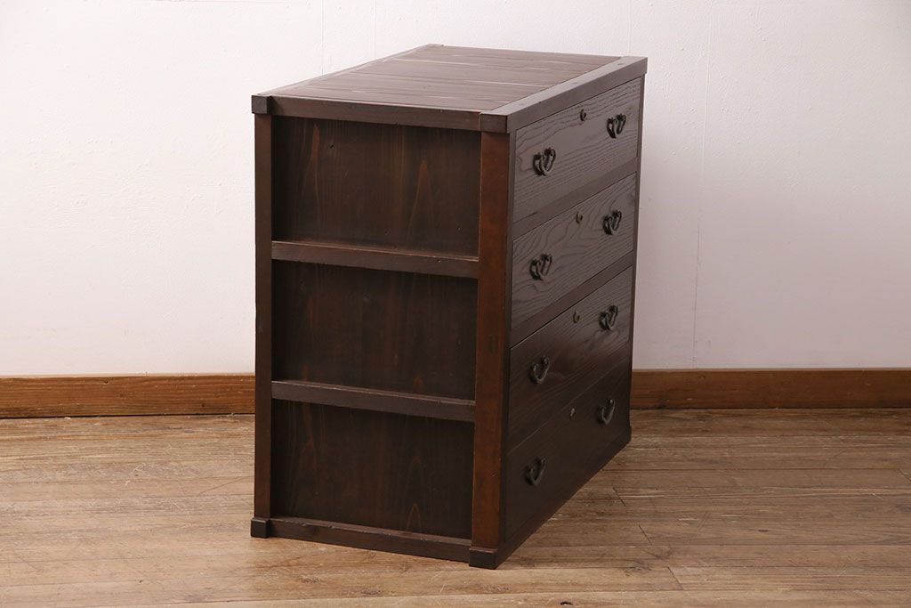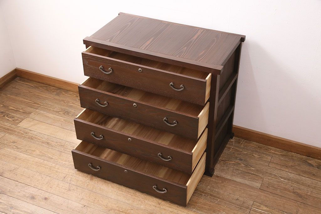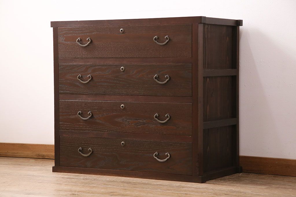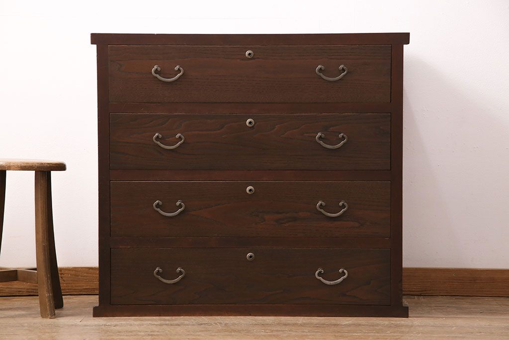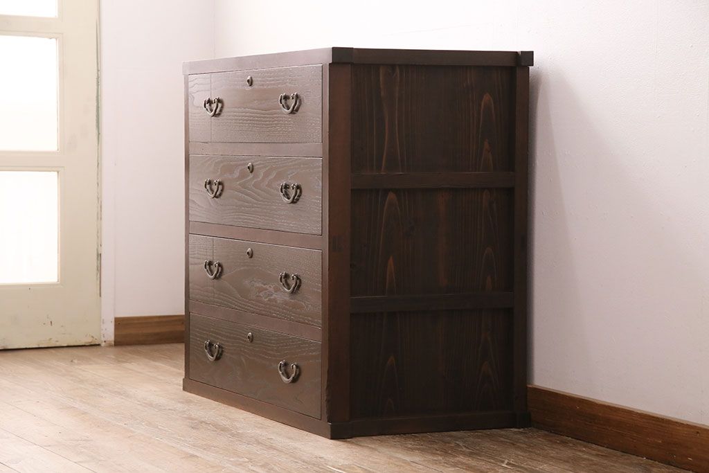 和箪笥> 衣装箪笥 > 昭和初期の衣装箪笥をリペア&カスタム!前板を栗材に変更。現状の一番濃い部分に合わせて着色し仕上げ。(収納箪笥、引き出し、和タンス)