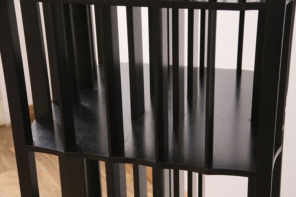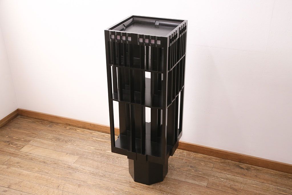 オープンラック・シェルフ> マガジンラック > 中古 美品 稀少 国内未発売品? Cassina(カッシーナ) CHARLES RENNIE MACKINTOSH(チャールズ・レニー・マッキントッシュ) Hous'hill(ハウスヒル、ハウズヒル)、Nitshill(ニッツヒル)、 Glasgow(グラスゴー) おしゃれなインテリアとしておすすめのリボルビングシェルフ(回転式本棚、本棚、マガジンラック)(R-050591)
