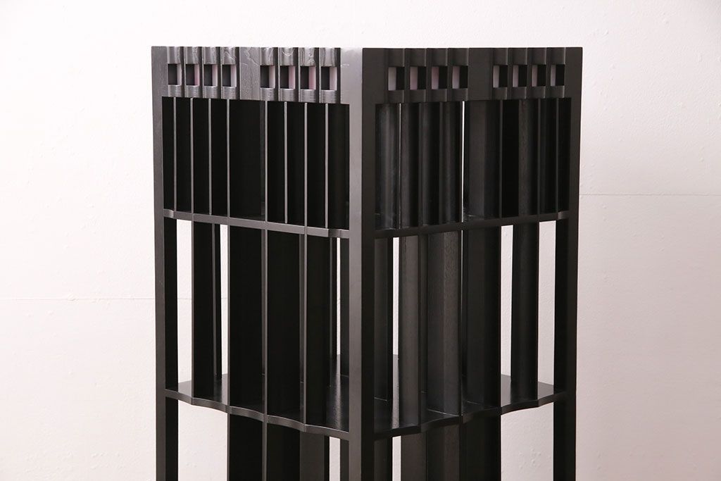 オープンラック・シェルフ> 本棚 > 中古 美品 稀少 国内未発売品? Cassina(カッシーナ) CHARLES RENNIE MACKINTOSH(チャールズ・レニー・マッキントッシュ) Hous'hill(ハウスヒル、ハウズヒル)、Nitshill(ニッツヒル)、 Glasgow(グラスゴー) おしゃれなインテリアとしておすすめのリボルビングシェルフ(回転式本棚、本棚、マガジンラック)(R-050591)