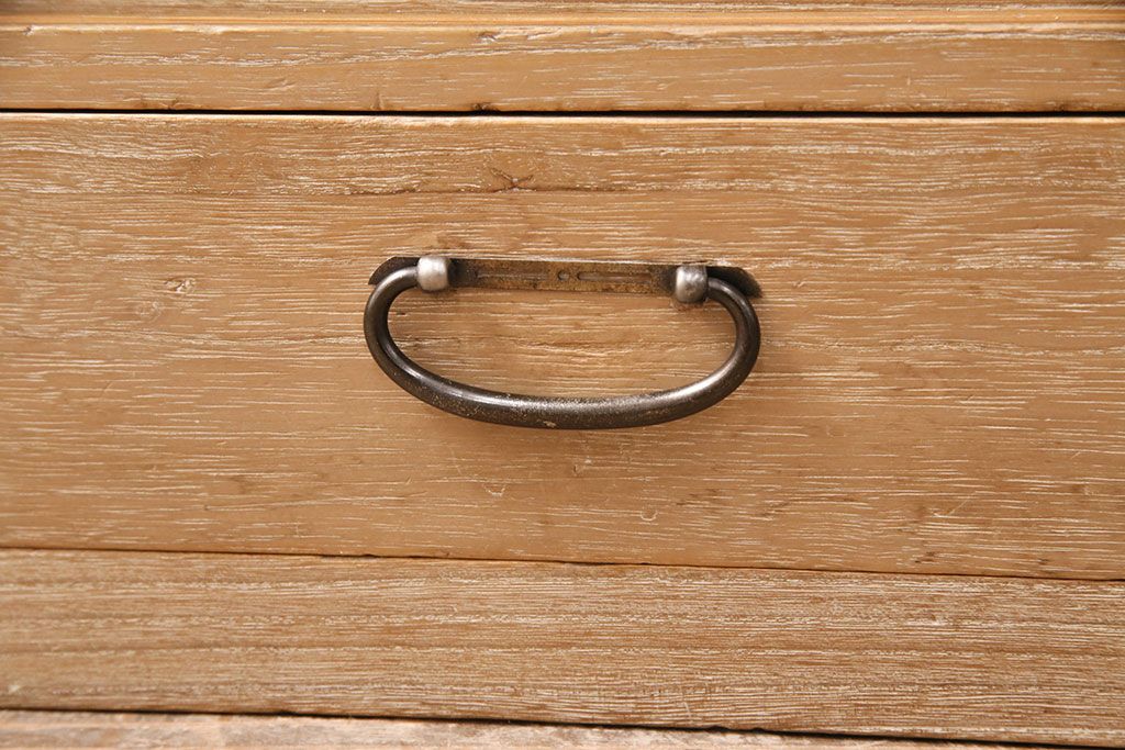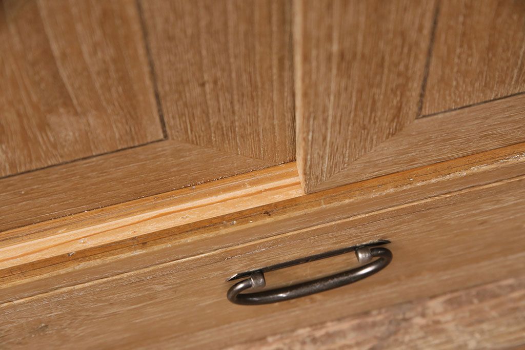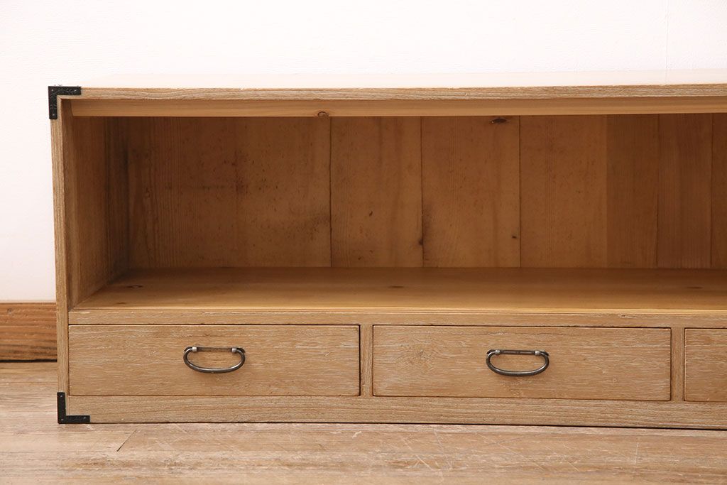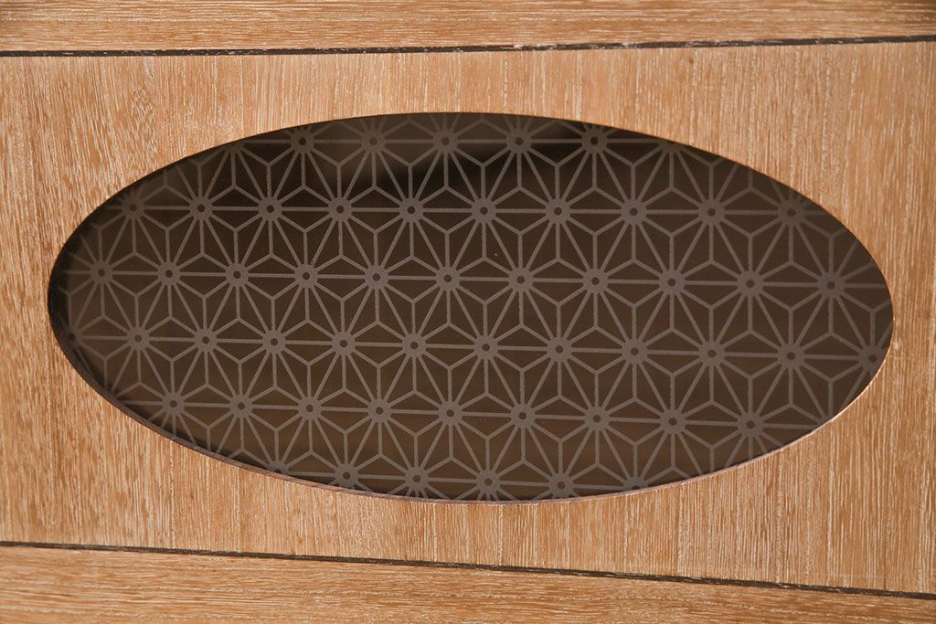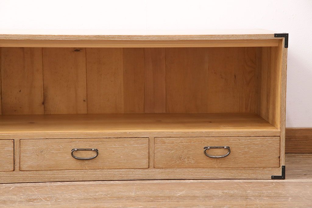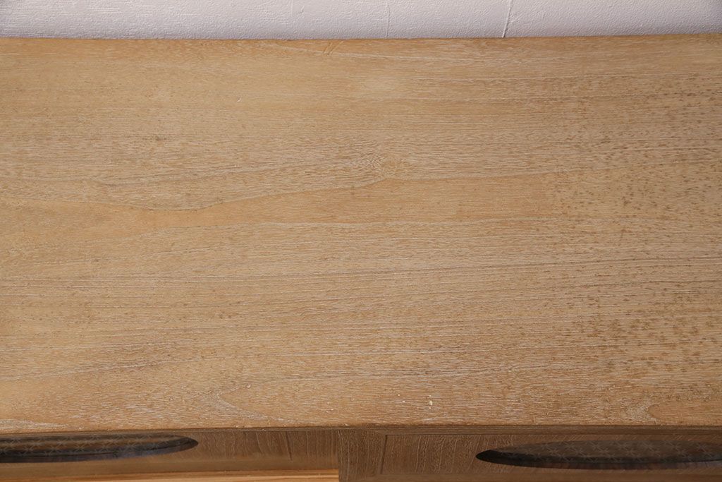キャビネット・戸棚> テレビ台・ローボード > 収納箪笥のローボードをリペア&カスタム!引き戸に楕円形の窓を製作し、当店オリジナルの麻の葉模様ガラスを組み入れ。蜜蝋ワックスにて仕上げ。(丸窓、テレビ台、収納棚)