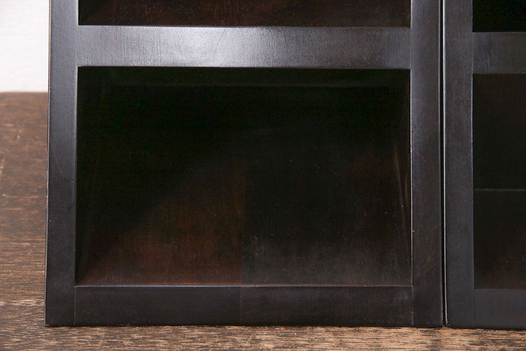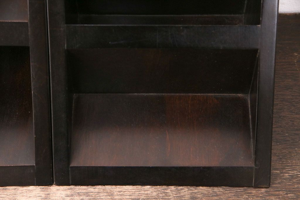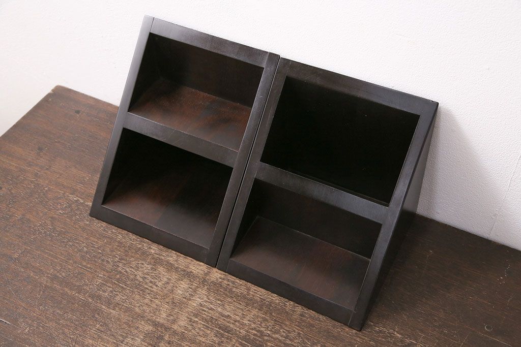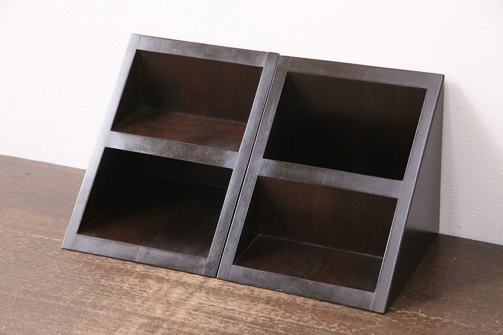 オープンラック・シェルフ> ディスプレイラック > 中古 北海道民芸家具 使い方いろいろ!置き方次第でペン立てにも棚にもなる小さな飾り棚2個セット(花台、ディスプレイ台、ペン立て、小物収納)(R-050707)