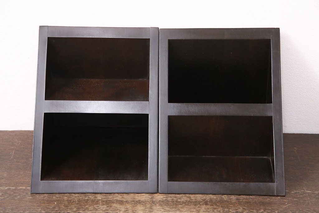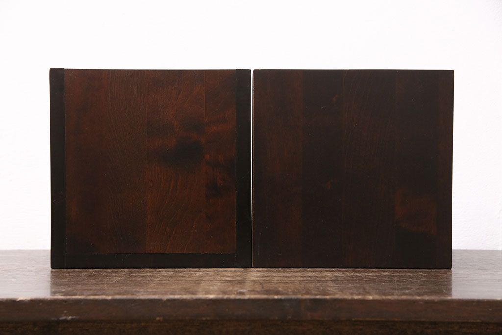 中古 北海道民芸家具 使い方いろいろ!置き方次第でペン立てにも棚にもなる小さな飾り棚2個セット(花台、ディスプレイ台、ペン立て、小物収納)(R-050707)